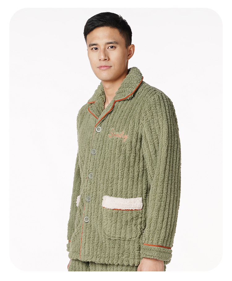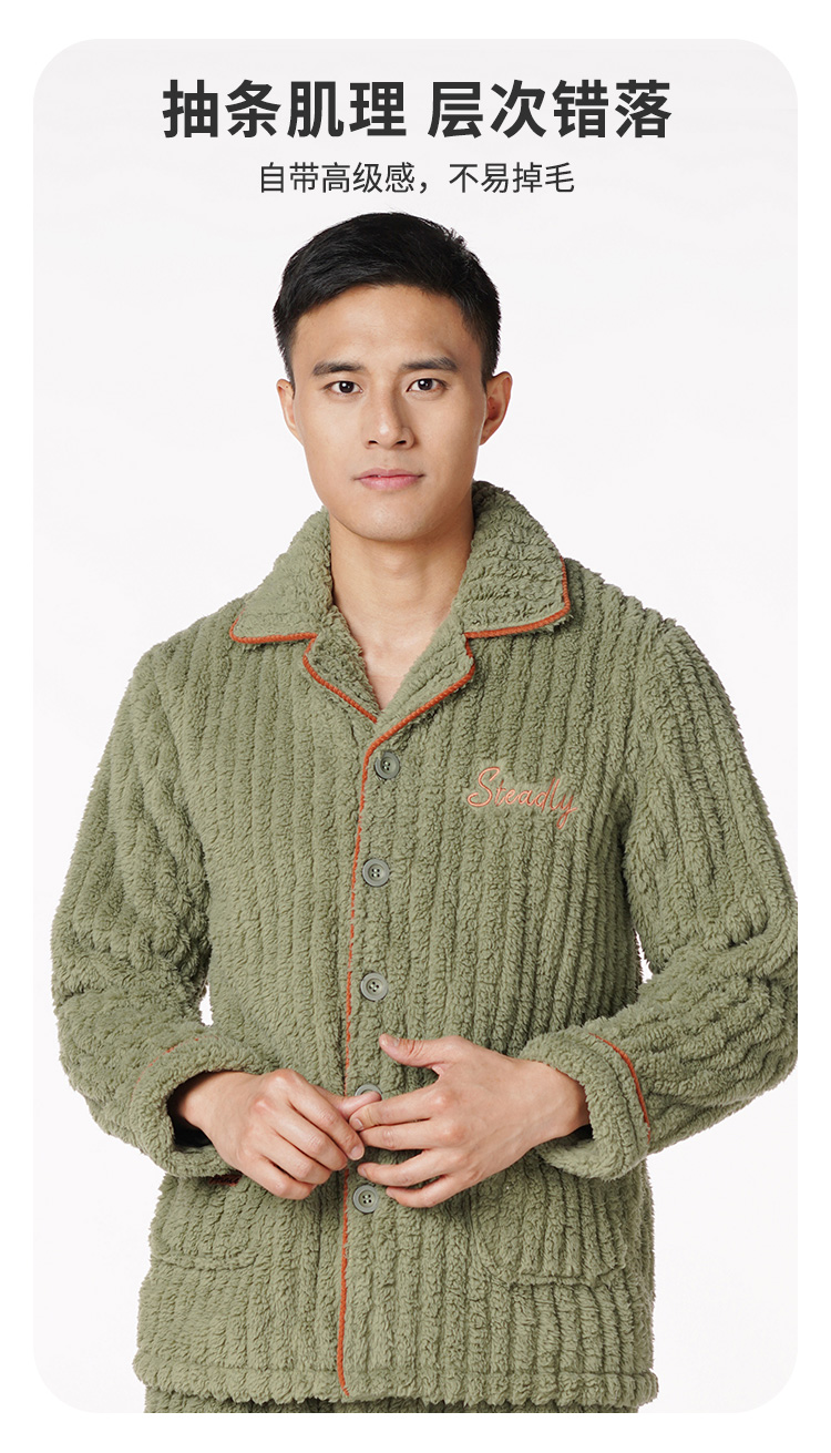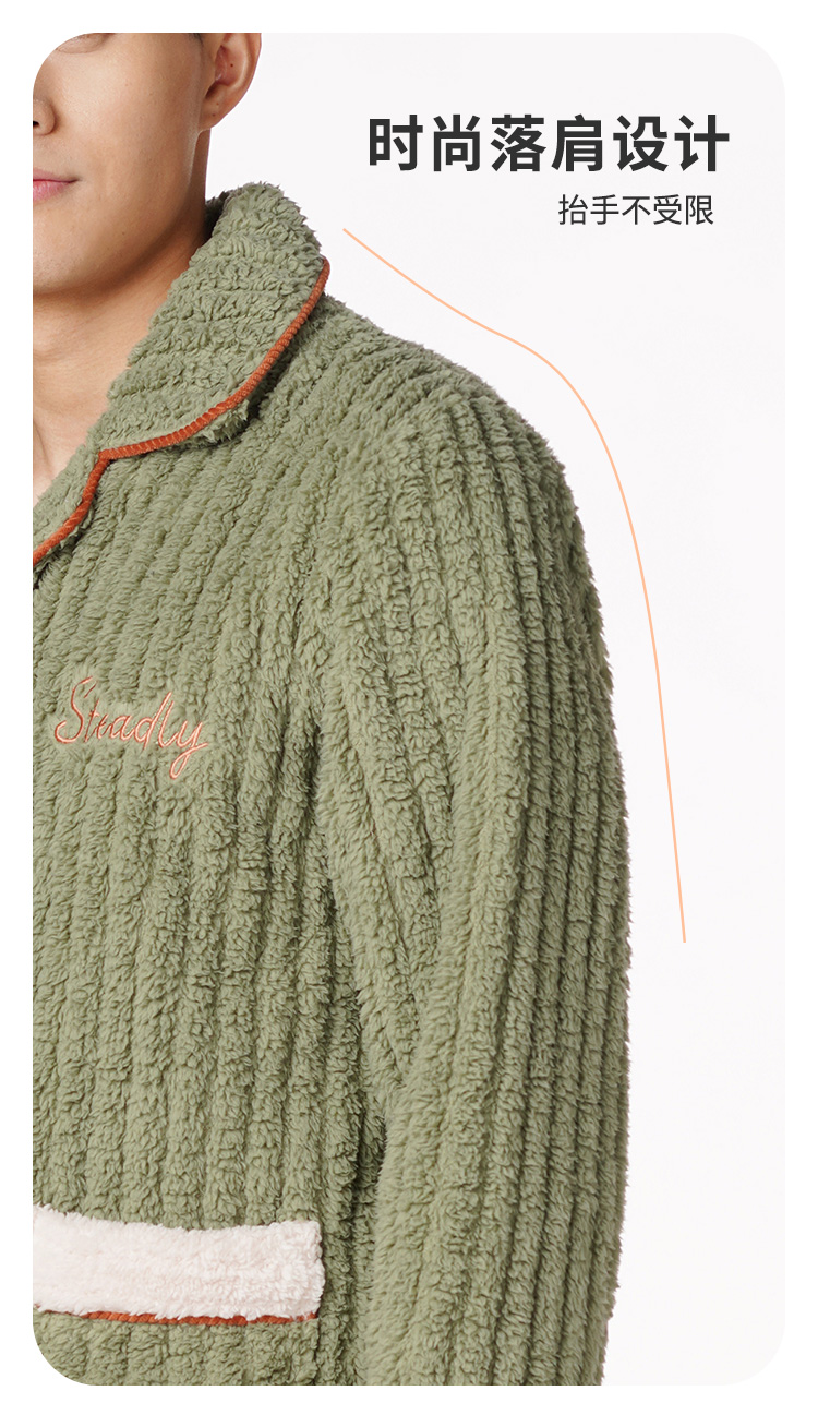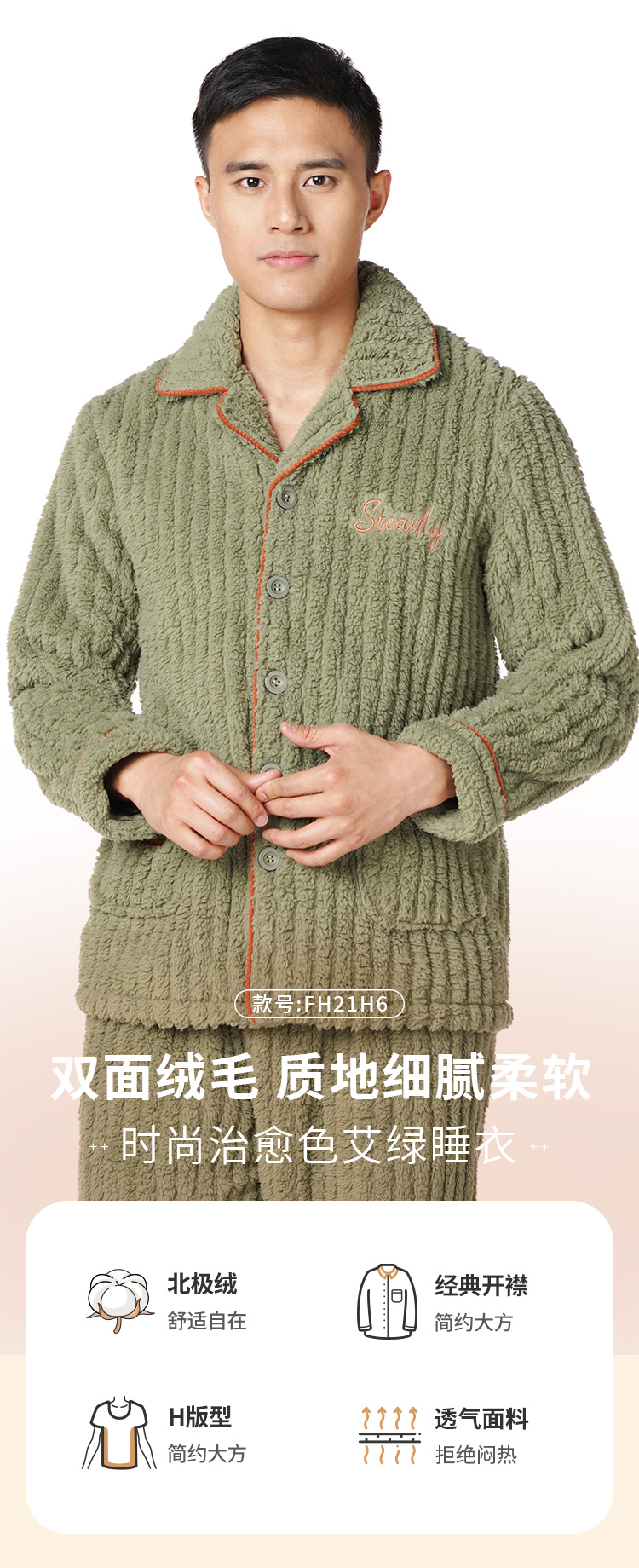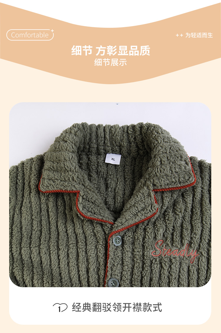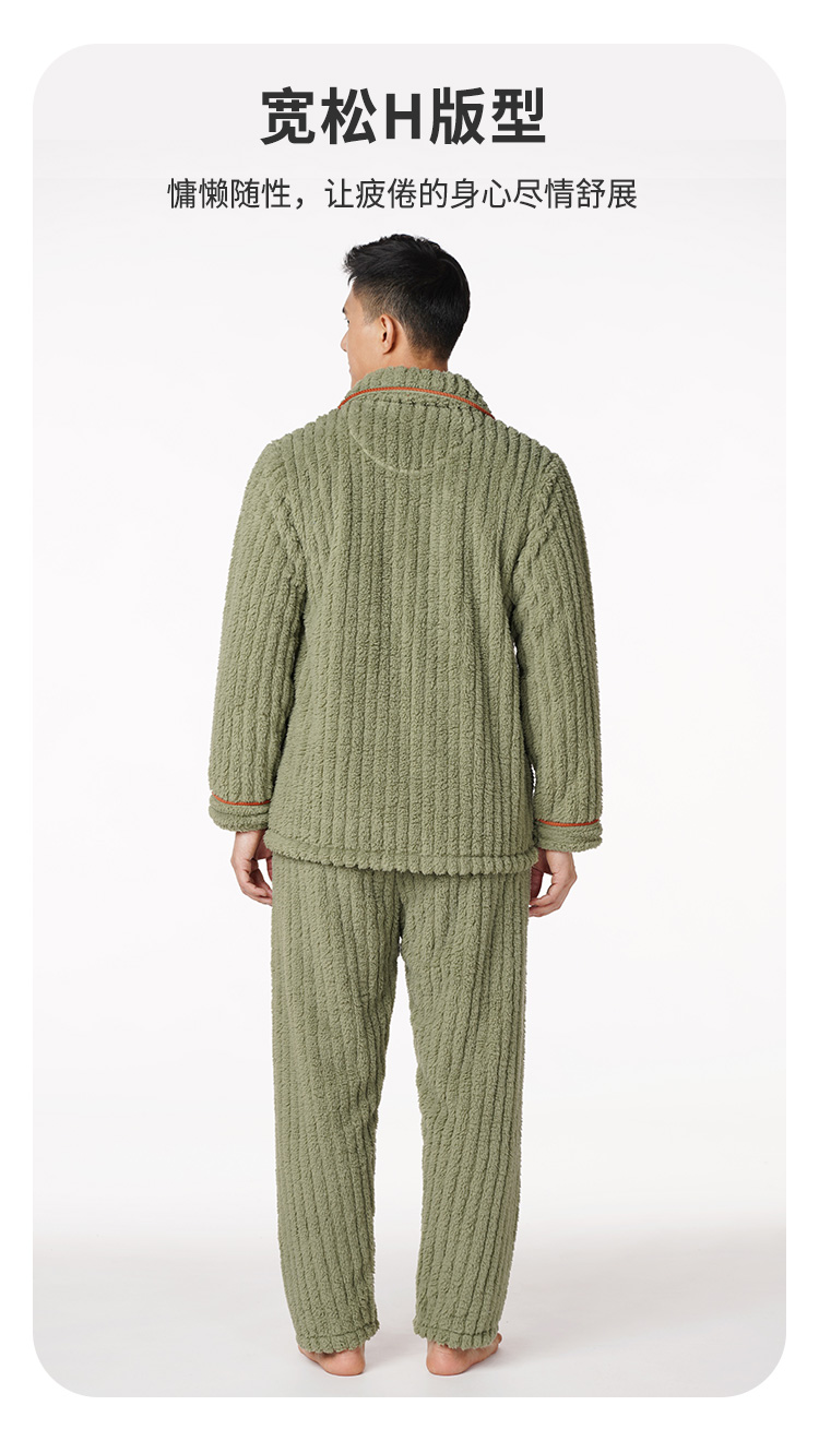 都市丽人都市锋尚生活家居男士长毛绒套装北极绒抽条厚家居服长袖睡衣FH21H6