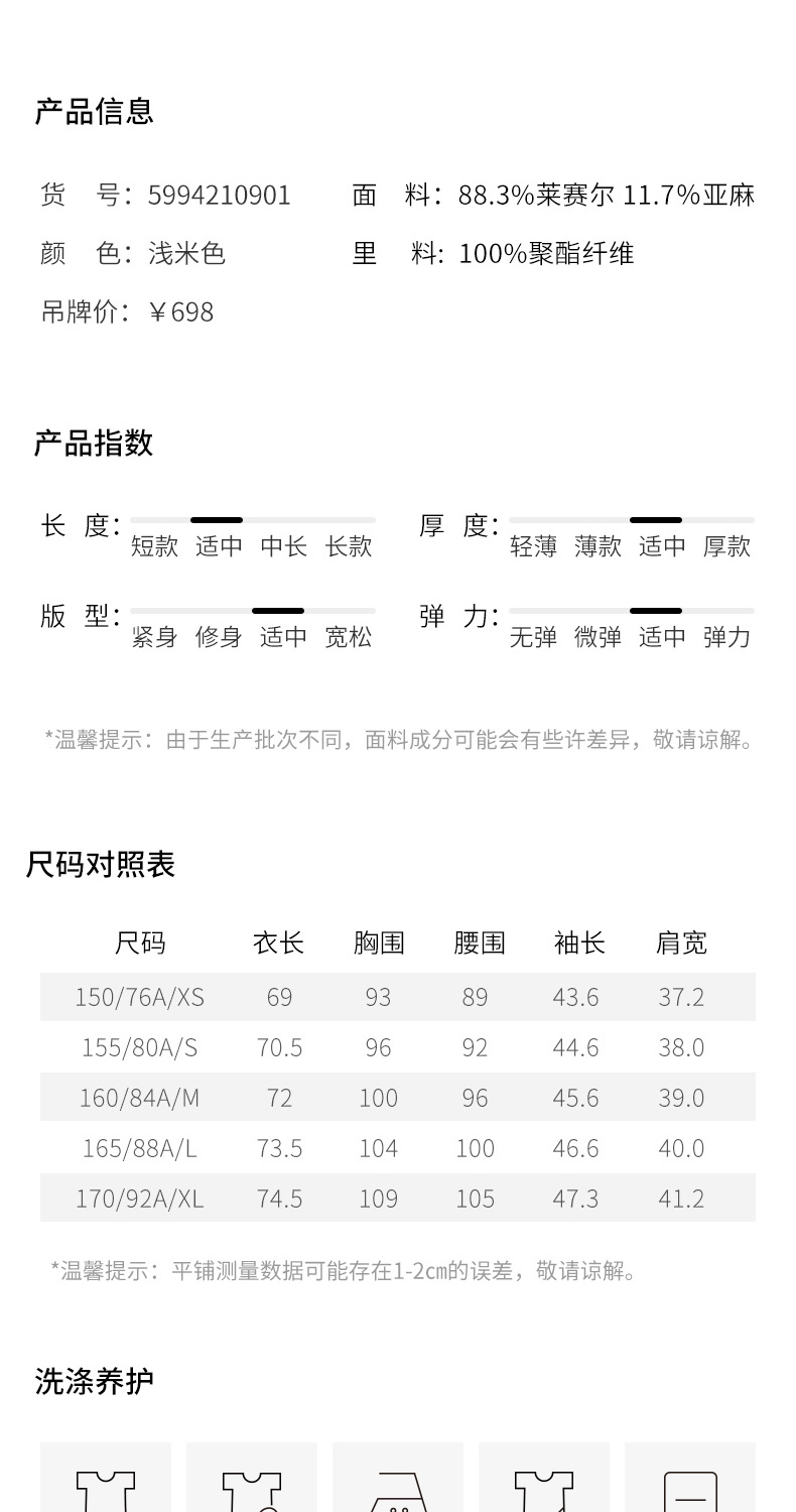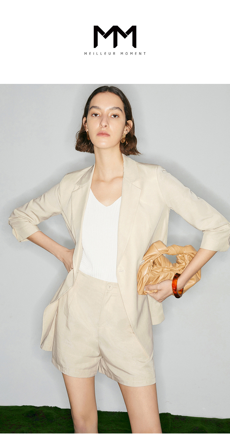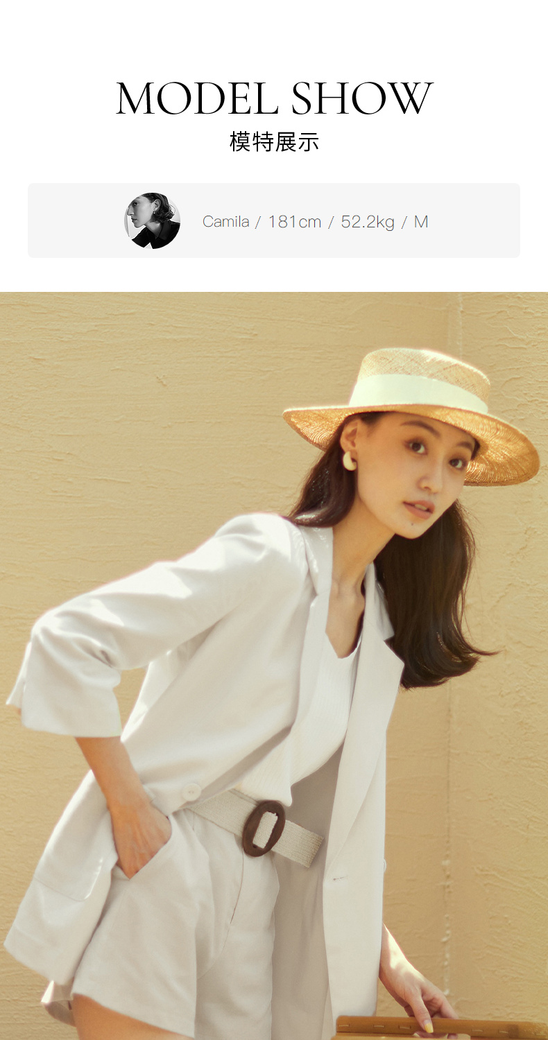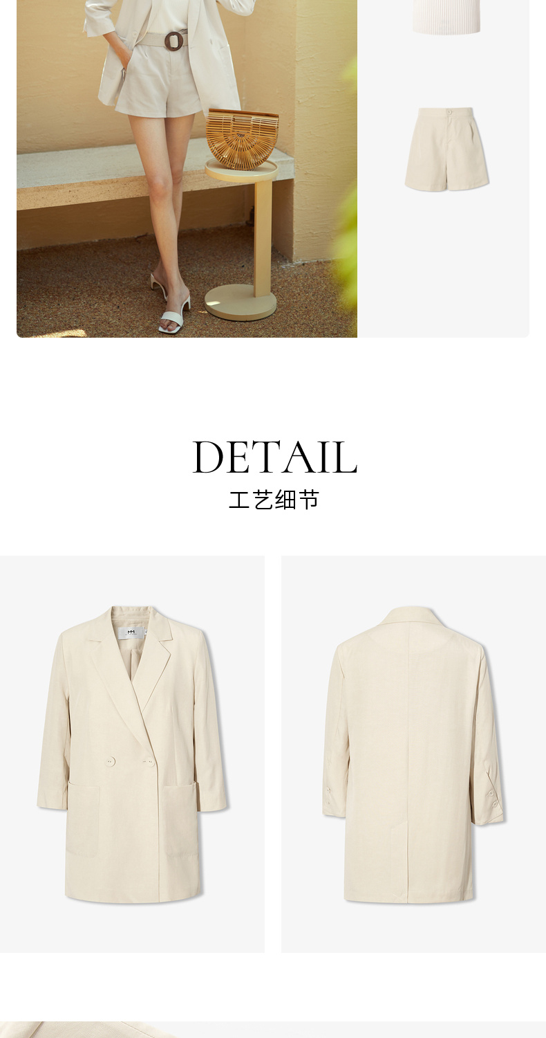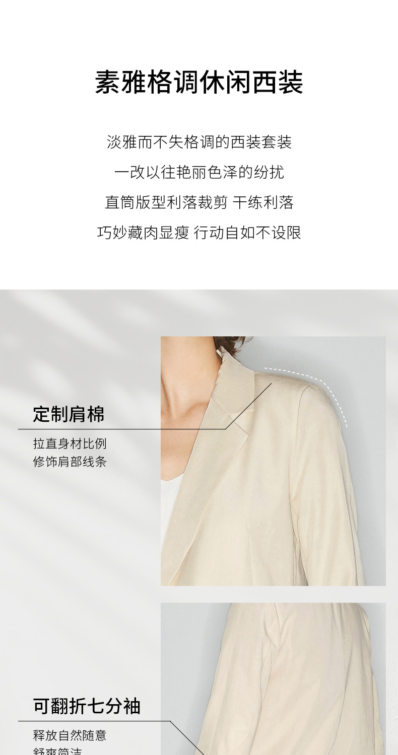 【经典款】【商场同款】麦檬夏轻薄透视天丝麻舒适七分袖西装5994210901