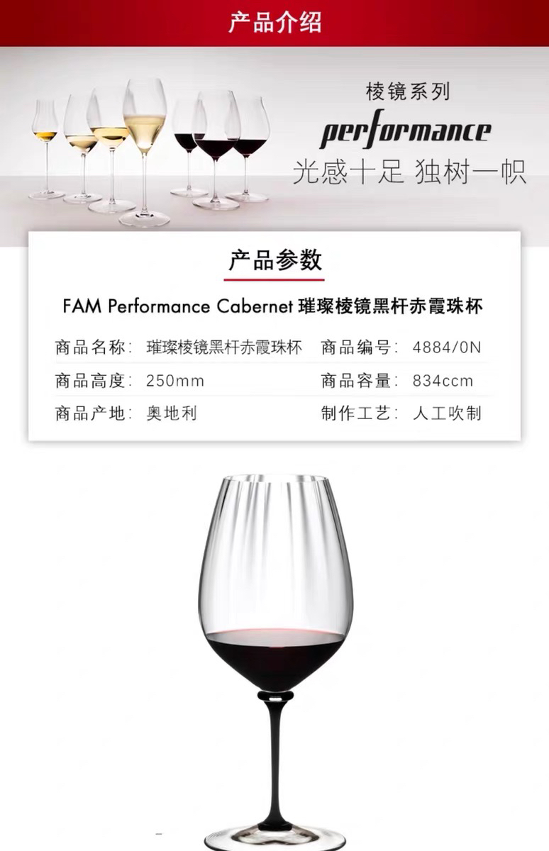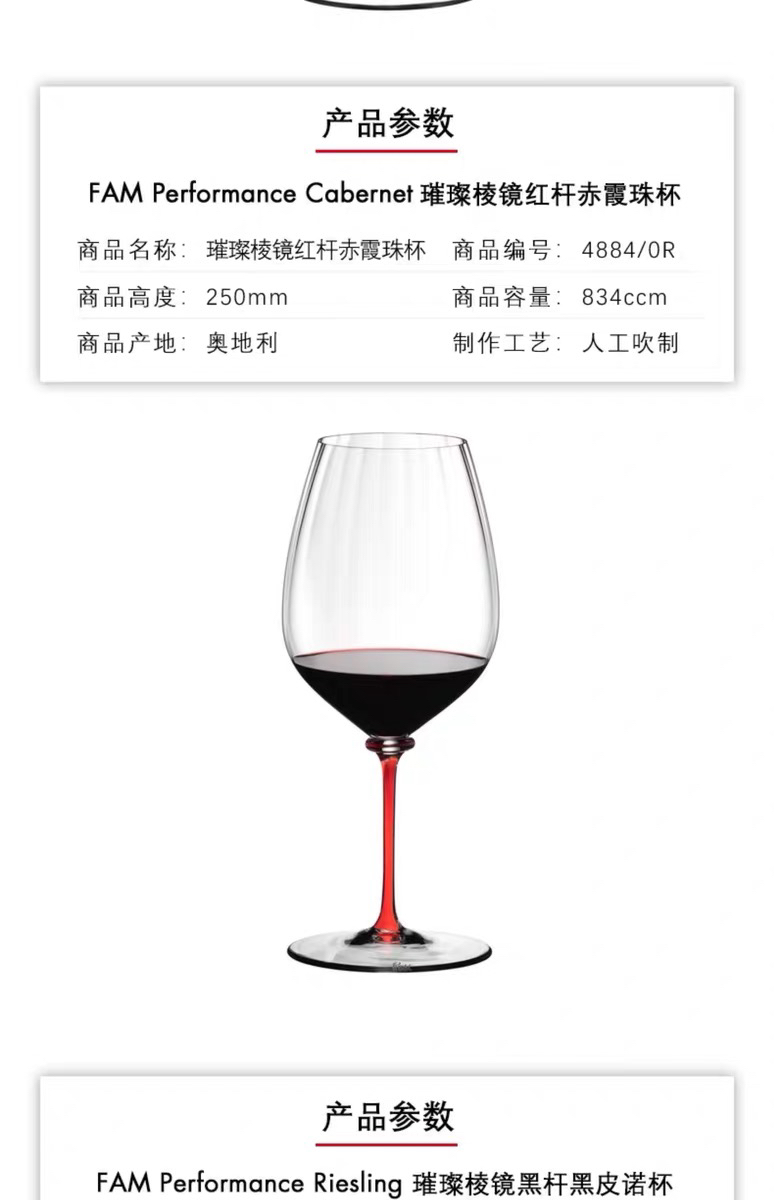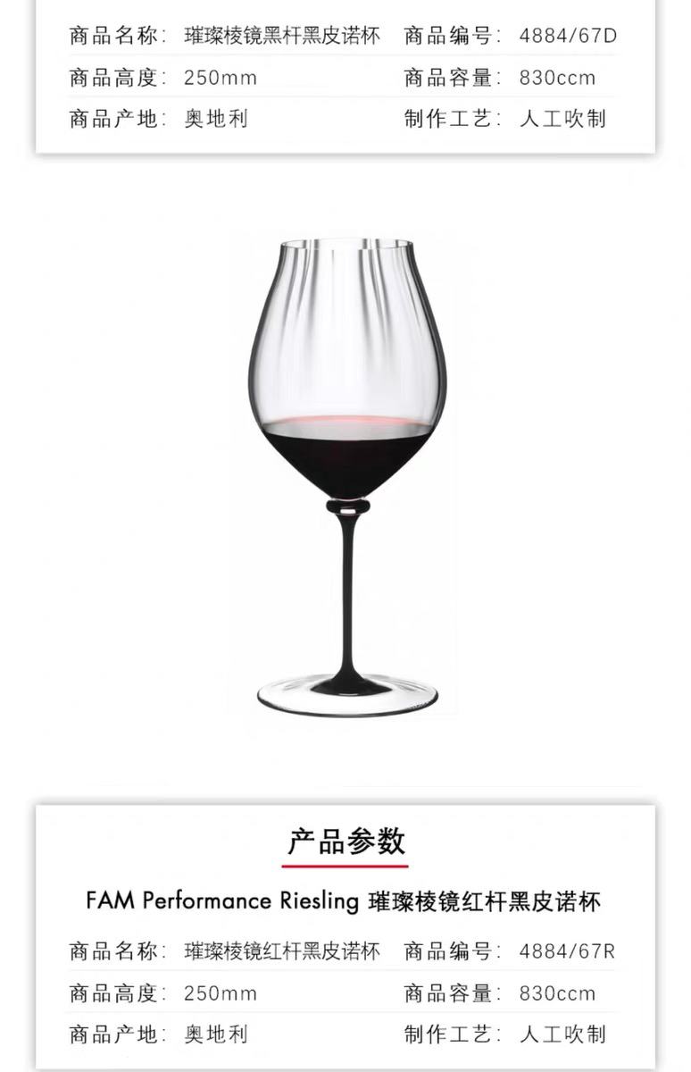 奥地利RIEDEL璀璨棱镜黑皮诺杯手工水晶红酒杯进口高颜值礼物