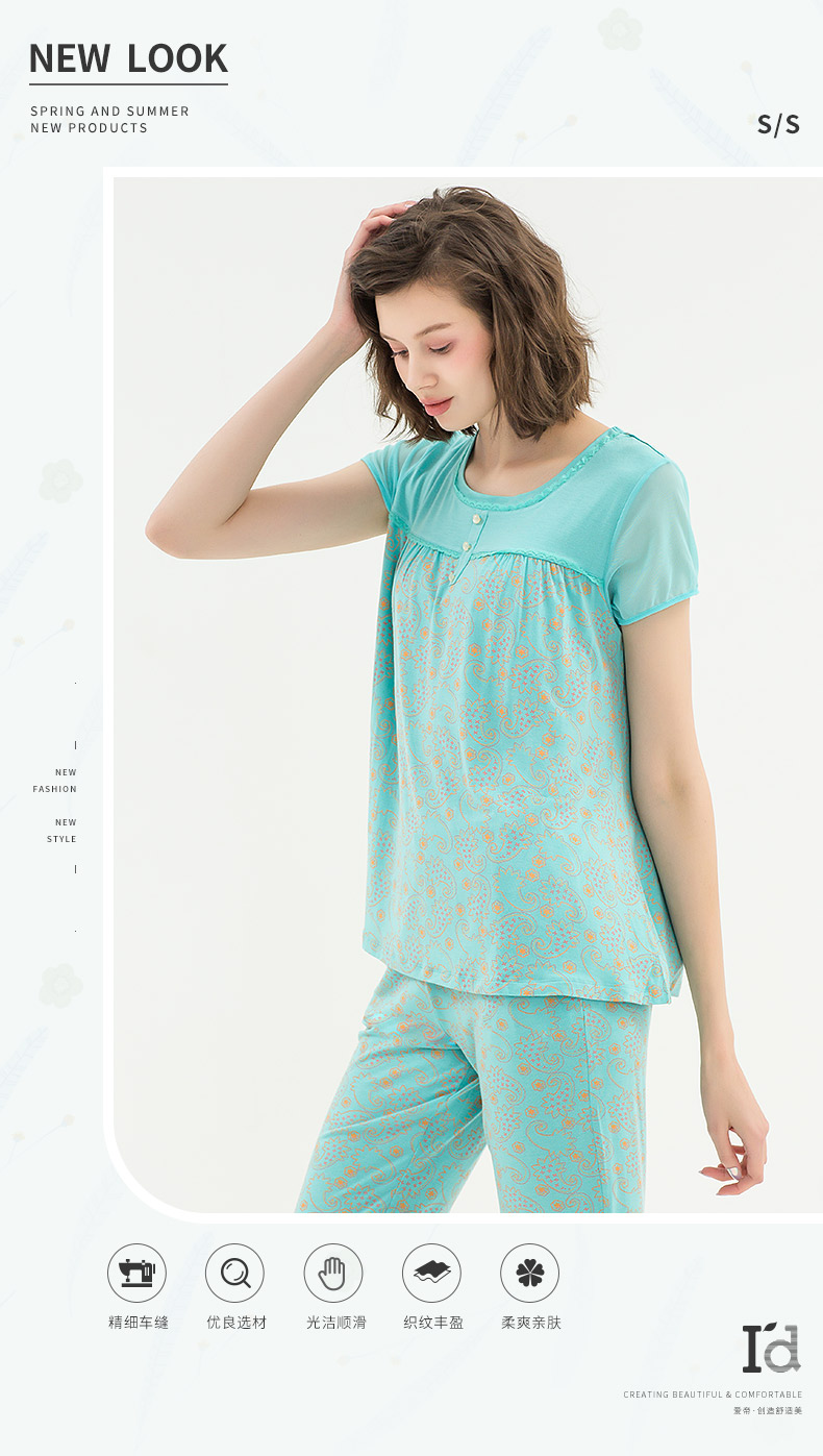 I'd爱帝女士莫代尔短袖七分裤家居套装