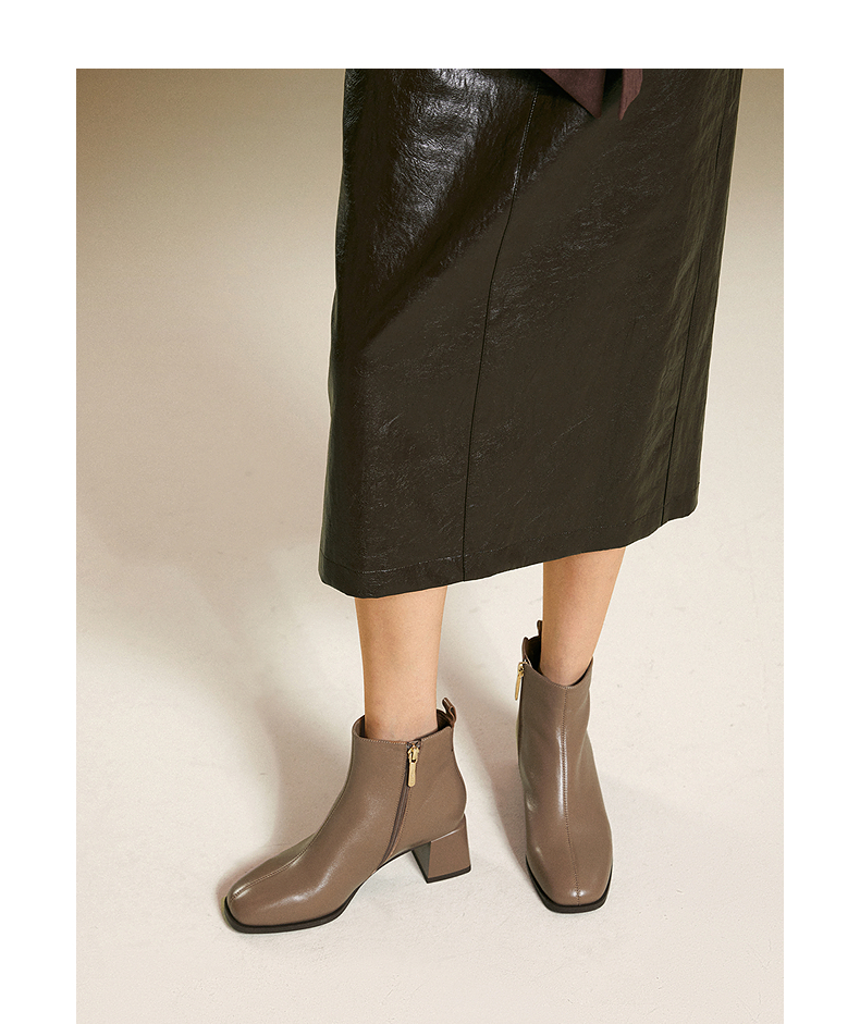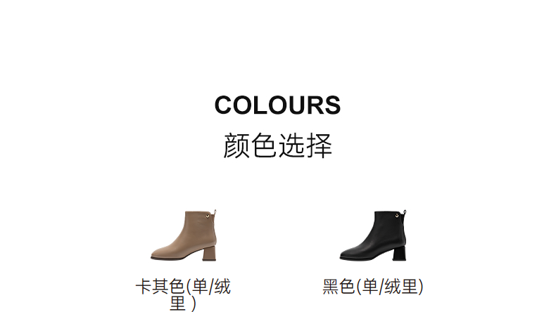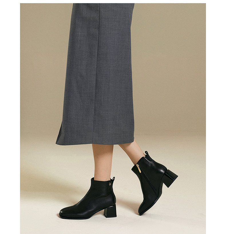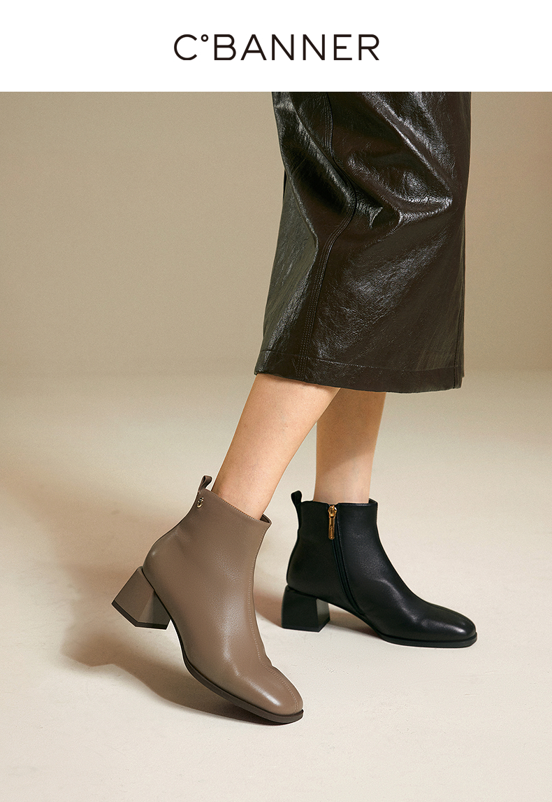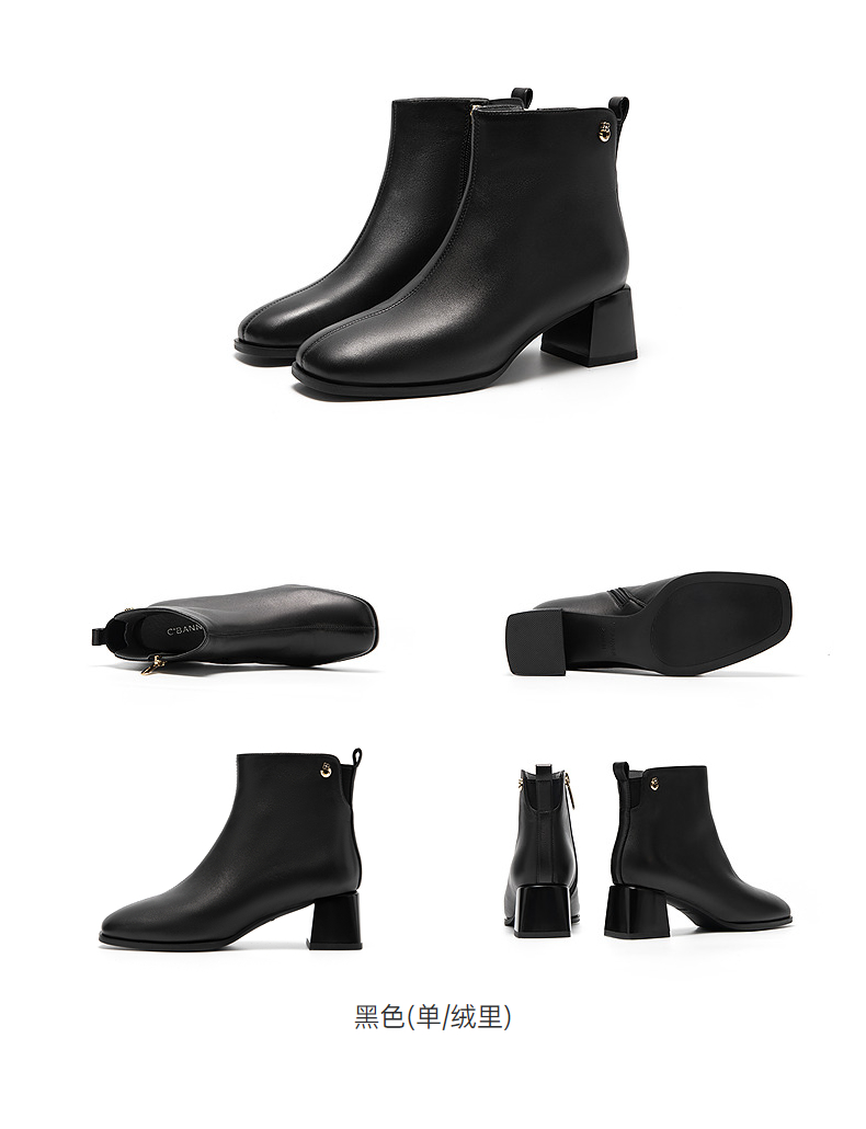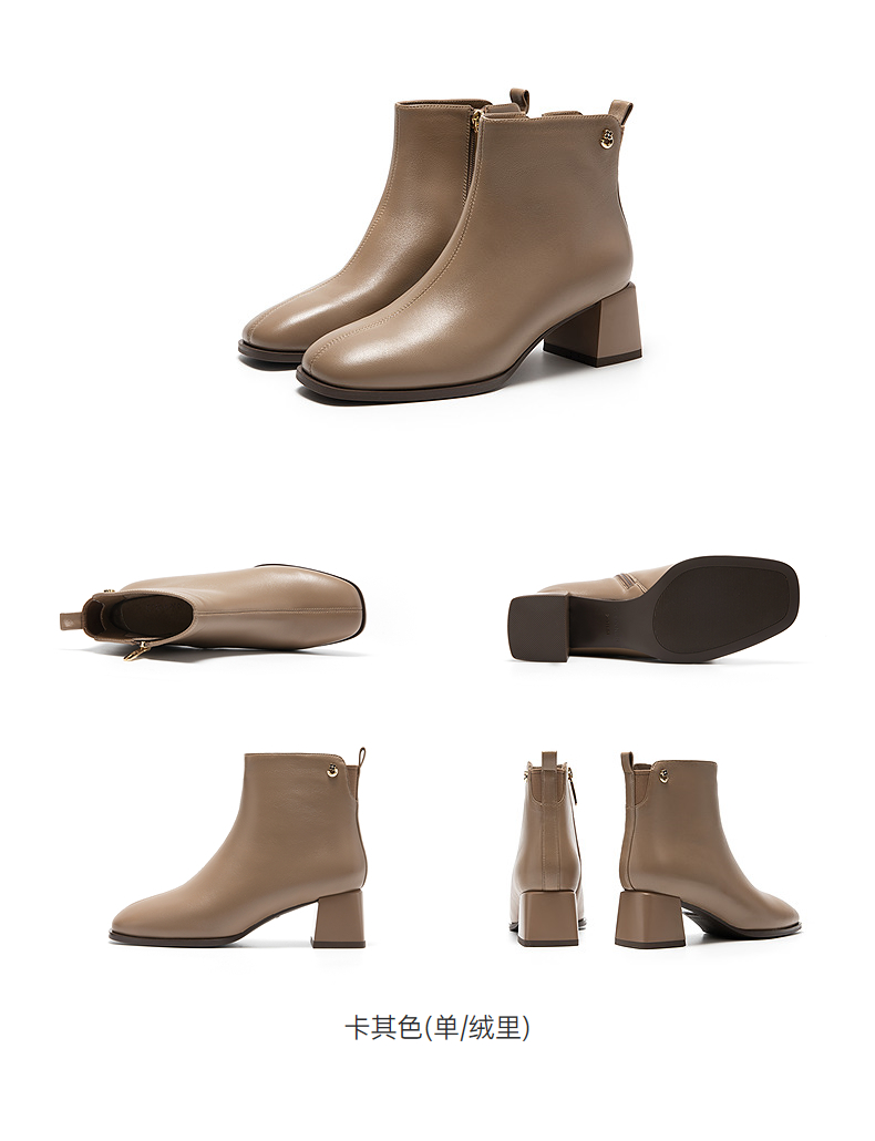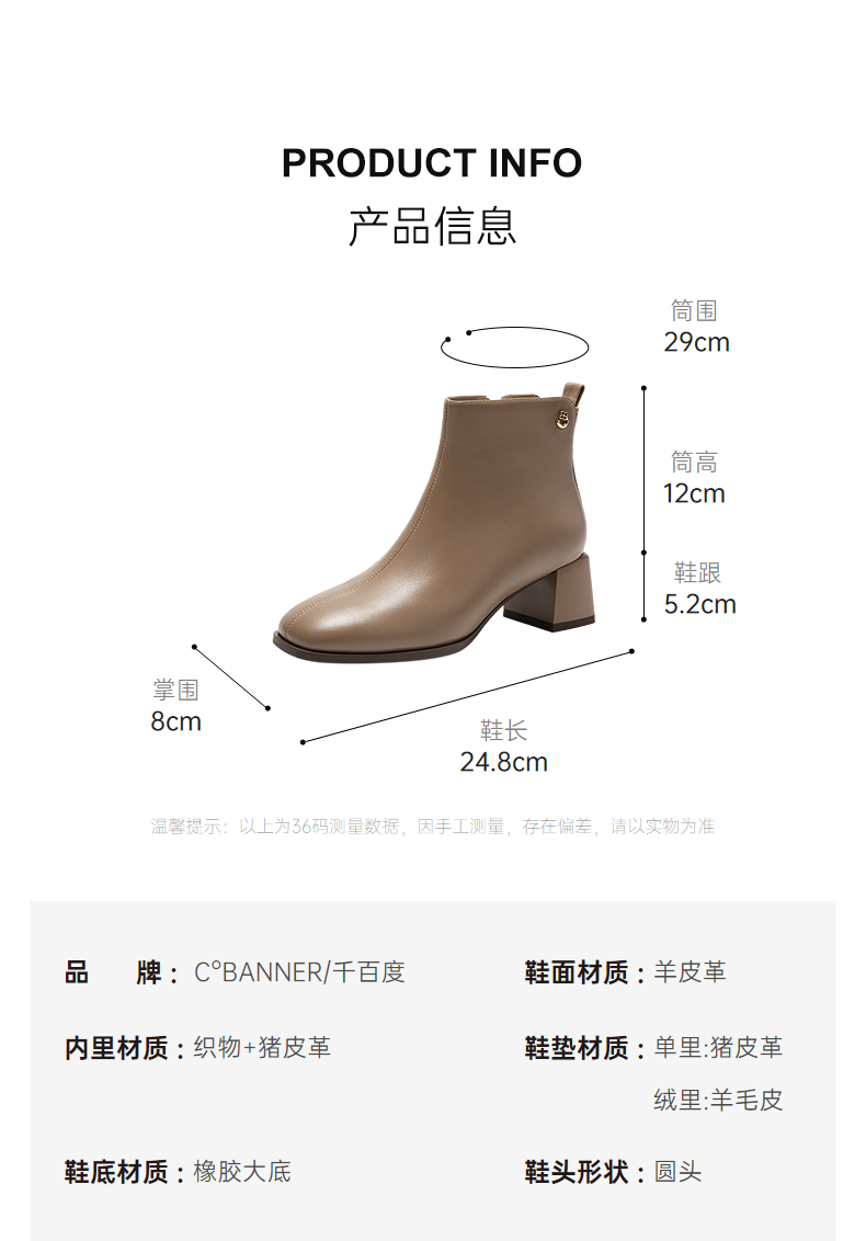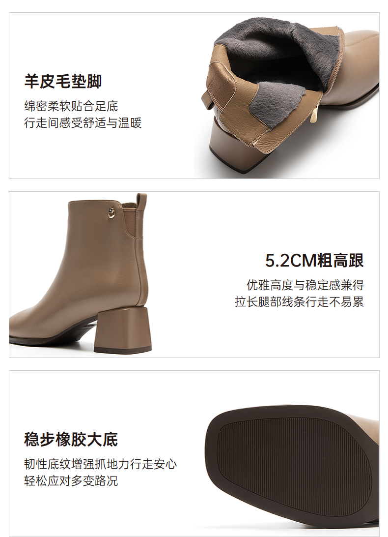 千百度粗高跟弹力袜靴女显瘦羊皮时装靴通勤短靴子A25598181