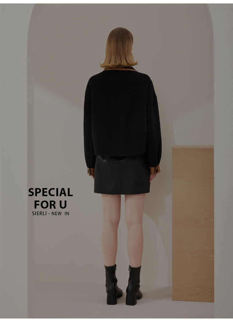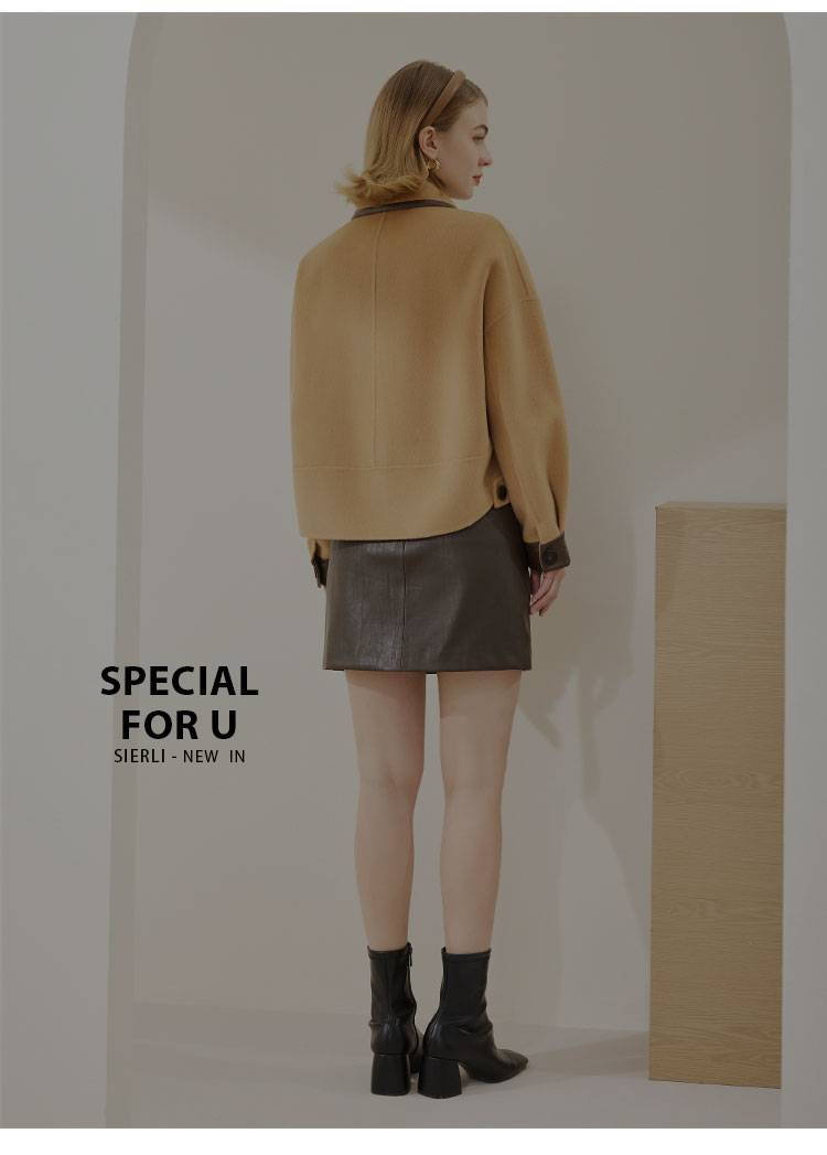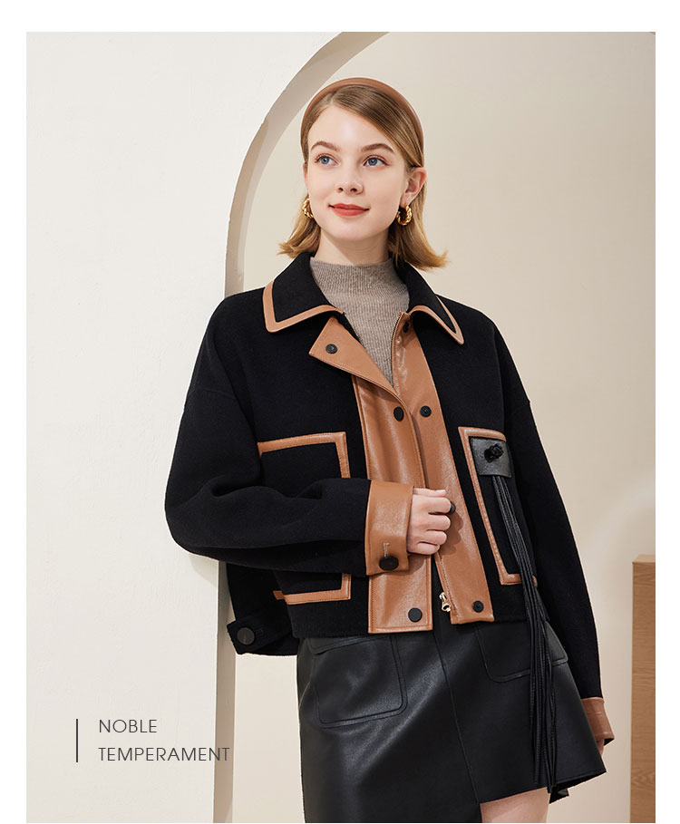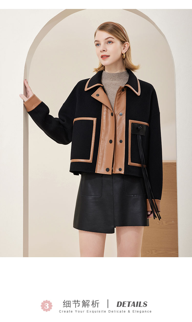 [MD902]斯尔丽瑟俪2022年冬上新拼接短款帅气大衣外套