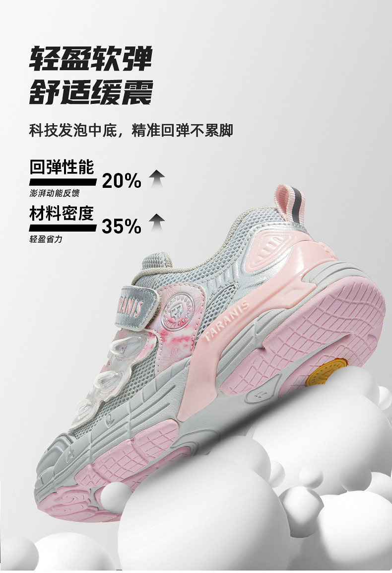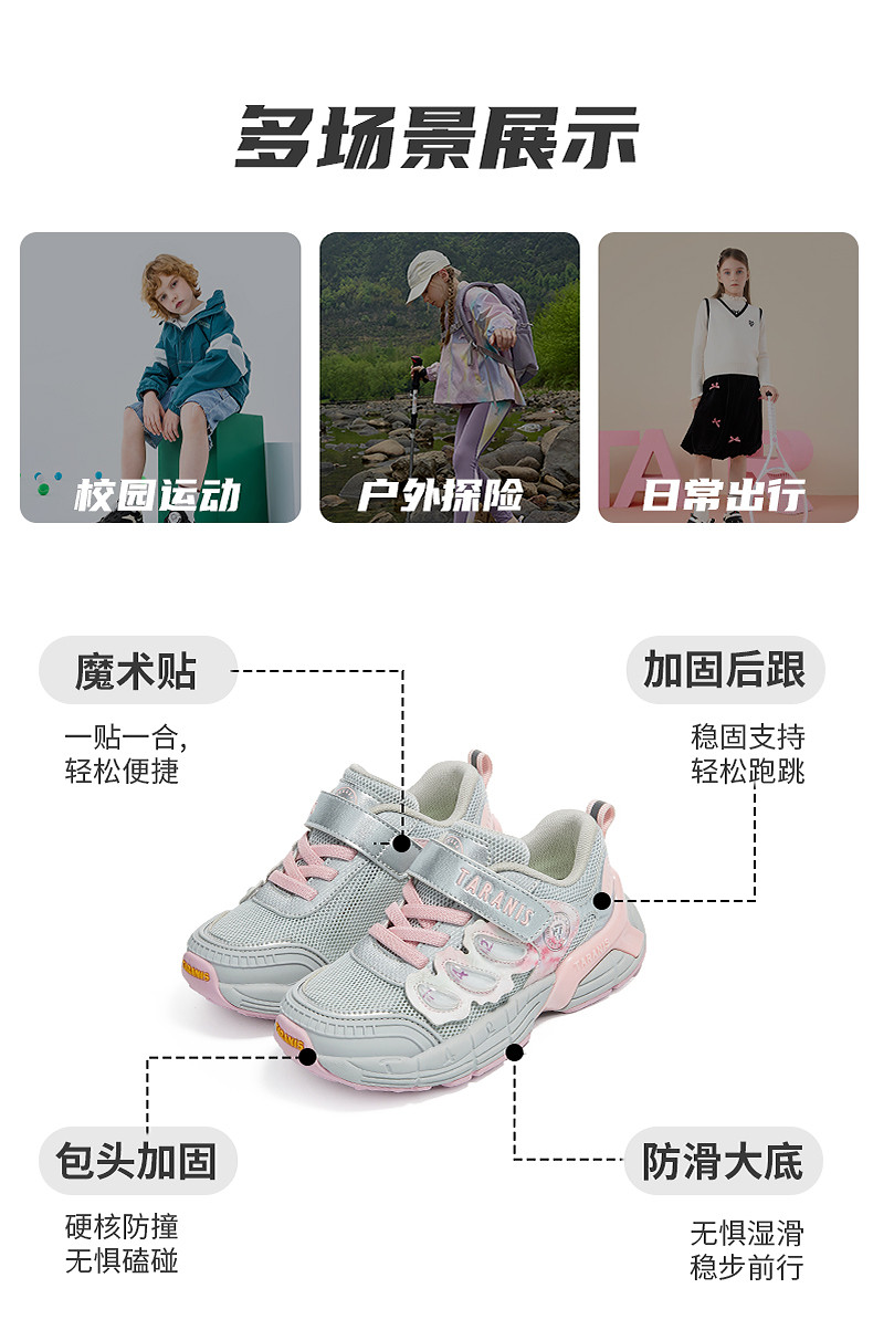 泰兰尼斯儿童轻户外运动鞋春季新款女童跑步鞋舒适休闲鞋防滑耐磨T01X6A8648