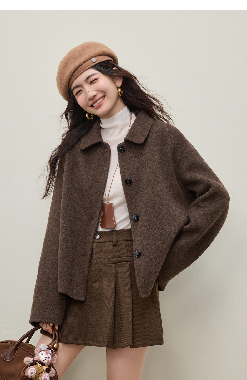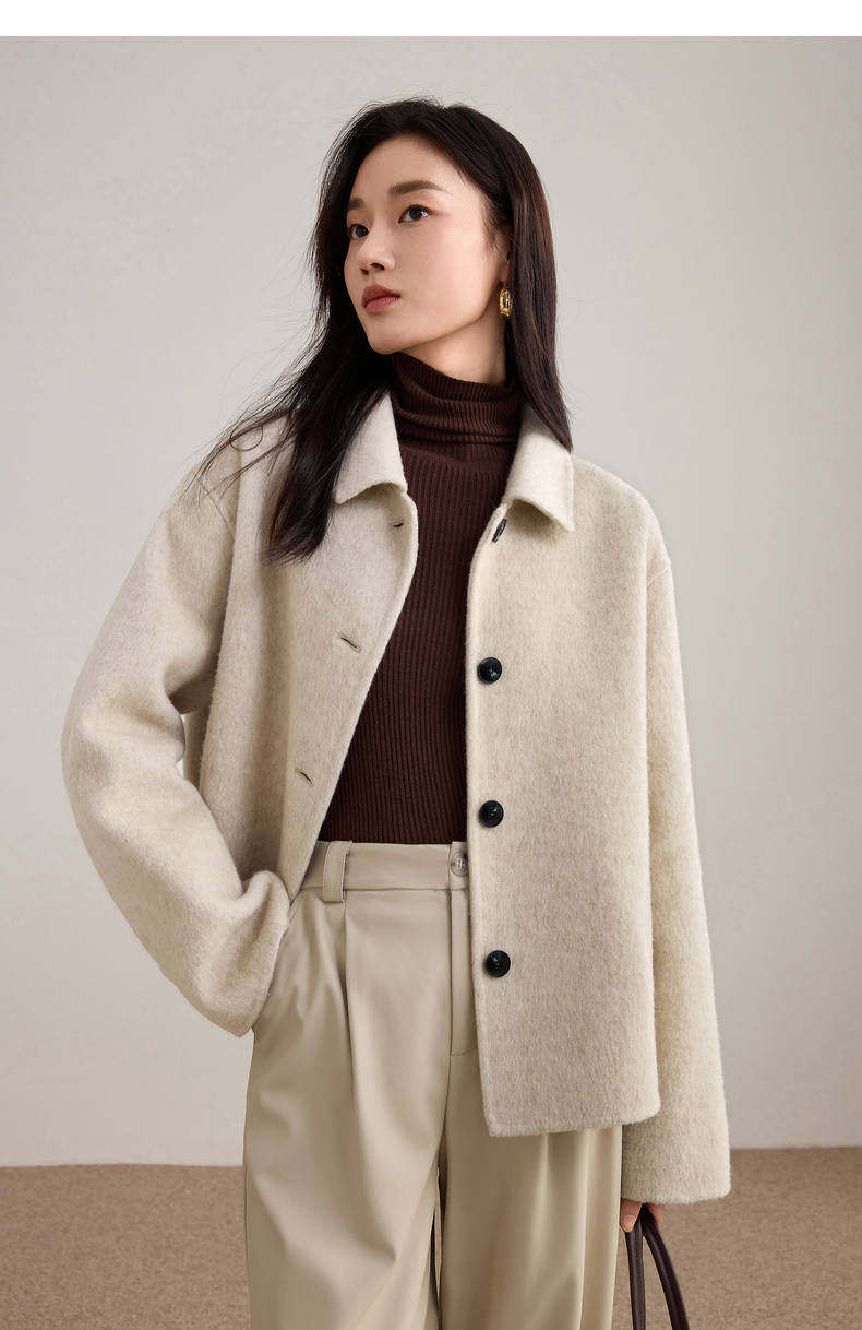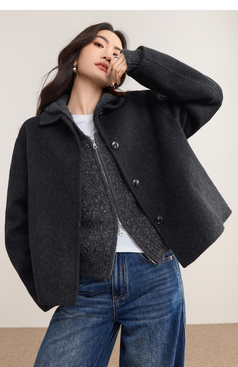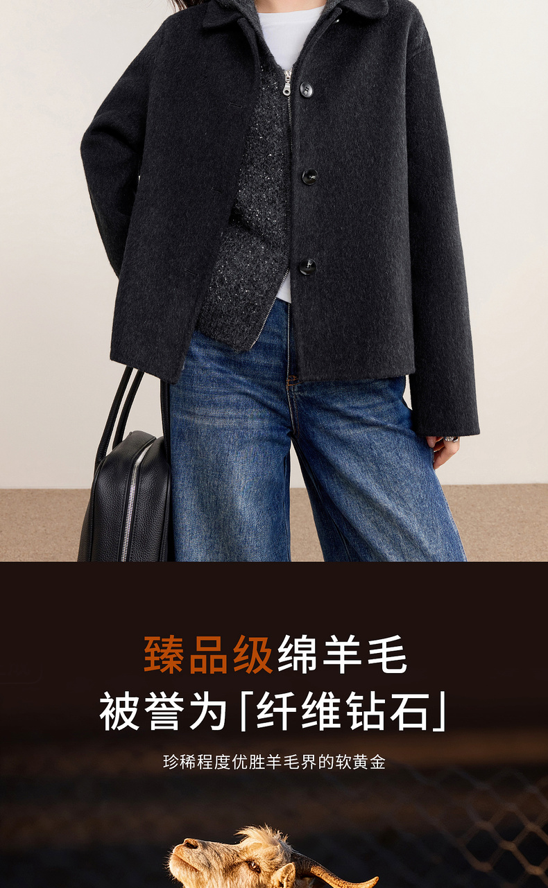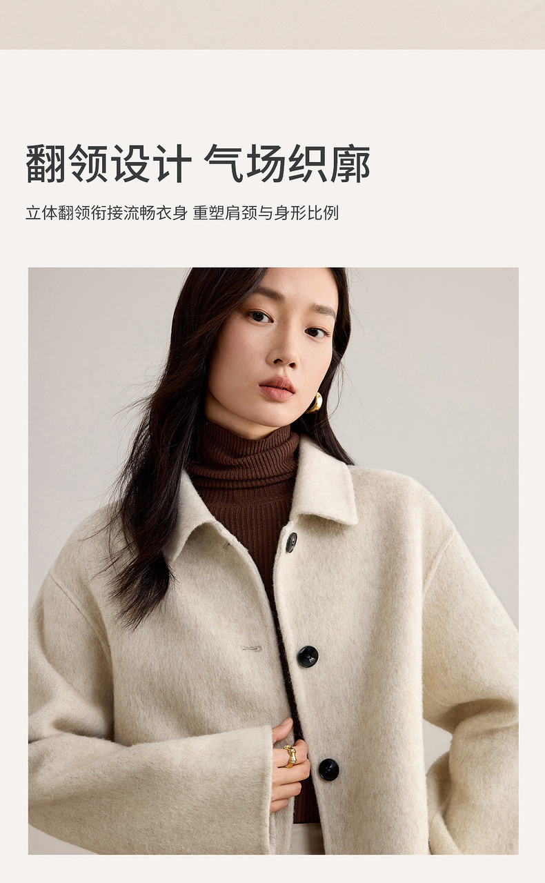 【内购】【绵羊毛】都市通勤气质翻领单排扣宽松落肩不臃肿厚双面呢外套-W54OC2733