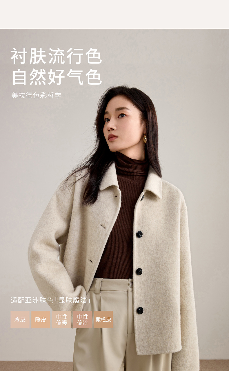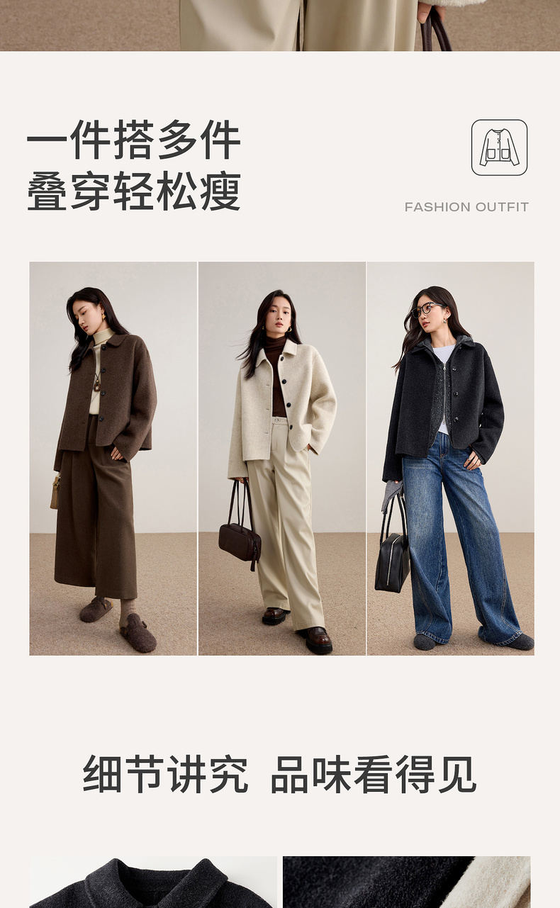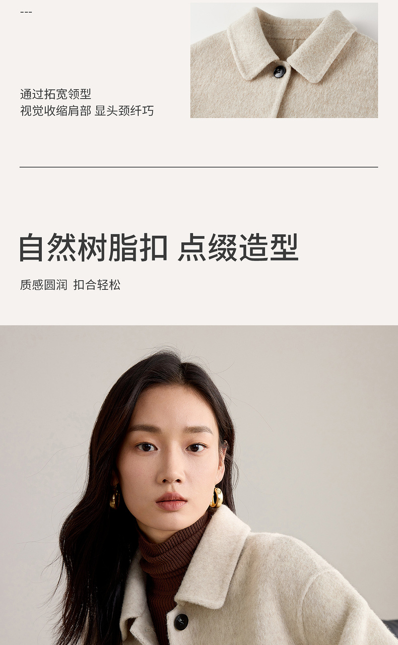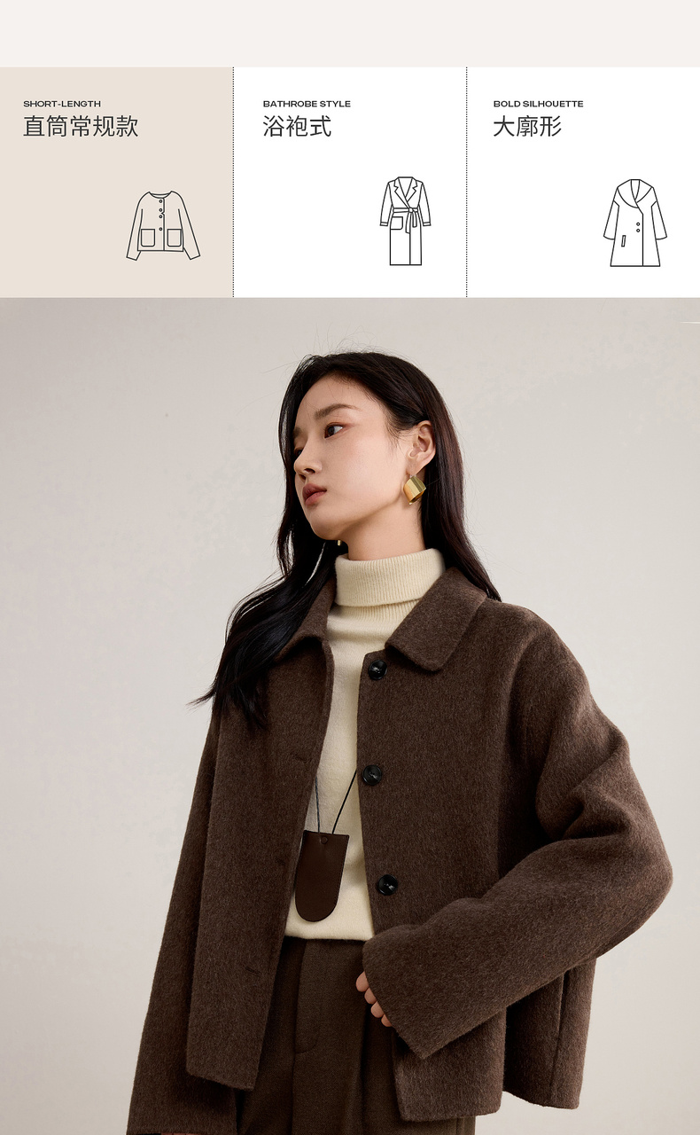 【内购】【绵羊毛】都市通勤气质翻领单排扣宽松落肩不臃肿厚双面呢外套-W54OC2733