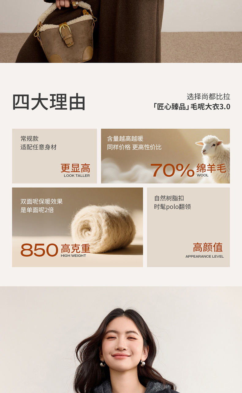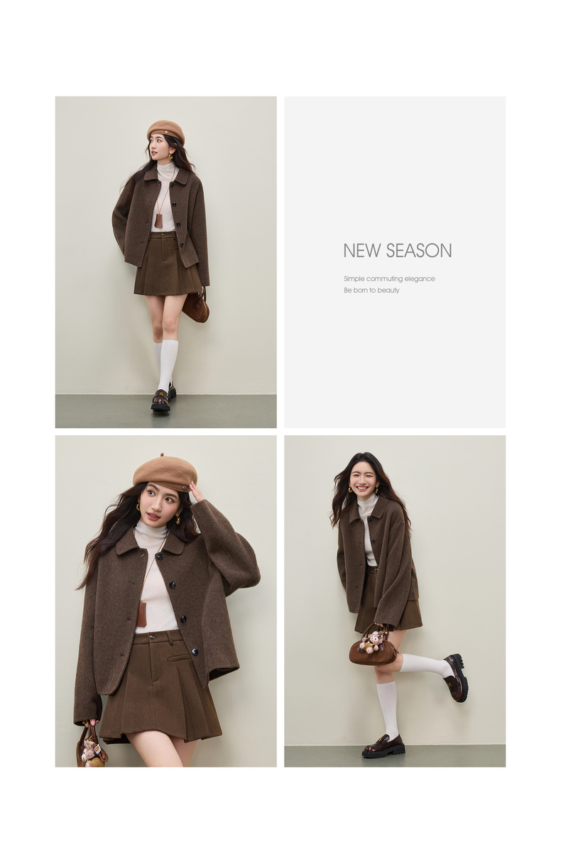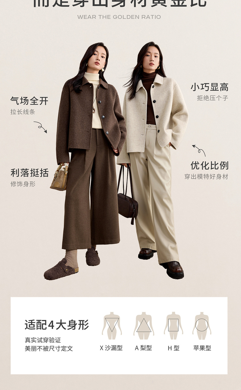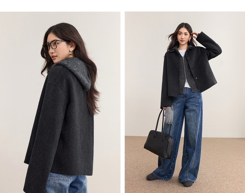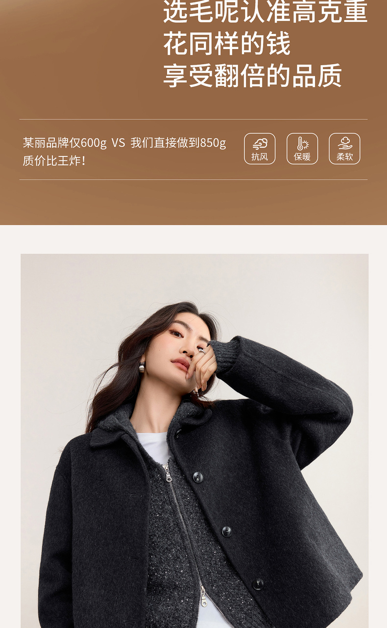 【内购】【绵羊毛】都市通勤气质翻领单排扣宽松落肩不臃肿厚双面呢外套-W54OC2733