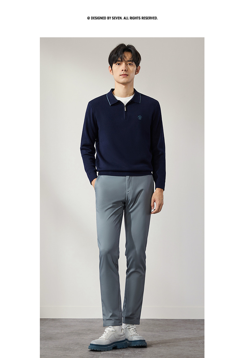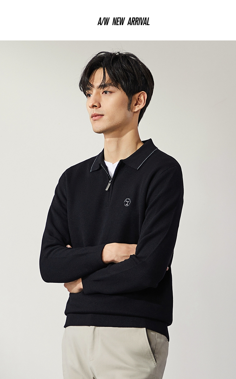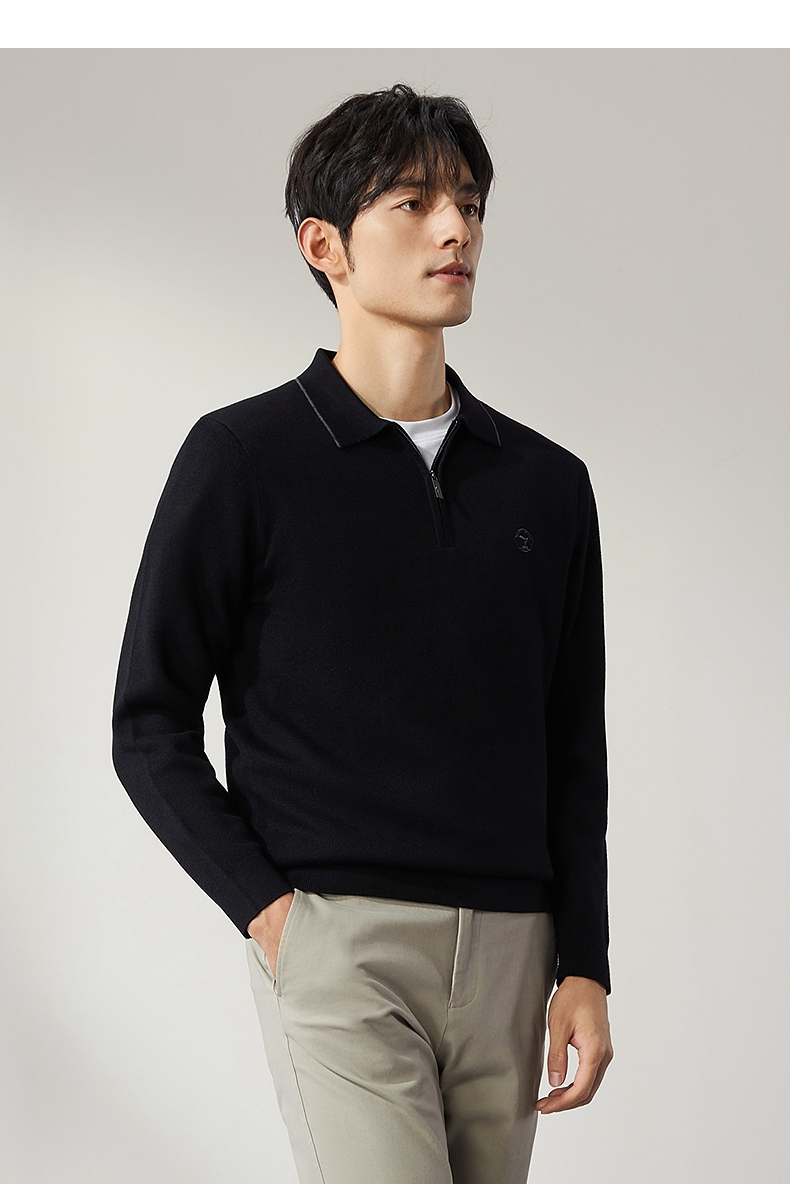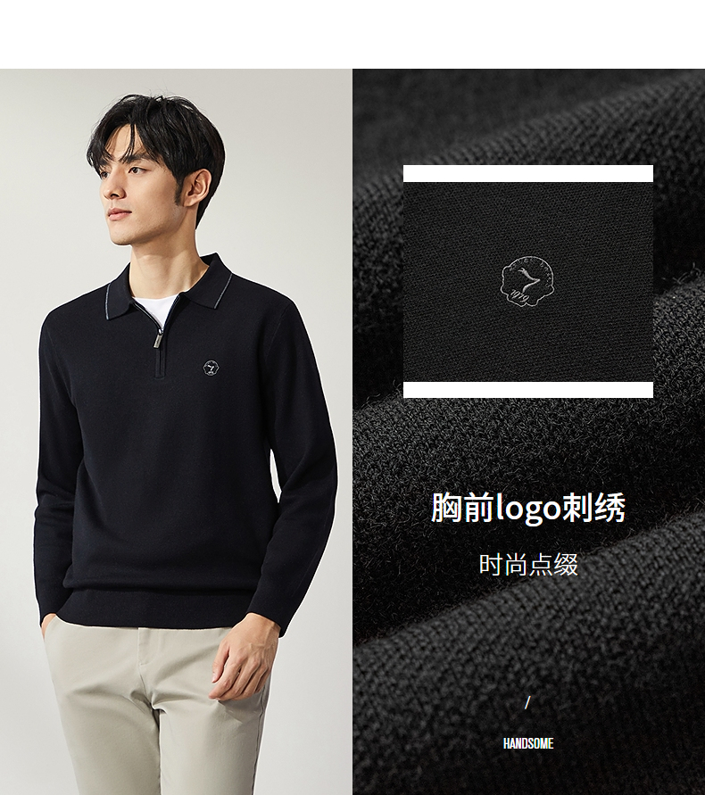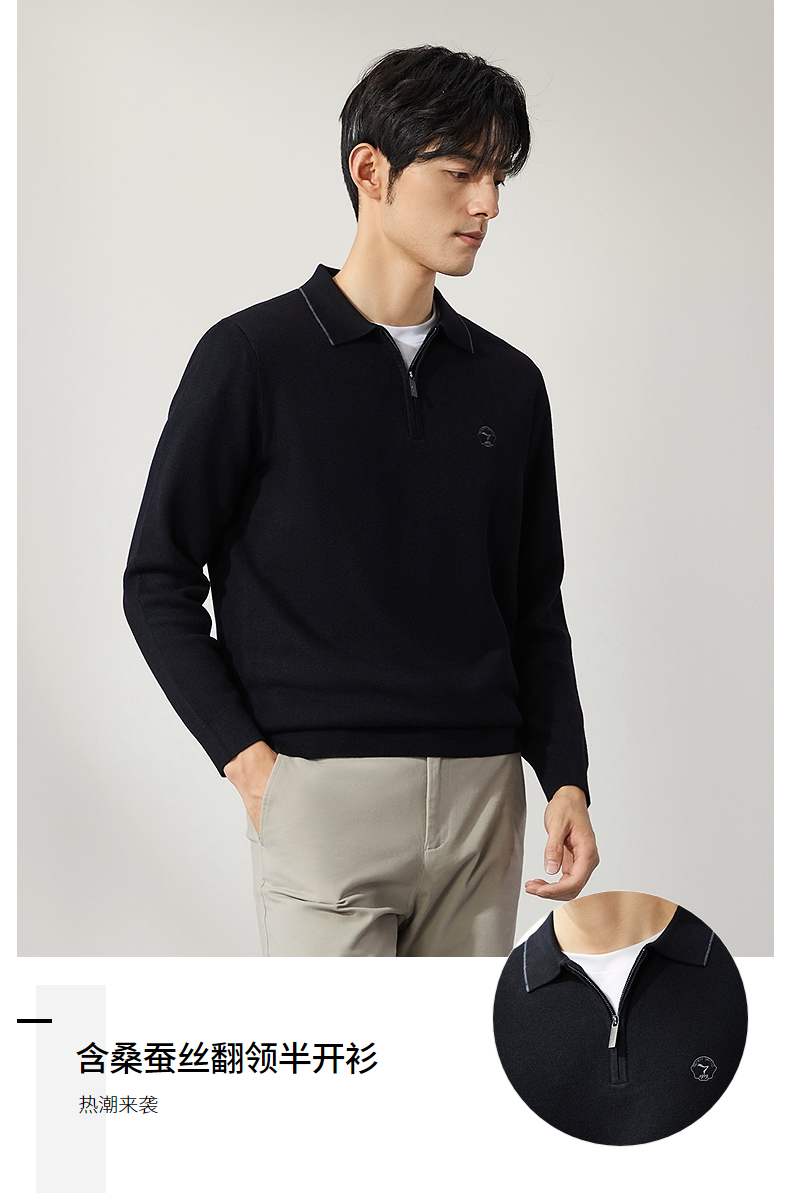 柒牌半拉链针织衫男2024秋季新款时尚休闲中青年保暖舒适翻领毛衫 127Y70470