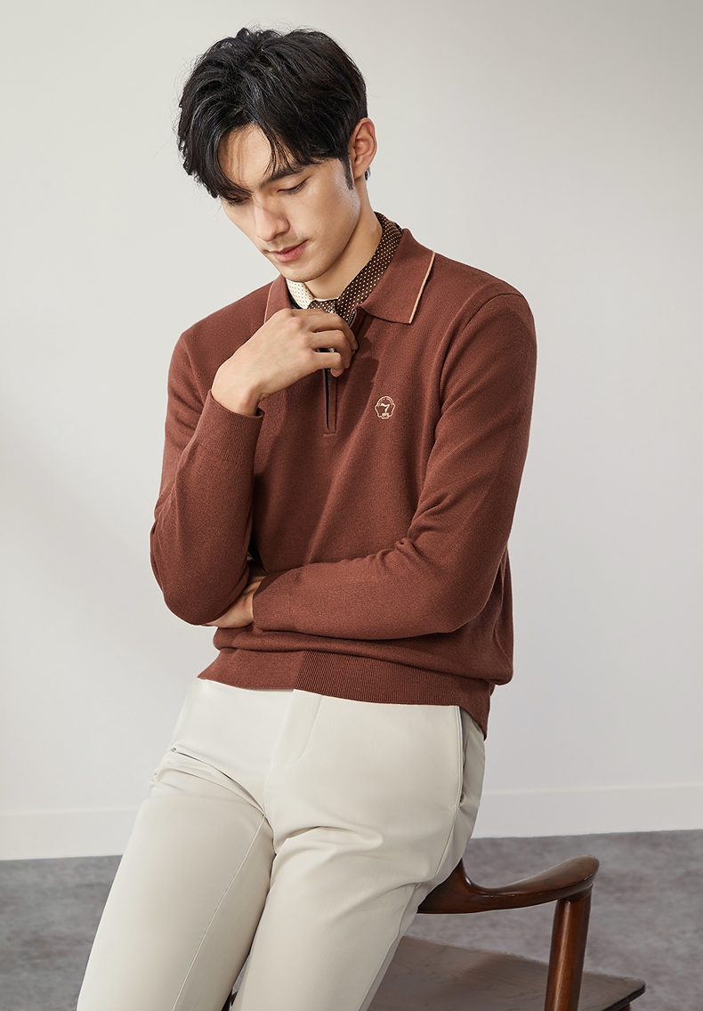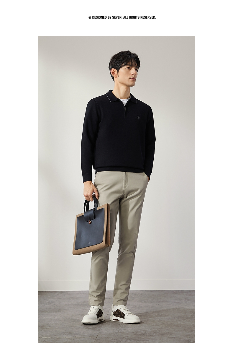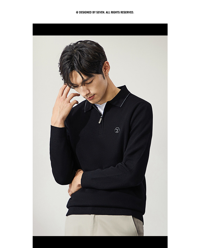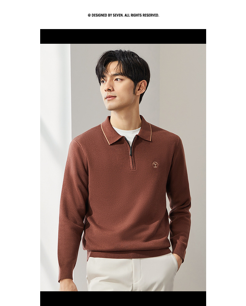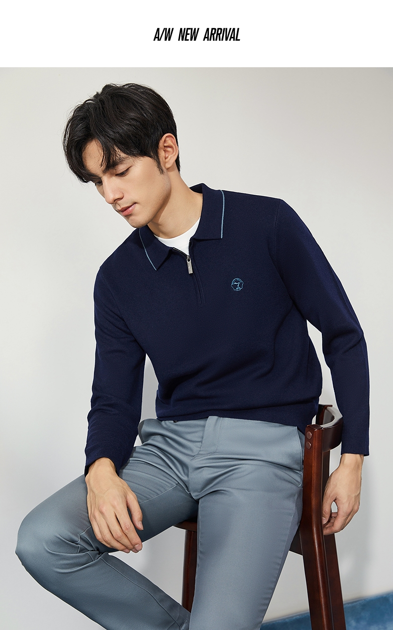 柒牌半拉链针织衫男2024秋季新款时尚休闲中青年保暖舒适翻领毛衫 127Y70470