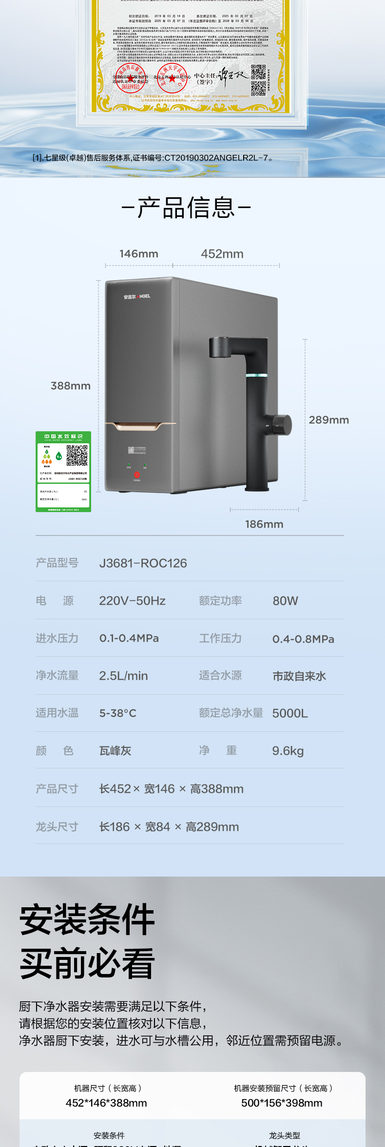安吉尔玉龙 1000G典藏版净水器