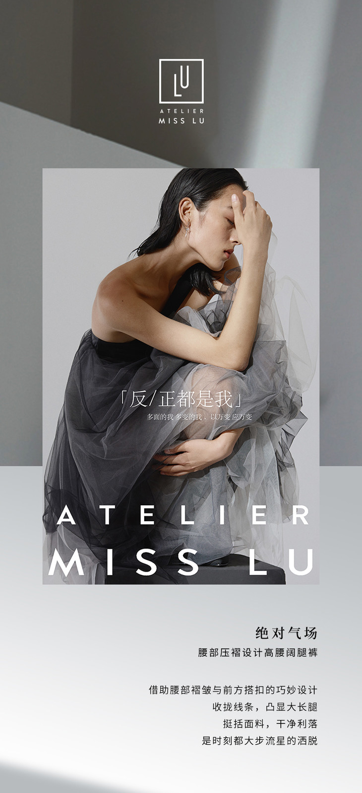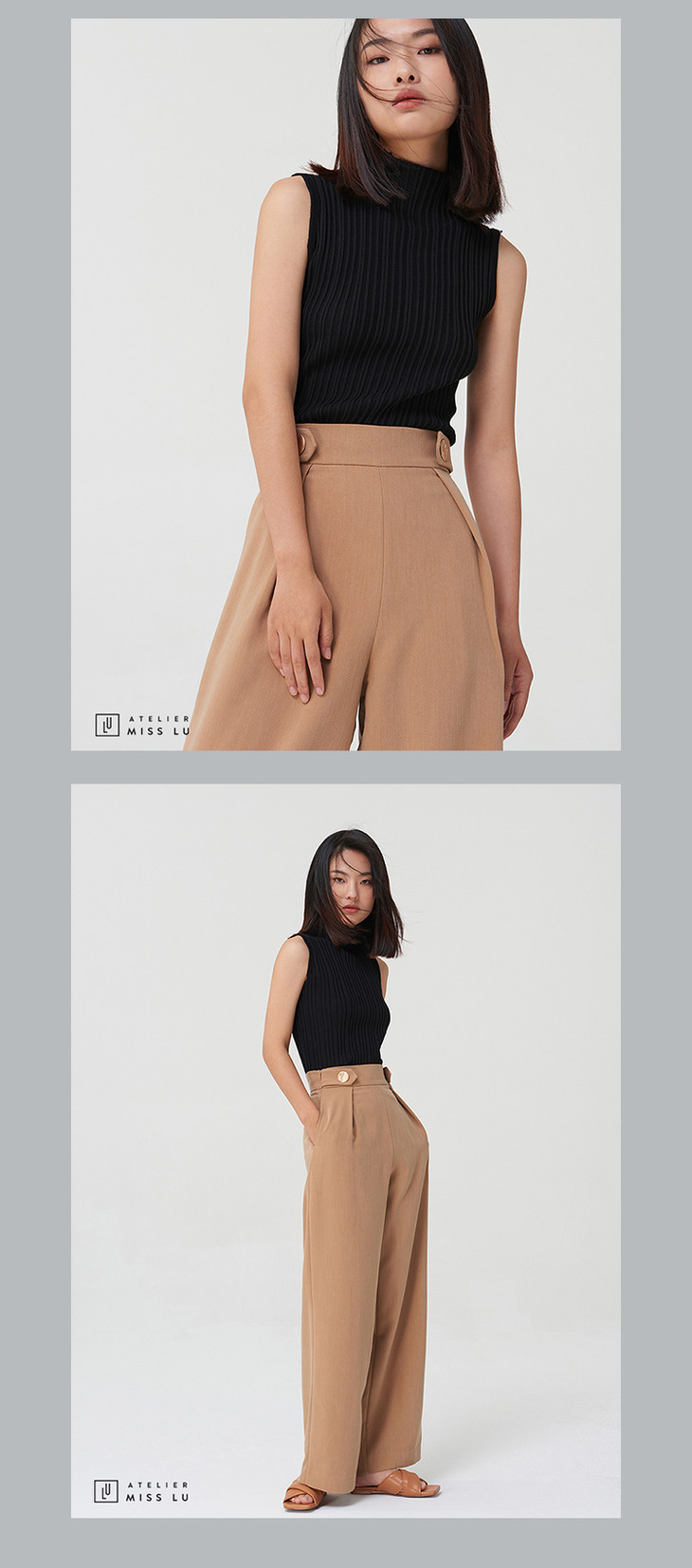 AtelierMissLu-【绝对气场】 腰部褶皱设计高腰阔腿裤