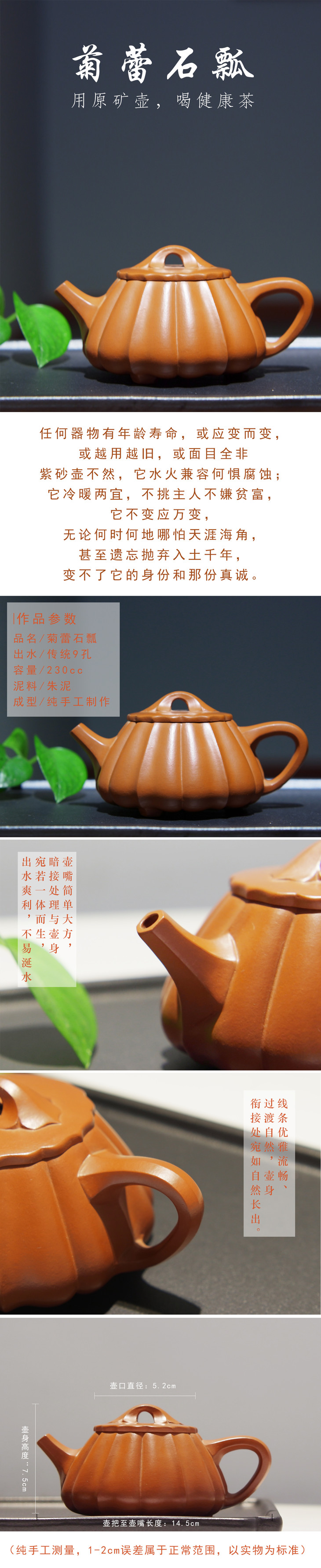 【云山】菊蕾石瓢紫砂壶朱泥送礼自用收藏