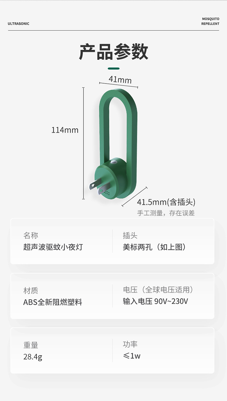 【光感超声波驱蚊器】新升级夜灯驱虫驱鼠器 迷你家用卧室床头护眼小夜灯驱蚊