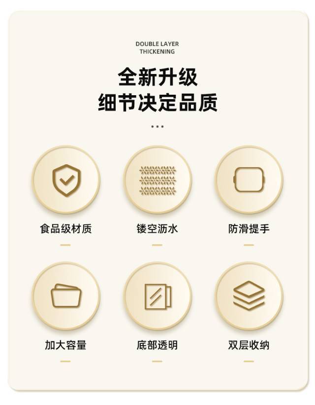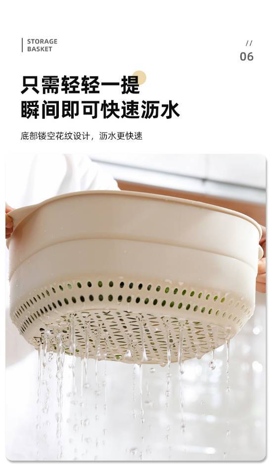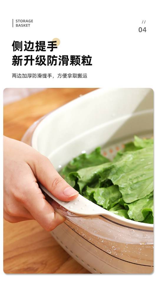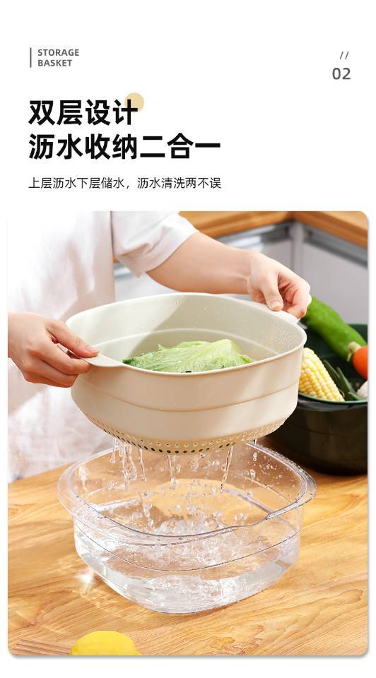 「北欧简约风 时尚专利设计」双层多功能收纳沥水篮 一物多用 叠放设计方便收纳 厚实环保无异味 食品级PP+PET材质 大尺寸10*cm21cm*24cm