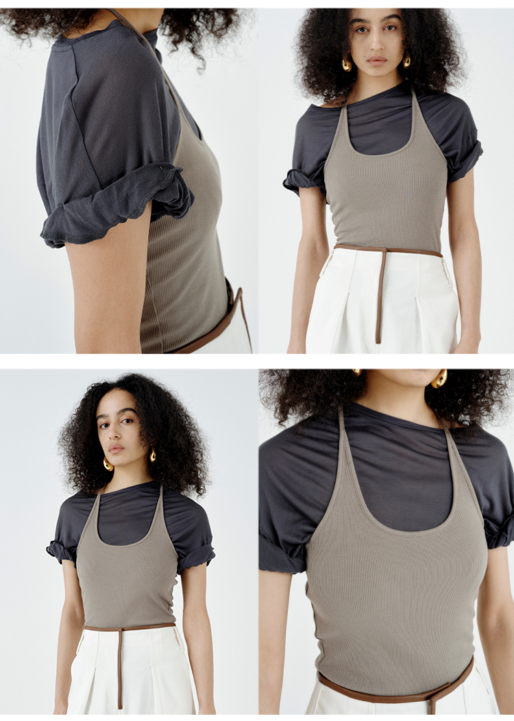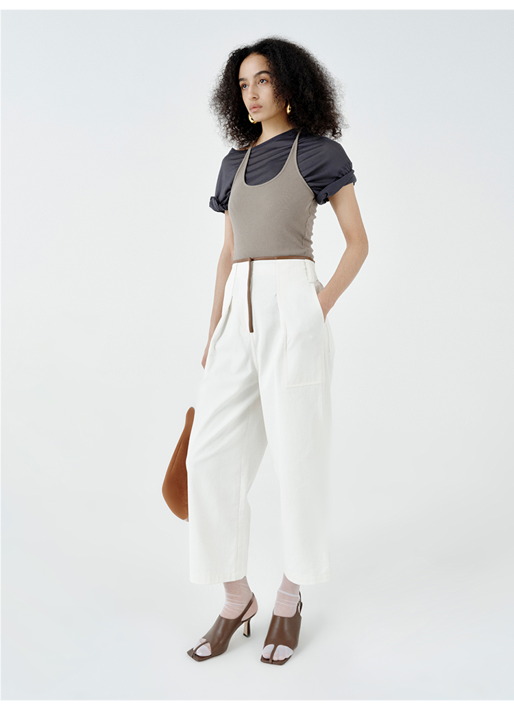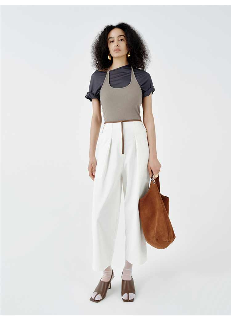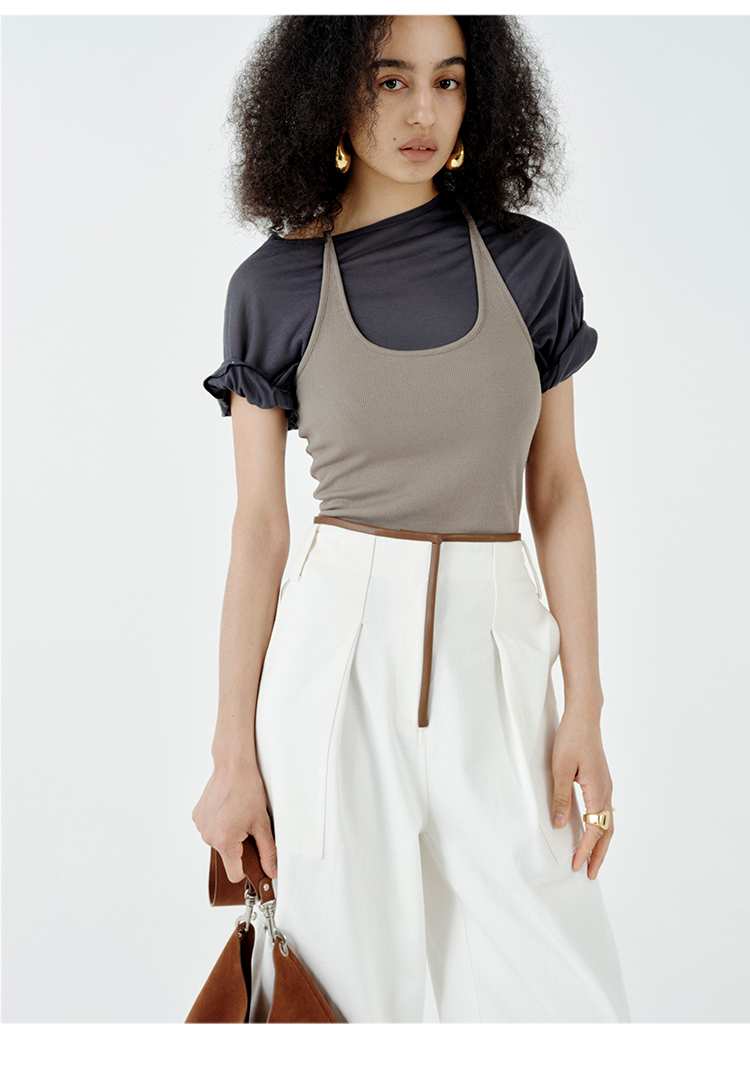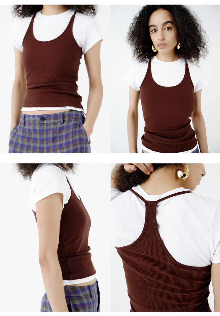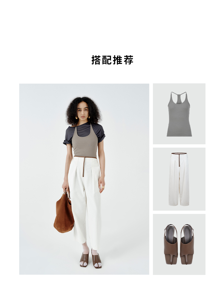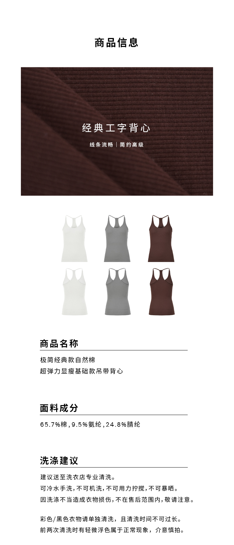 HIDEMI 极简经典款自然棉超弹力显瘦基础款吊带背心 乌木棕/自然白/鼠尾草灰
