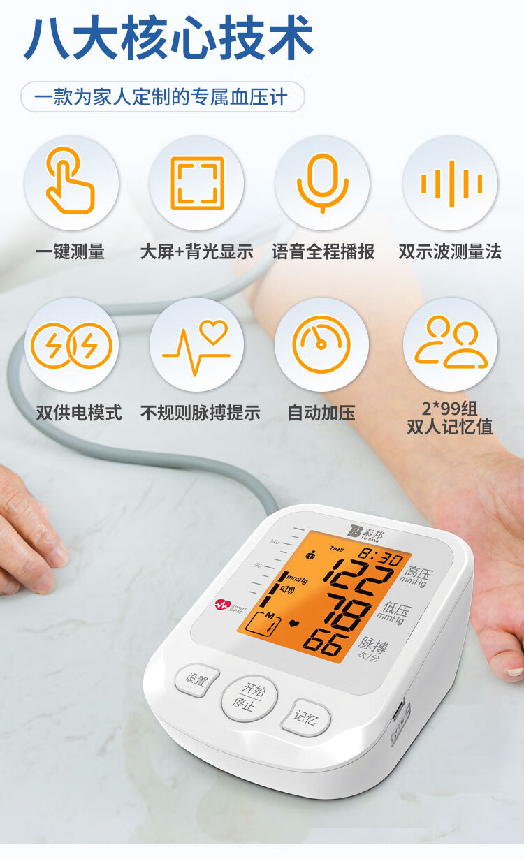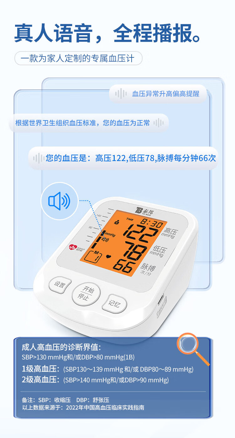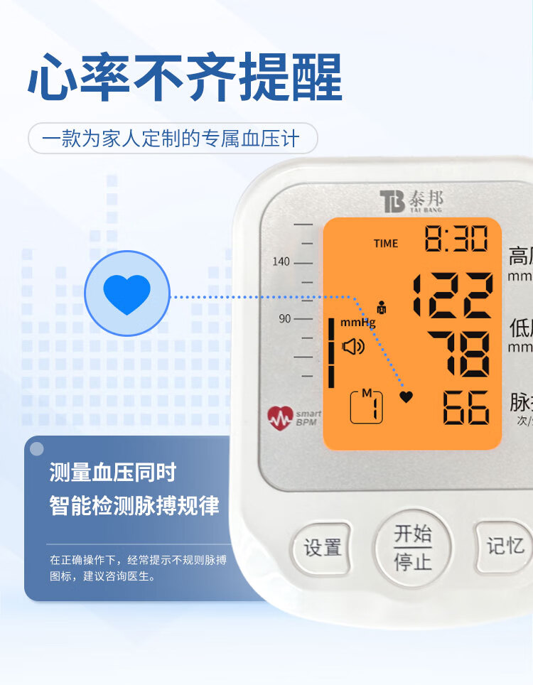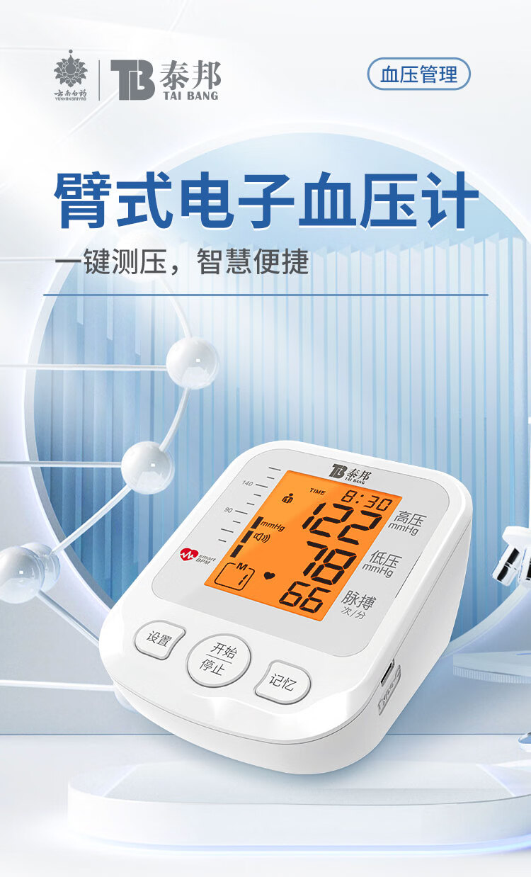 【官方正品】云南白药泰邦电子血压计臂式血压测量仪家用精准测压仪全自动可充电