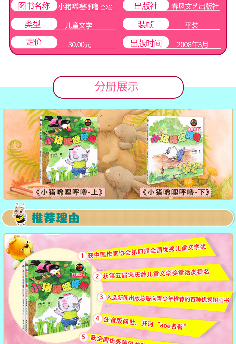 小猪唏哩呼噜注音版上下2册全套 孙幼军著 小学生一二年级阅读课外书 儿童读物绘本故事书