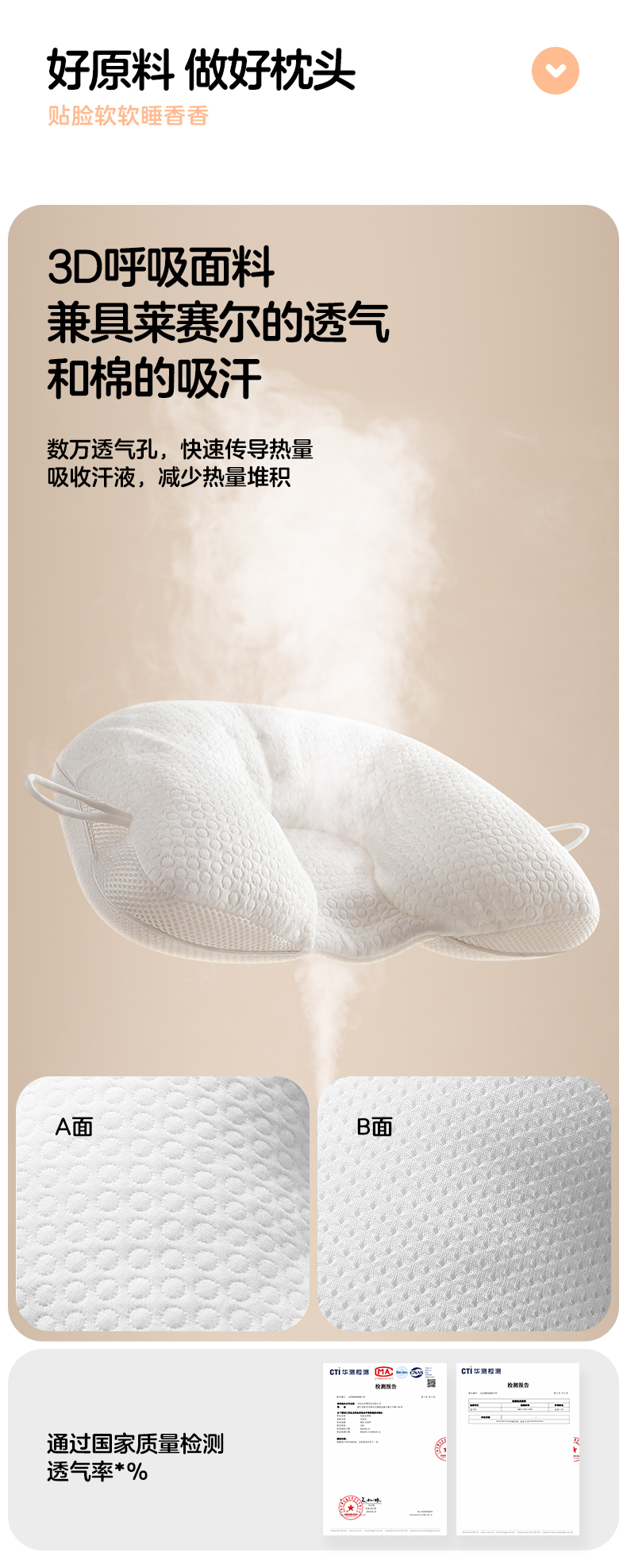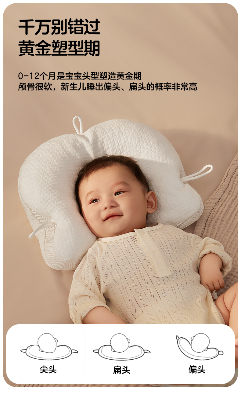 KUB可优比婴儿枕头新生儿定型枕0到6个月以上防偏头型1-3岁宝宝枕