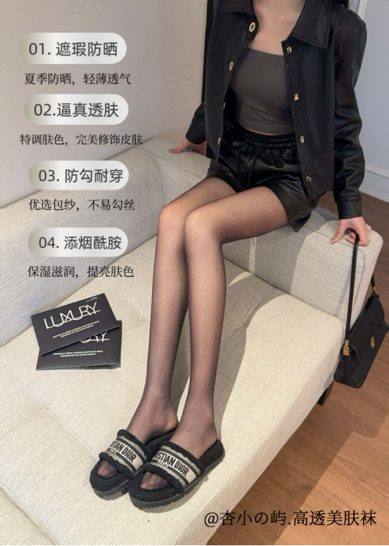 你还在穿那些闷热、勾丝、假白的普通丝袜吗? 是时候升级你的美腿装备了! 杏小の屿.高透美肤袜 将高端护肤成分烟酰胺融入面料 让你的双腿不再只是“遮瑕”,而是真正养肤!