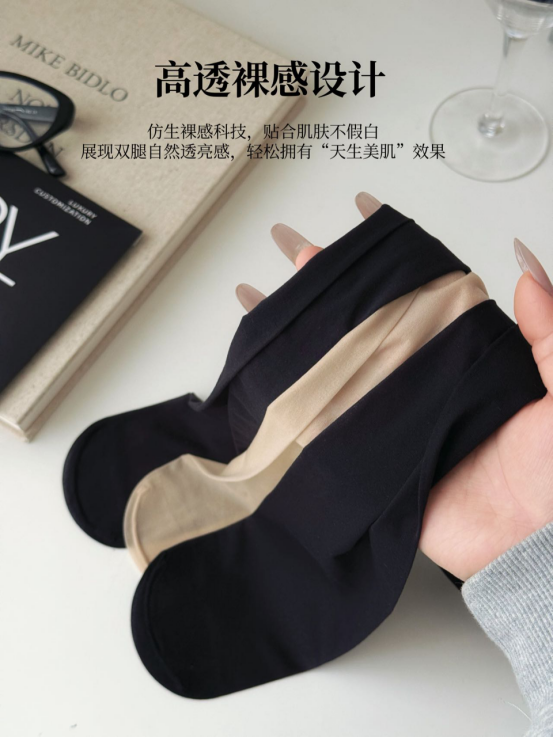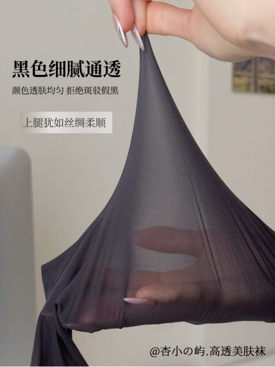 高透裸感科技,宛若天生好肤质! 普通丝袜往往存在假白、死黑、显厚重的问题 而杏小の屿采用高透感隐形纤维 真正做到轻薄无痕! 无论你选择瓷白肤、青衣黑、夜阑灰 上腿效果都是细腻通透 让双腿仿佛自带磨皮滤镜 任何光线下都能展现自然美肌感