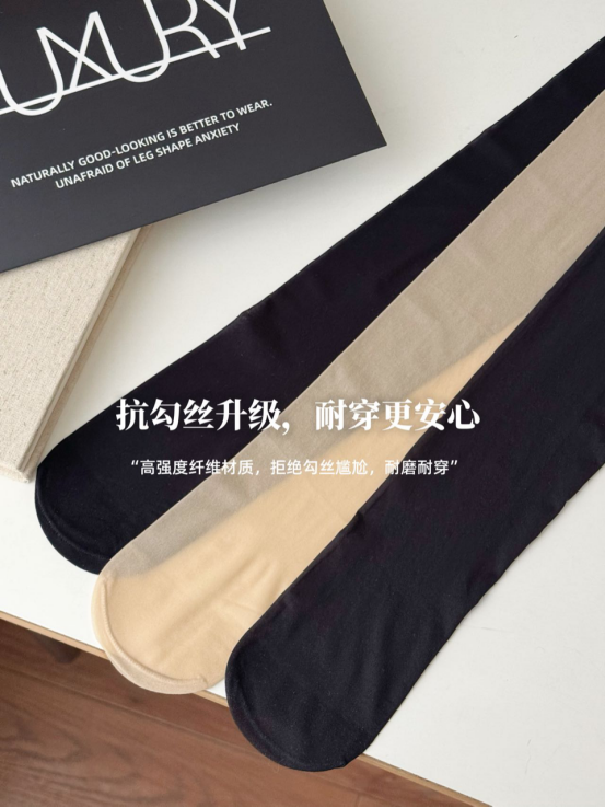 抗勾丝技术,耐穿度翻倍! 你是不是也有过这样的经历: 刚买的丝袜,一次没穿完就勾破了 指甲、桌角、包包拉链,都是丝袜的“天敌”! 这款袜子采用高密度编织工艺 弹力细纤维紧密交织,抗勾丝能力提升200% 日常穿搭更耐造,不怕轻微摩擦损坏!