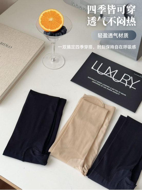 轻盈透气,四季可穿! 很多丝袜一穿就觉得闷热不透气 夏天更是噩梦 而杏小の屿.高透美肤袜 采用透气纤维+轻薄面料 保证透气性的同时 不会让双腿闷出汗渍,四季皆可穿!