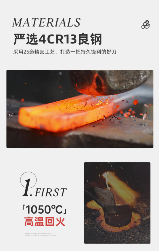 ✅论材质 颜值这么高,材质行不行啊❓❗ 我只能说颜值是它身上最不起眼的一点 锋利才是一把好刀最好的嫁妆哈哈哈 刀面是优质的40cr13钢材 这个材质特别适用来做砍骨刀 采用25道精密工艺 只为打造一把持久锋利的好刀 解决厨房新手下手难的问题 保障切菜舒适顺畅 刀身是ABS材质 强度高又很耐磨 拥有更加耐磨锋利的特性