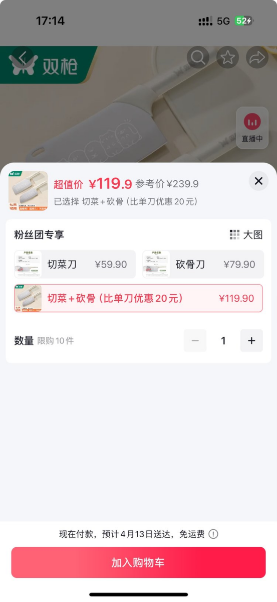 外网售价79元一把,切菜刀+砍骨刀售价119.9元!! 今天开团,两把79元!再送一个水果刀,加量不加价!