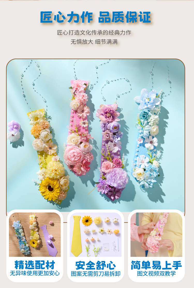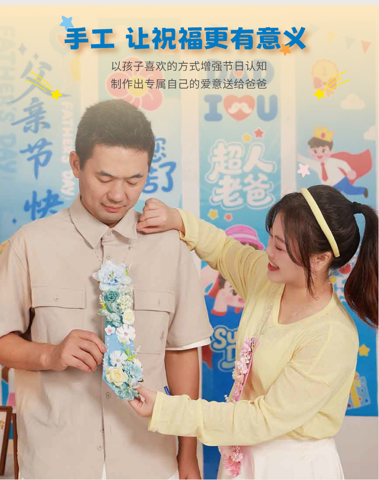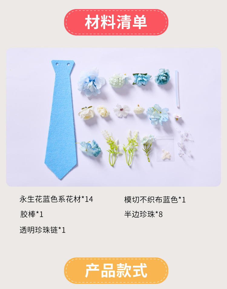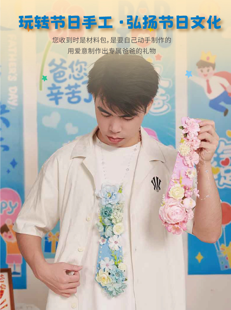 父亲节礼物手工diy永生花不织布领带儿童制作材料包幼儿园送爸爸