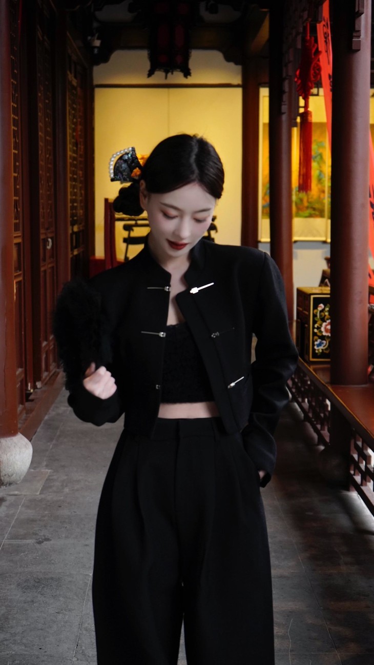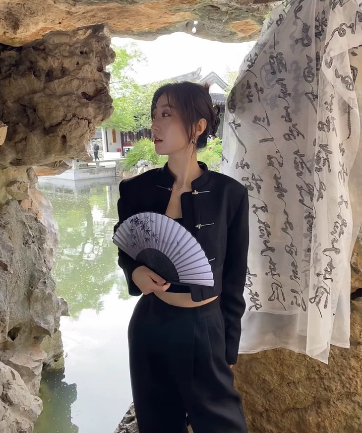 春日迟迟,春景熙熙🌸 春暖花开,穿新中式国风的季节来了~ 日常出街、聚会都能穿、超级好看呀! 虽然是黑色但是属于让人一眼就能感觉到的与众不同 春天黄金出游季,有了它 娃们出游拍出大片就是分分钟的事儿 还超级显瘦,拍出大长腿就靠这套新中式了~