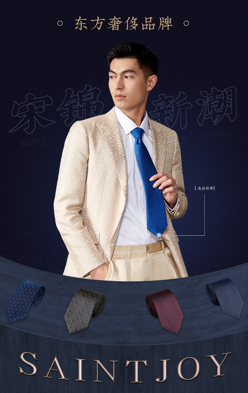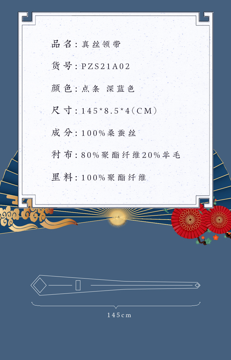 SAINTJOY/上久楷 真丝领带 点条 深蓝色 PZS21A02