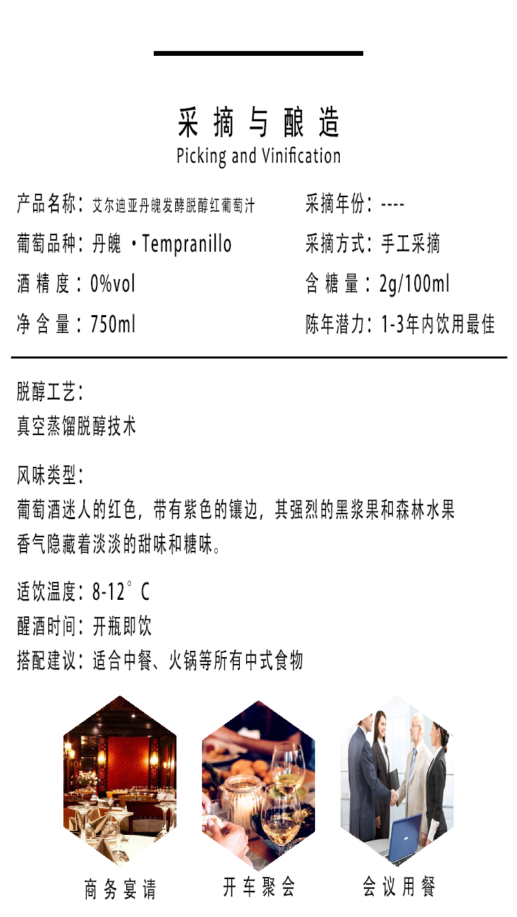 艾尔迪亚丹魄发酵脱醇红葡萄汁