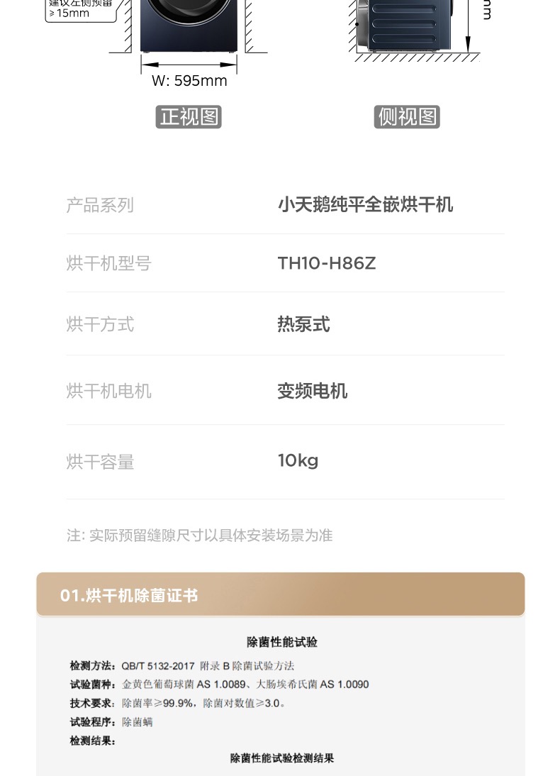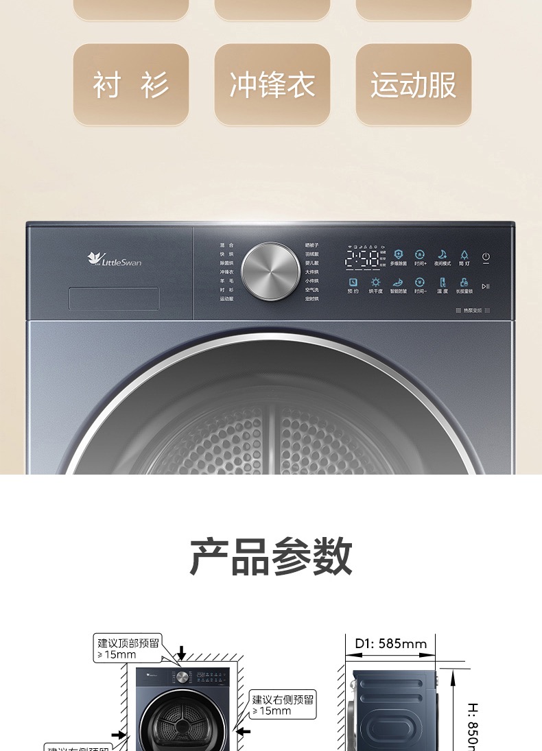小天鹅 (252213)干衣机 TH10-H86Z 干衣护理机 瑾瑜蓝 220V,1Ph 50Hz