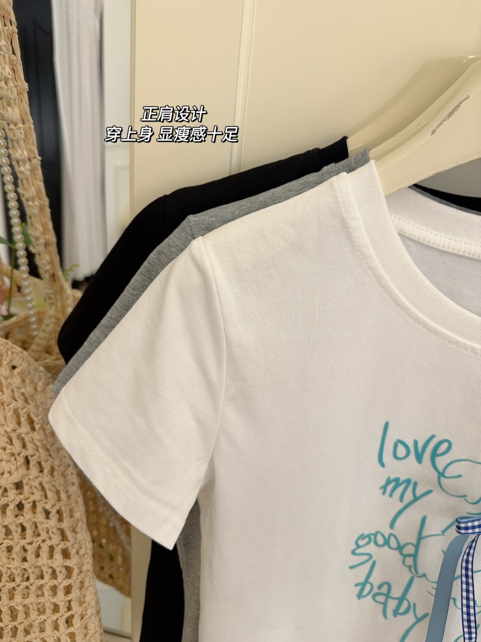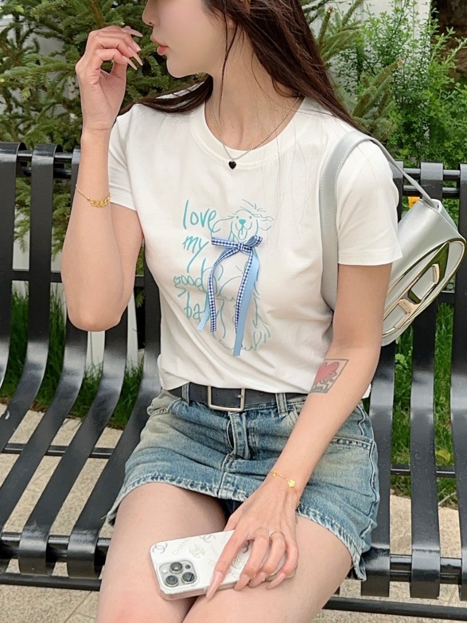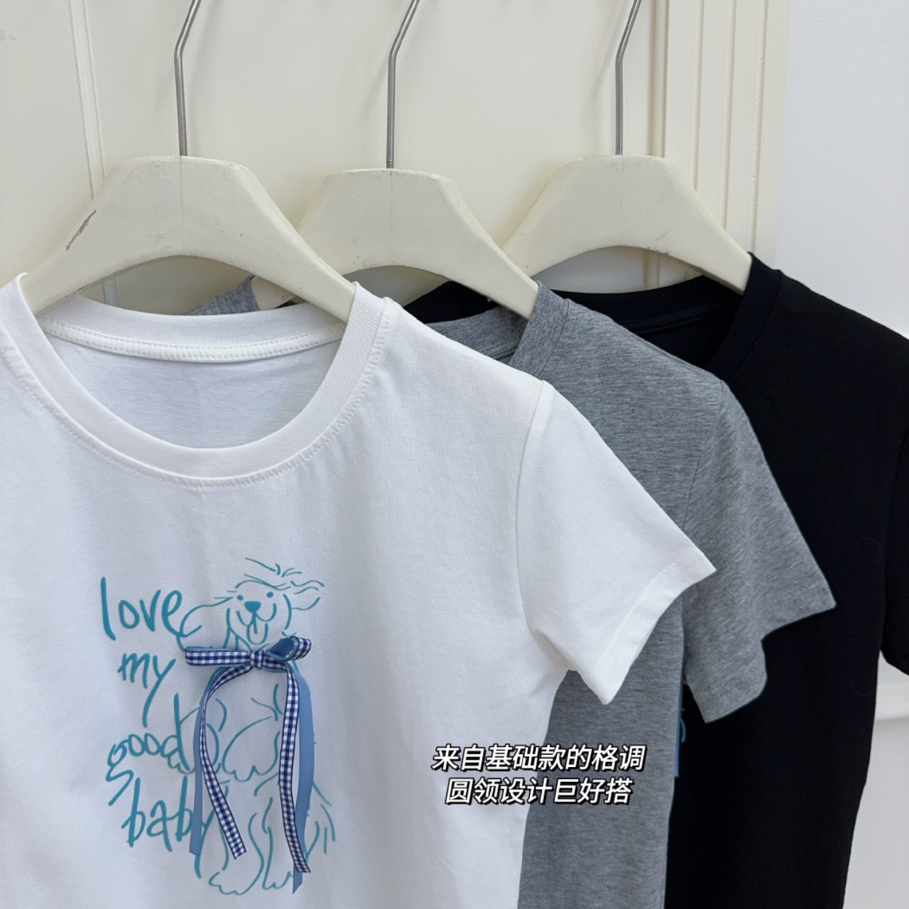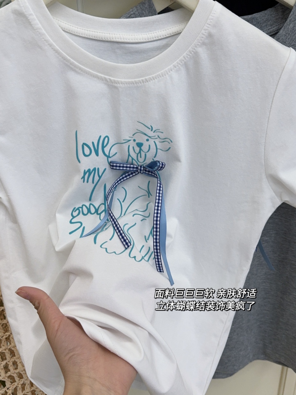 【YW】无忧购“清仓大促”韩系穿搭甜美蝴蝶结小狗百搭T恤X602(截单后3-5天发货)