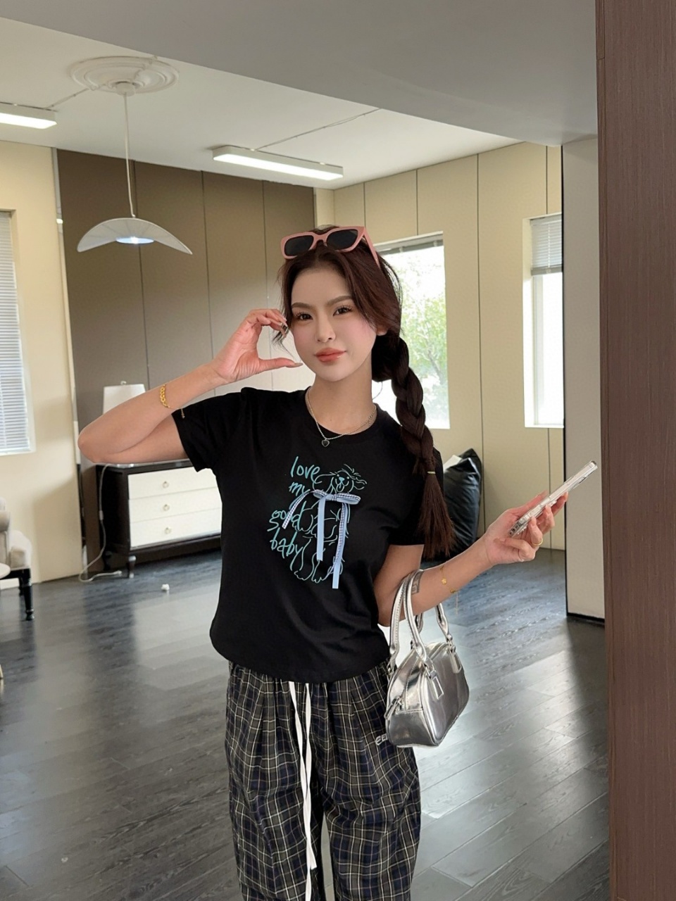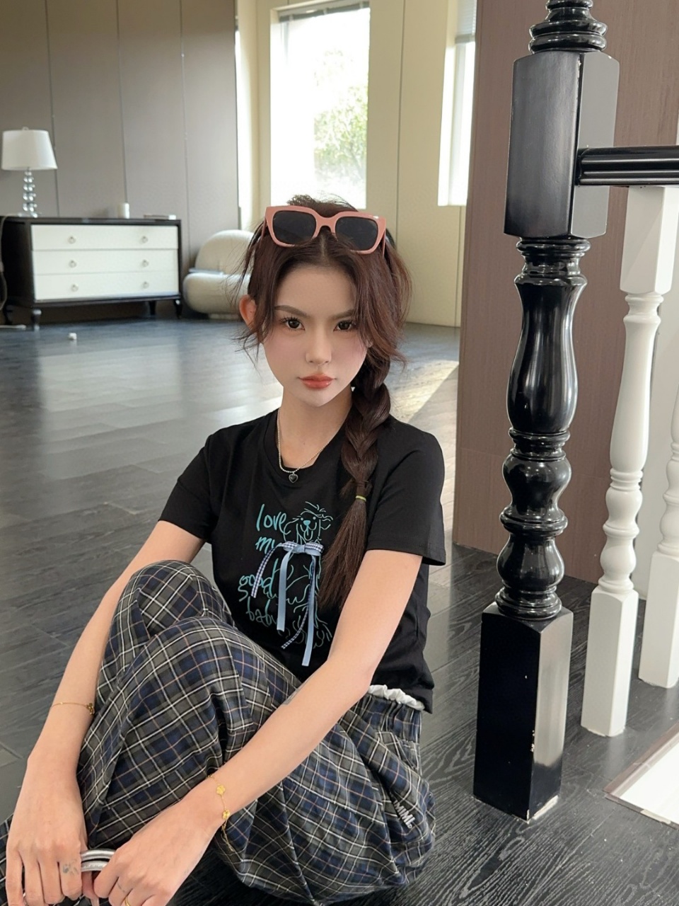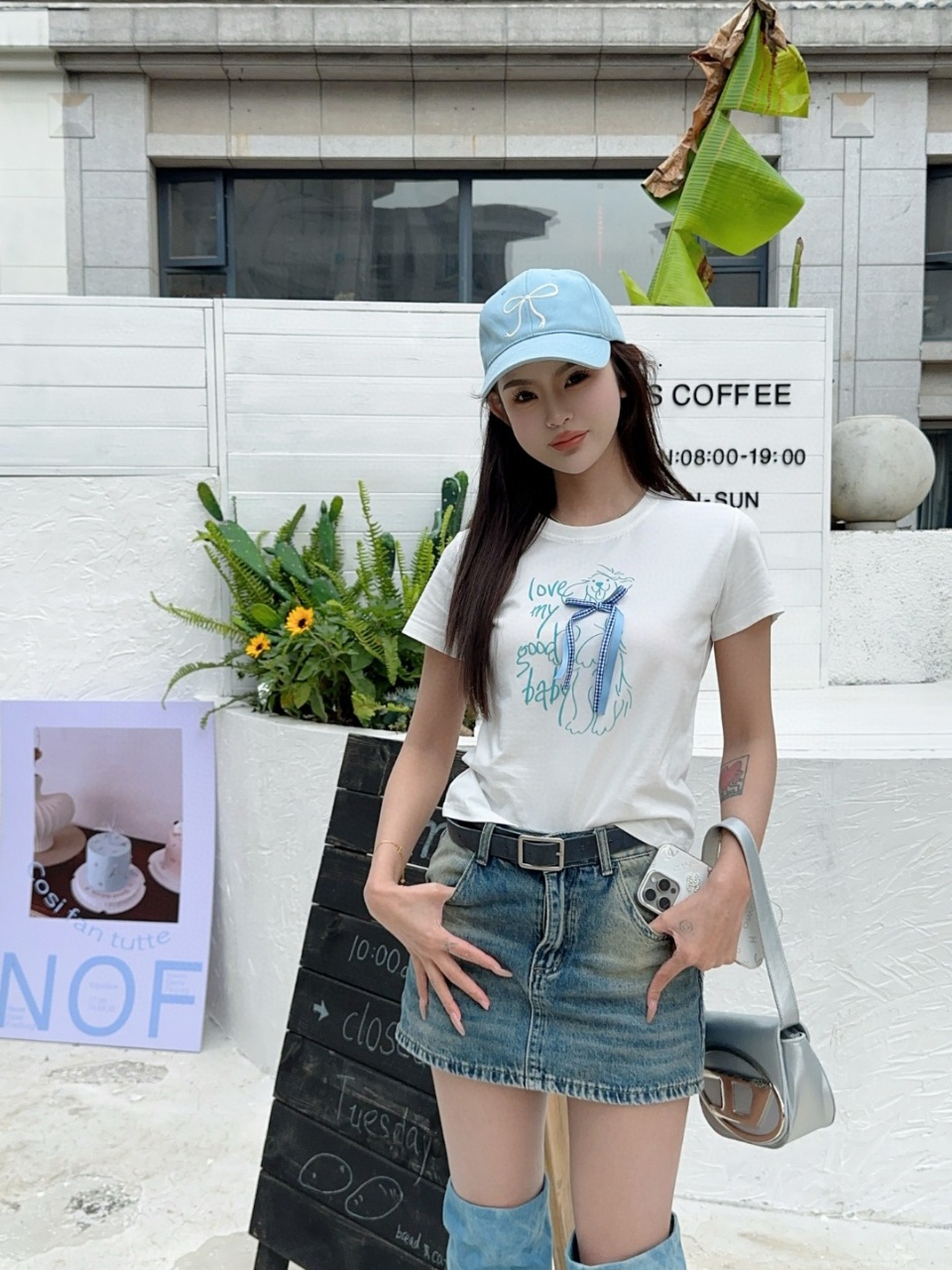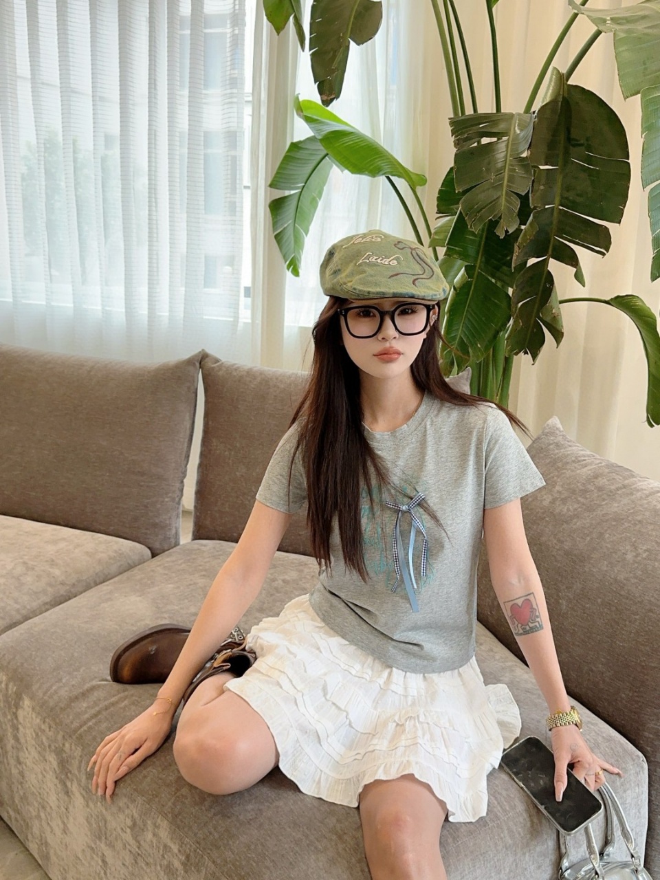 【YW】无忧购“清仓大促”韩系穿搭甜美蝴蝶结小狗百搭T恤X602(截单后3-5天发货)