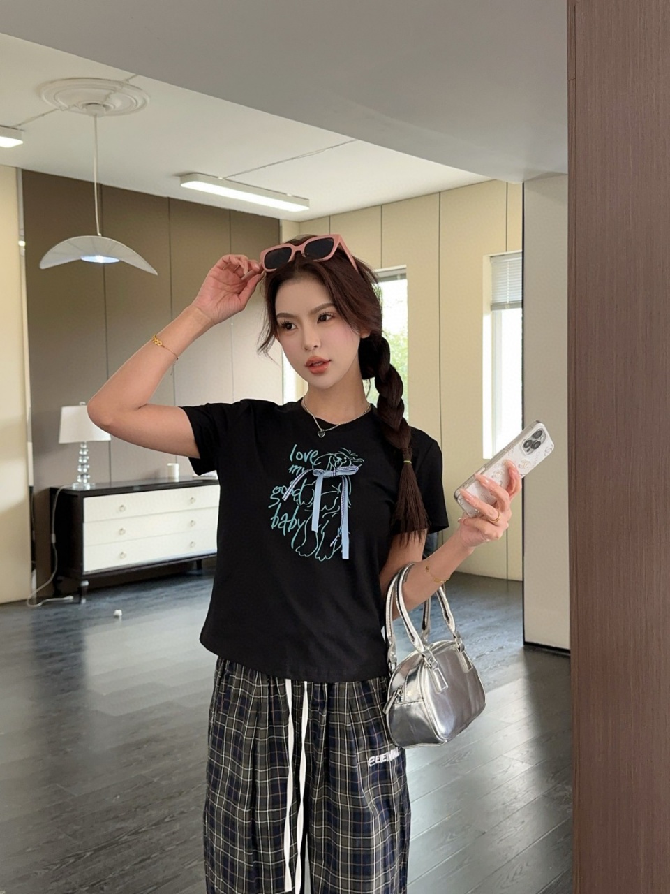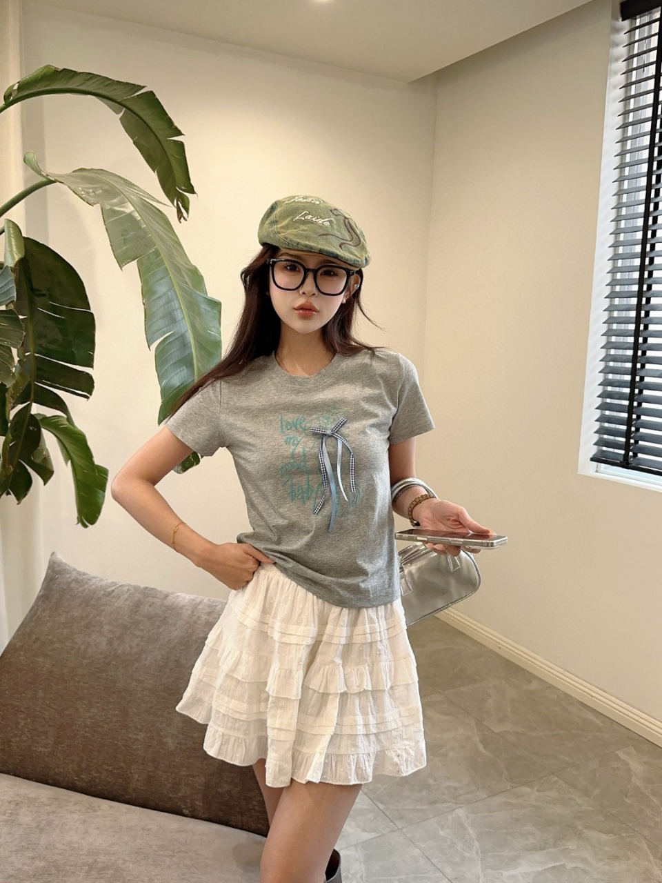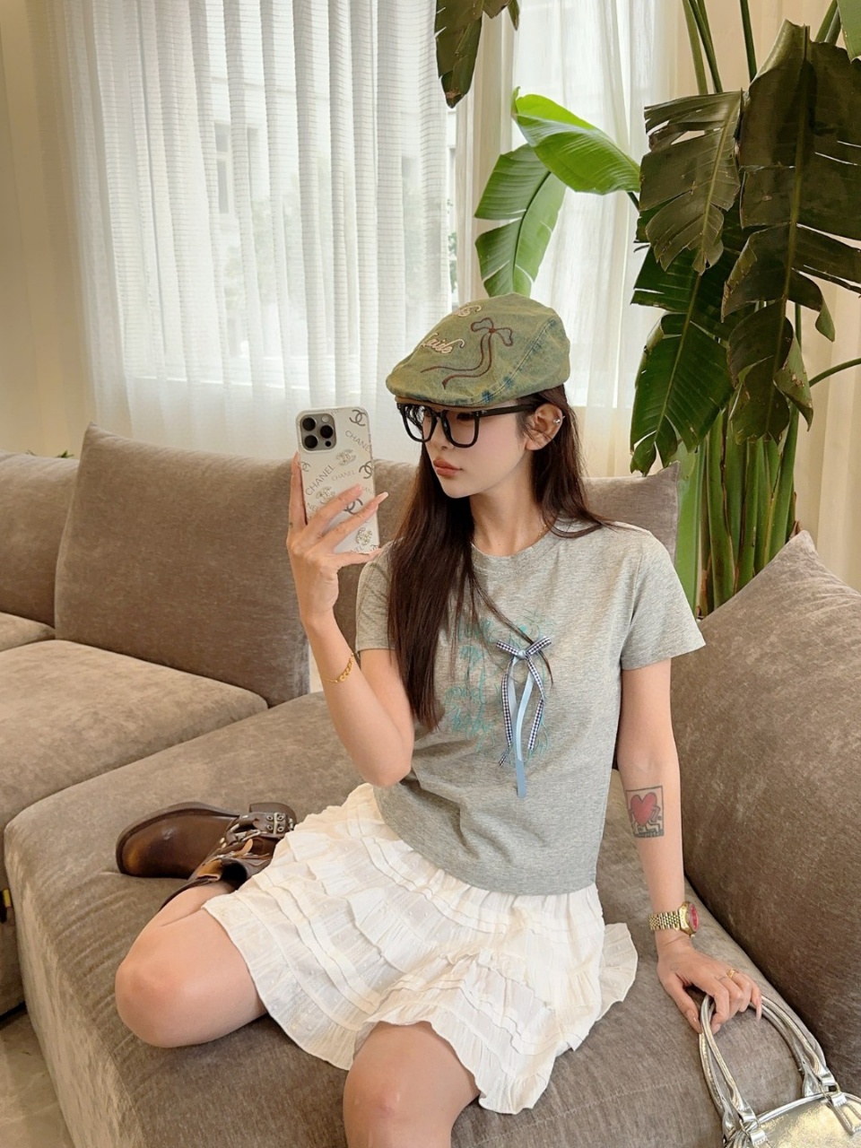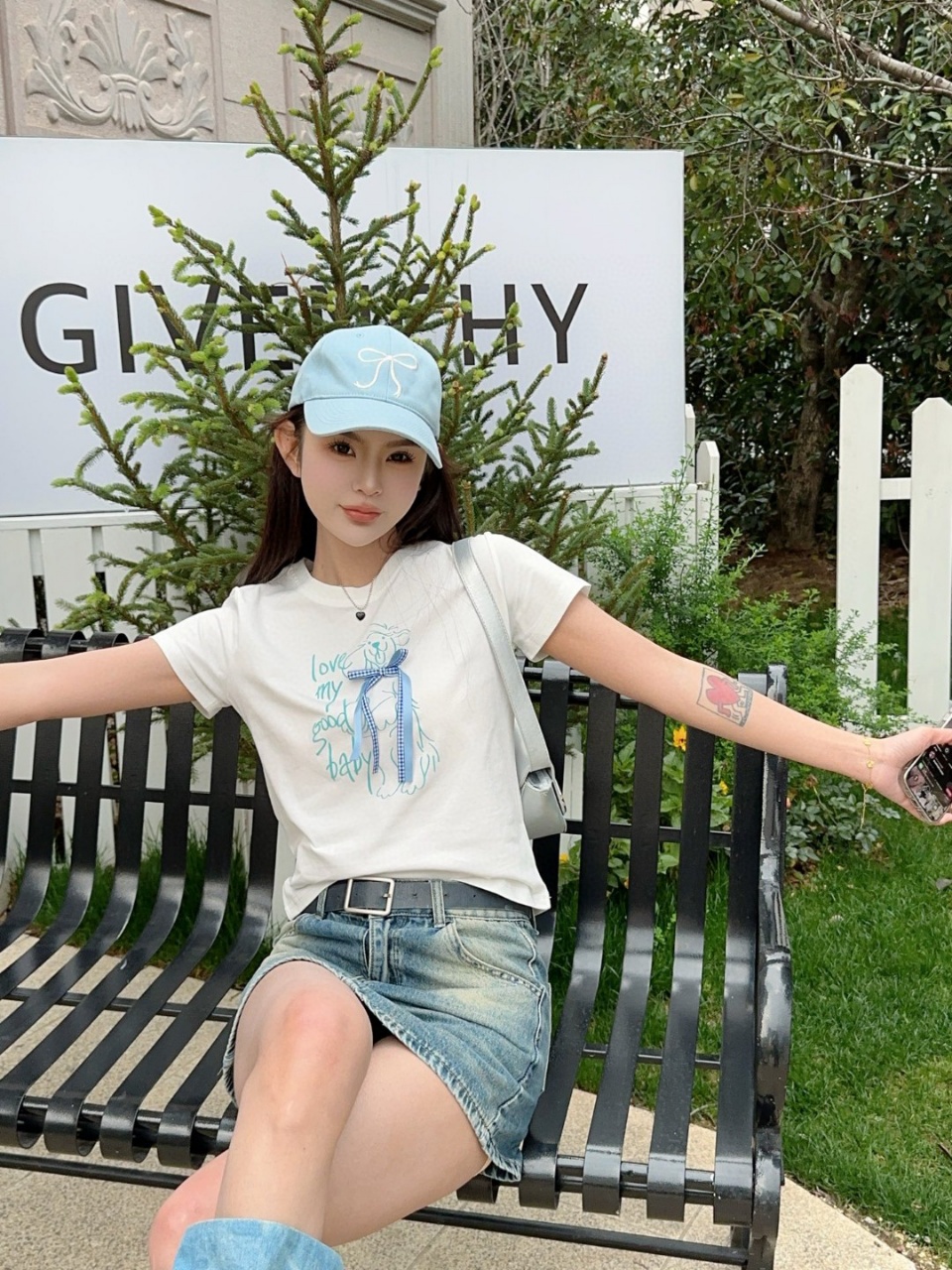 【YW】无忧购“清仓大促”韩系穿搭甜美蝴蝶结小狗百搭T恤X602(截单后3-5天发货)
