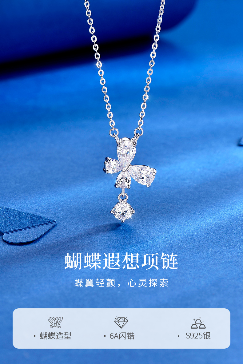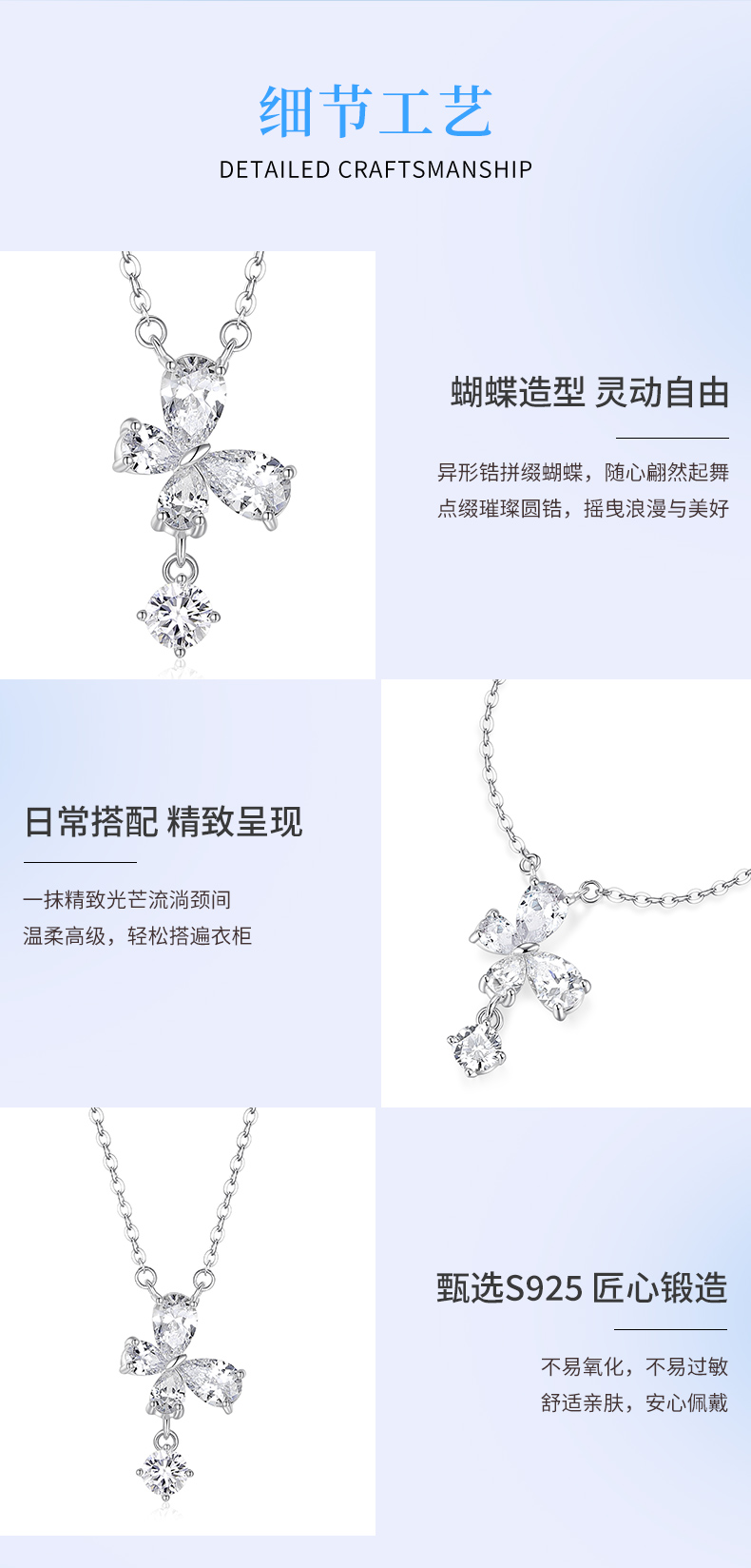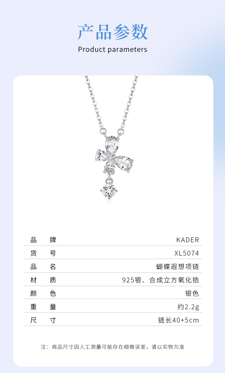 卡蒂罗/KADER 光影蝴蝶梦幻遐想项链 满钻镶嵌灵动流苏福蝶锁骨链 约会出游时尚百搭甜美小众拼接链百搭幸运