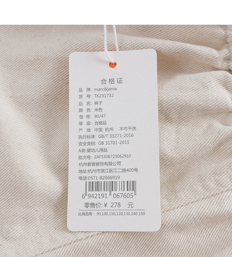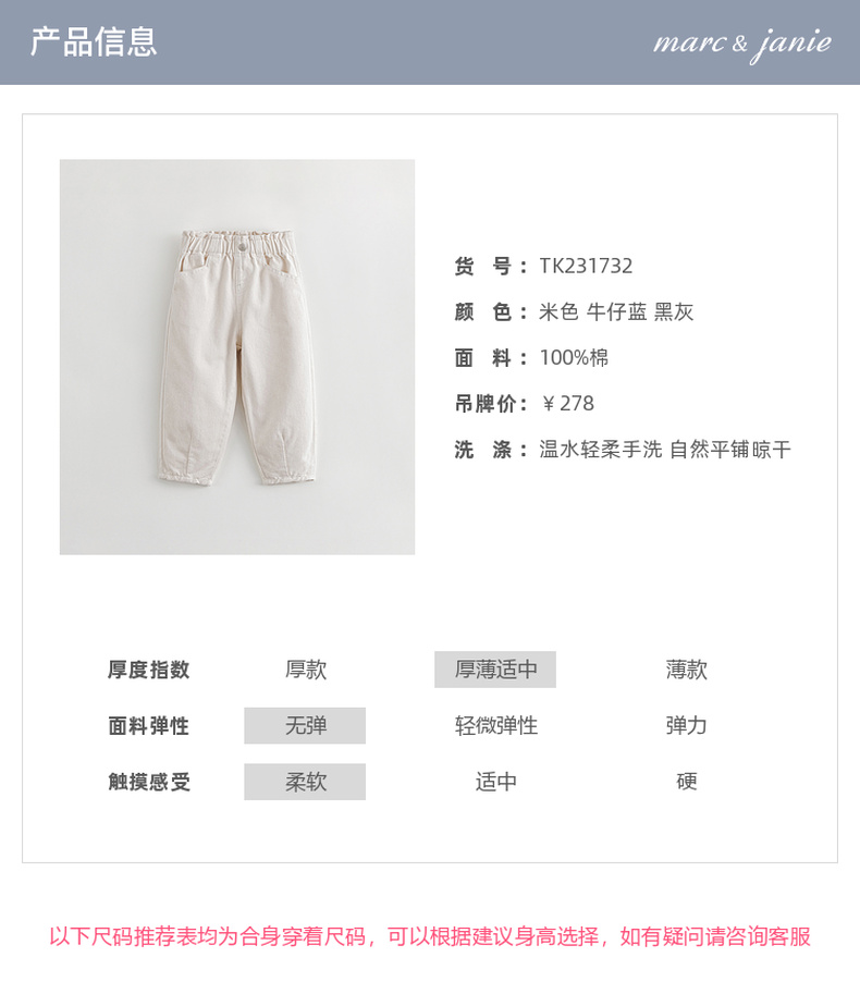 马克珍妮秋装女童花边腰纯棉牛仔裤231732