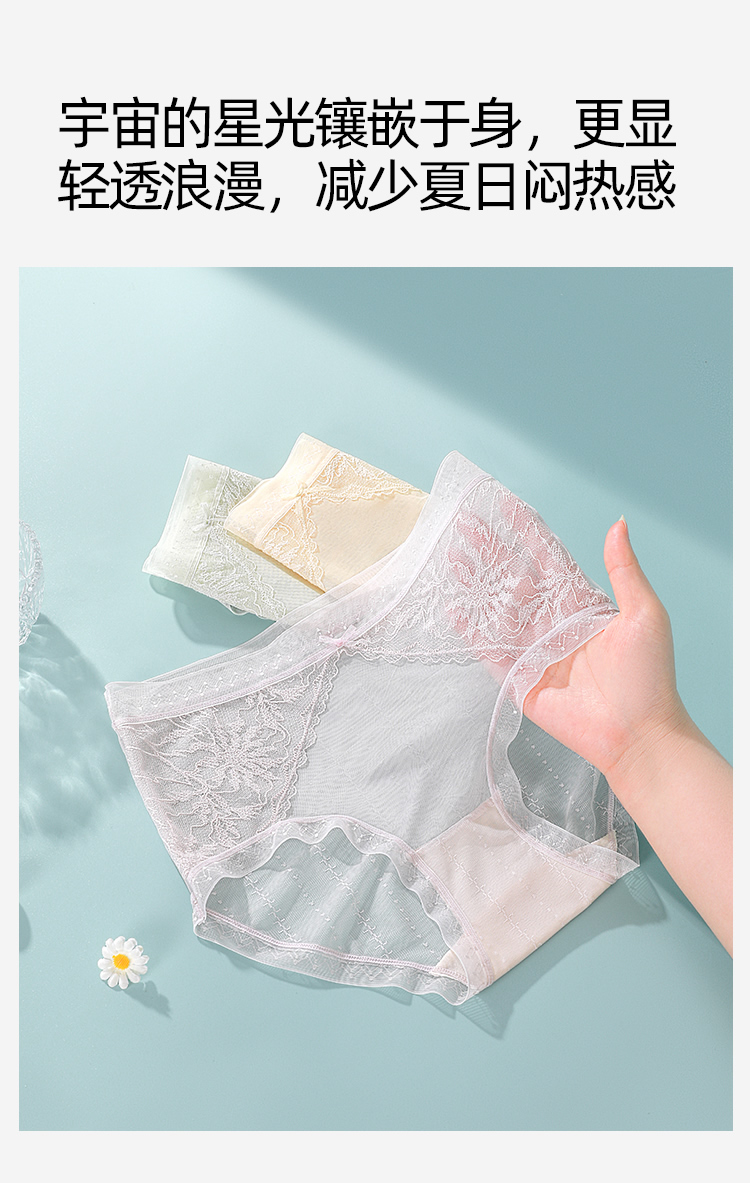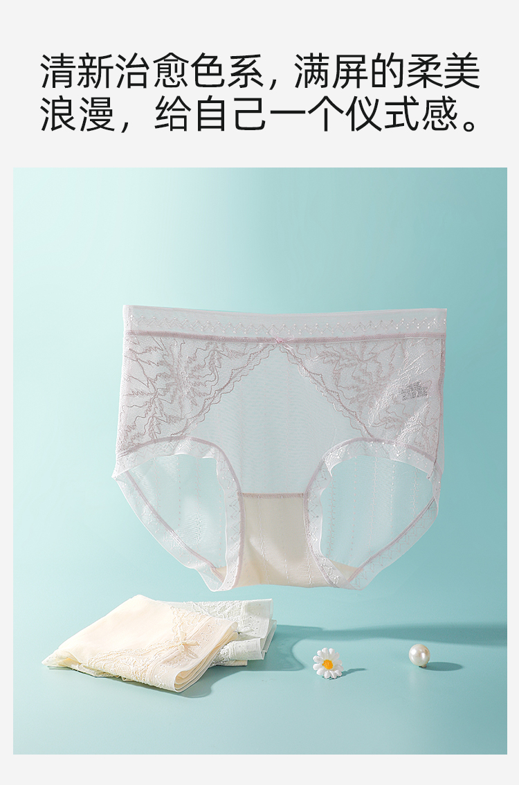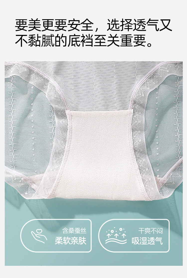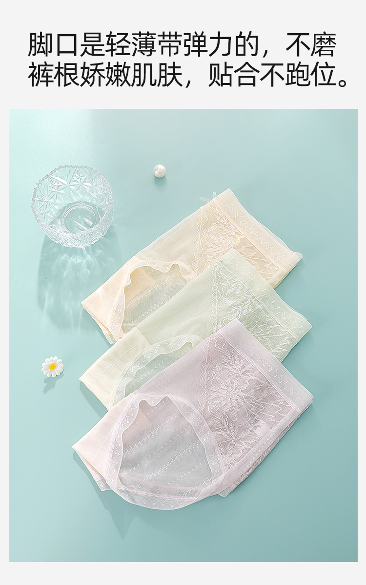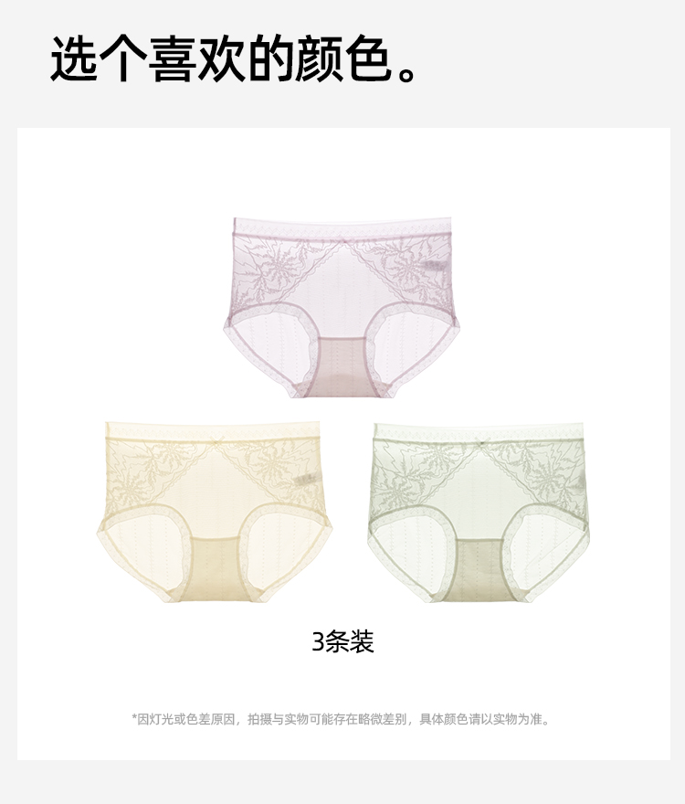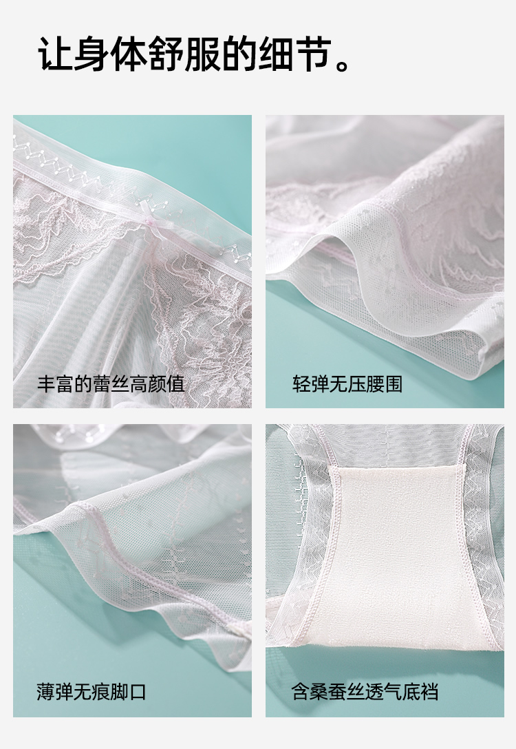 【3条装】熳洁儿 轻奢性感蕾丝内裤透气舒适中低腰含桑蚕丝底档25262112
