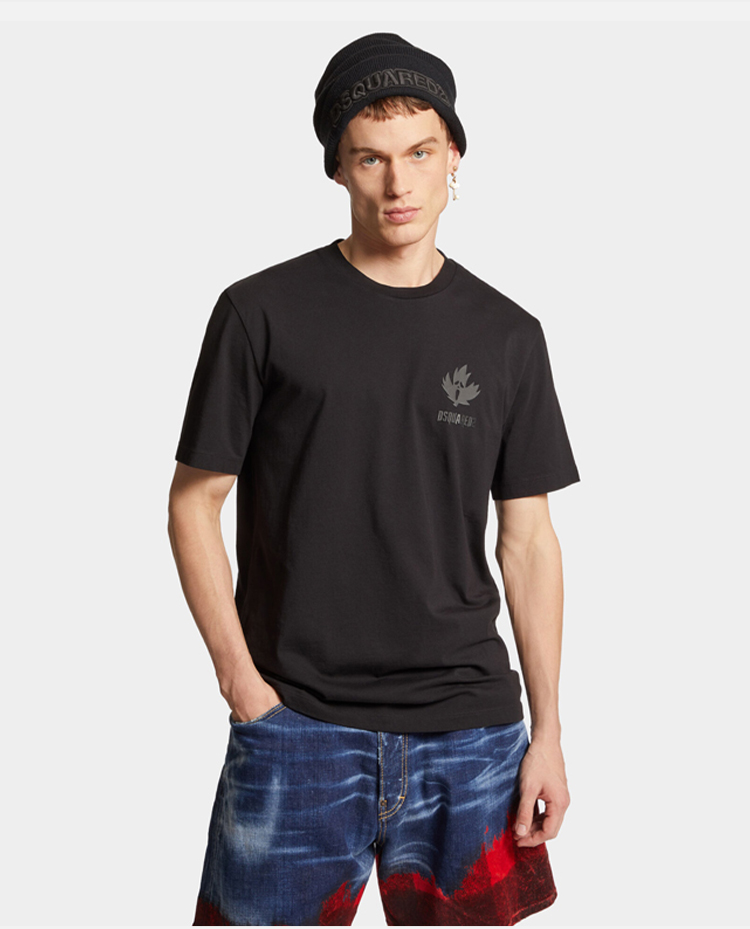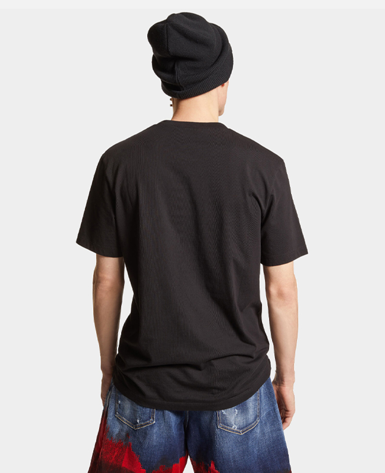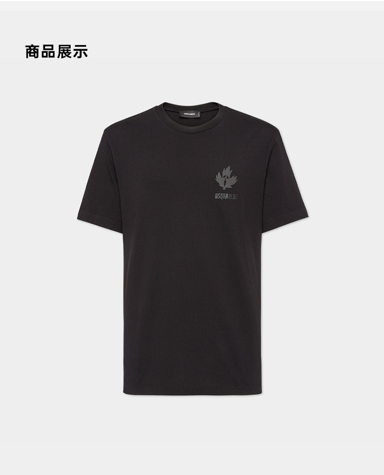 DSQUARED2 男士枫叶徽标印花棉质平纹针织圆领短袖T恤 黑色 S74GD1302 D20020 900