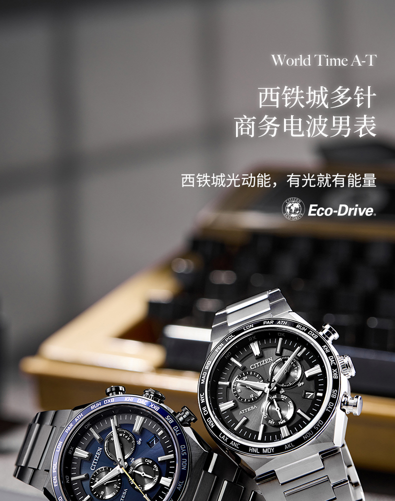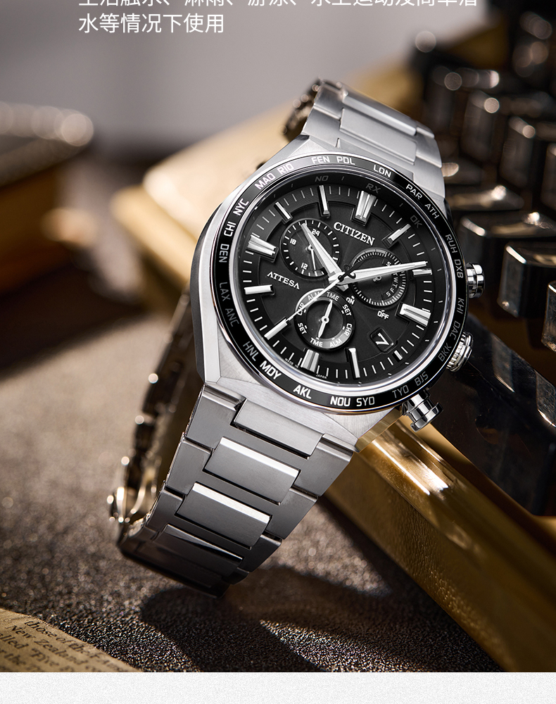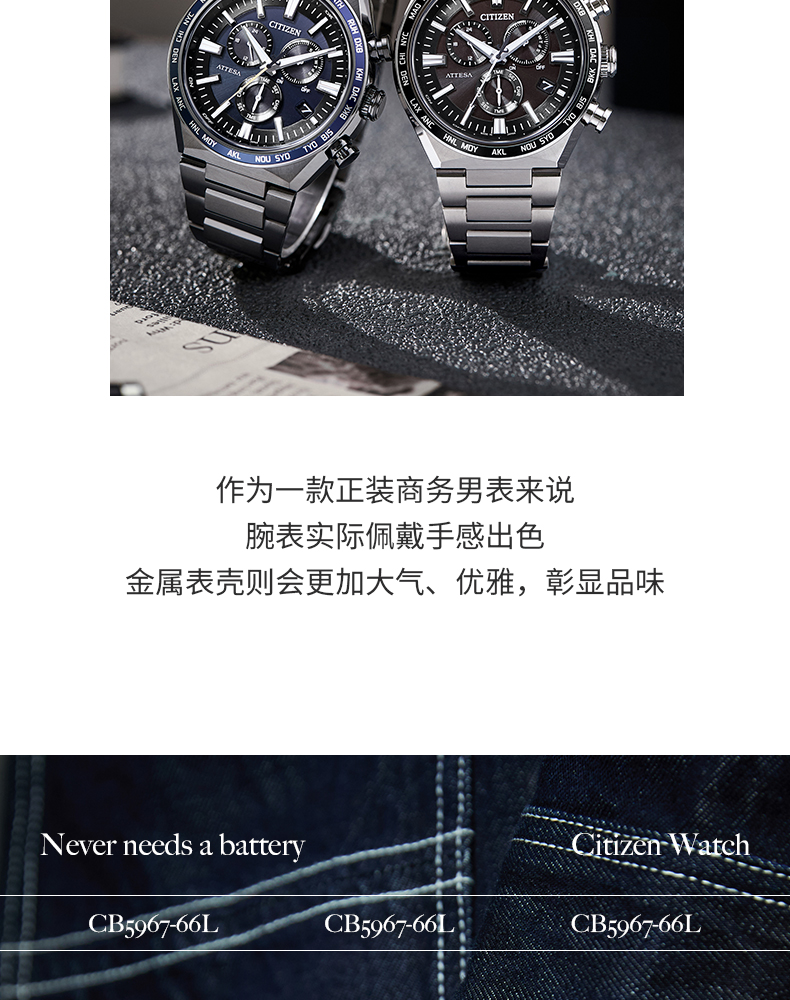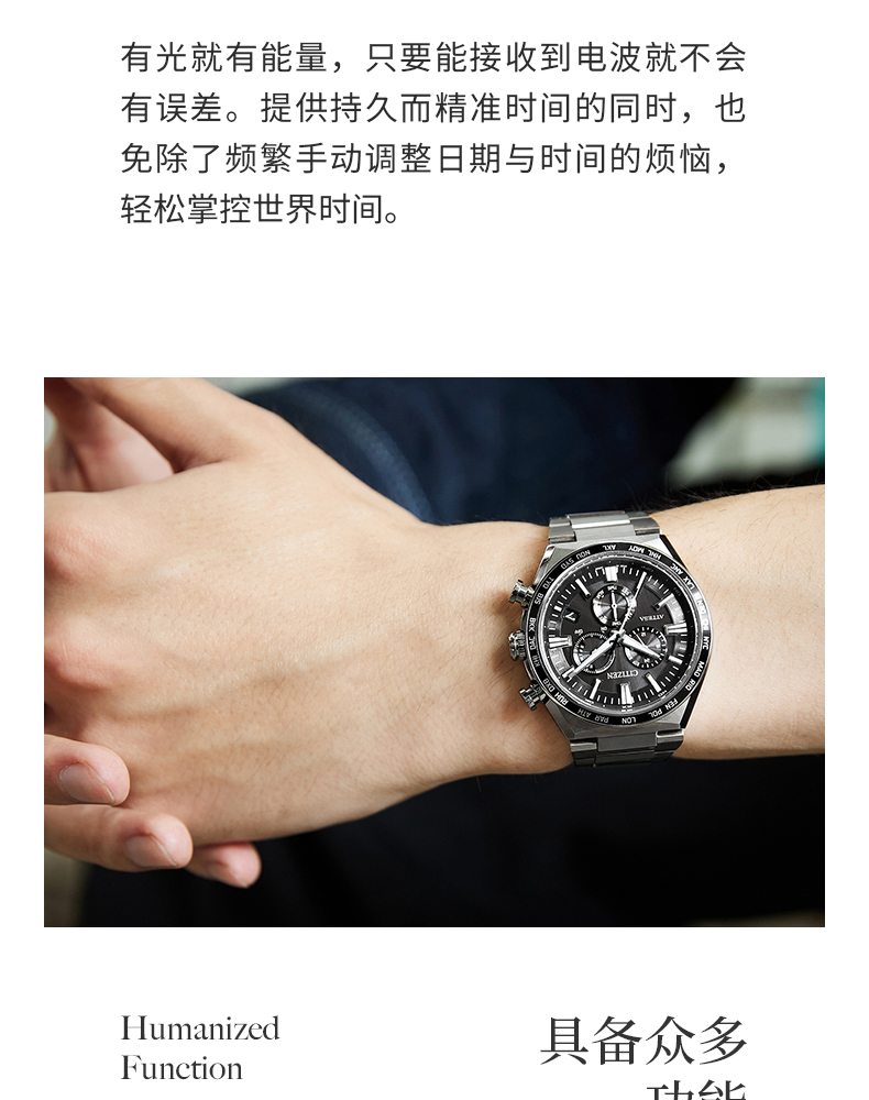 西铁城/CITIZEN/ATTESA系列舒博钛多针商务休闲电波男士手表CB5966-69E