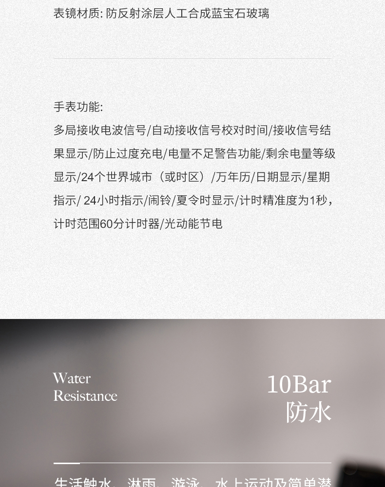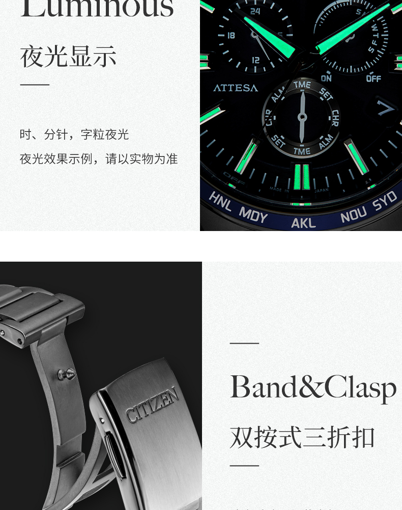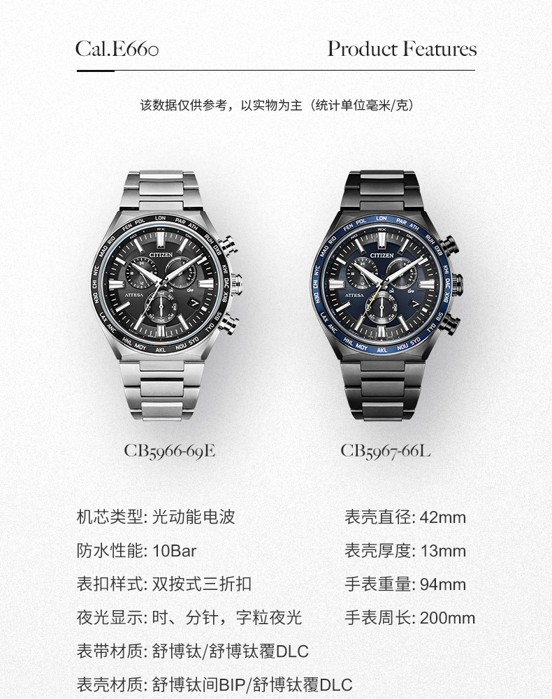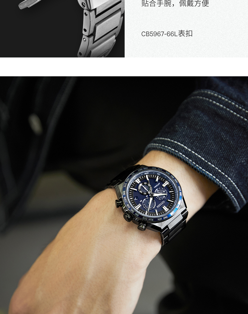 西铁城/CITIZEN/ATTESA系列舒博钛多针商务休闲电波男士手表CB5966-69E