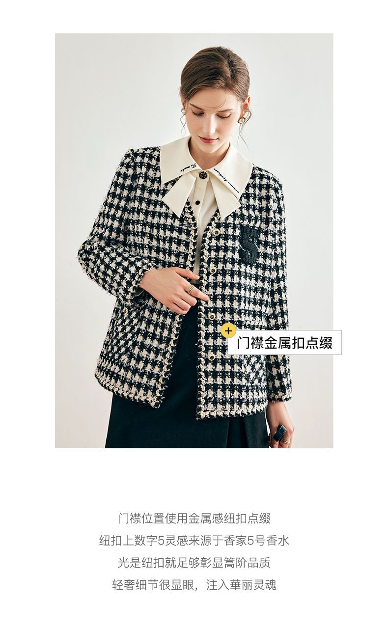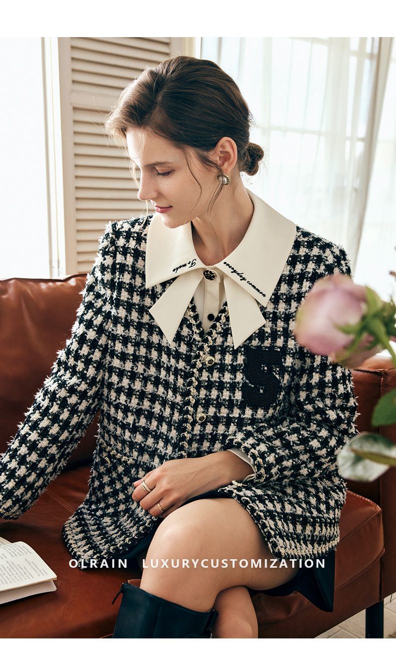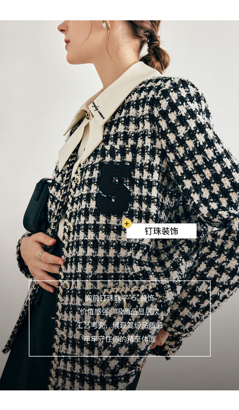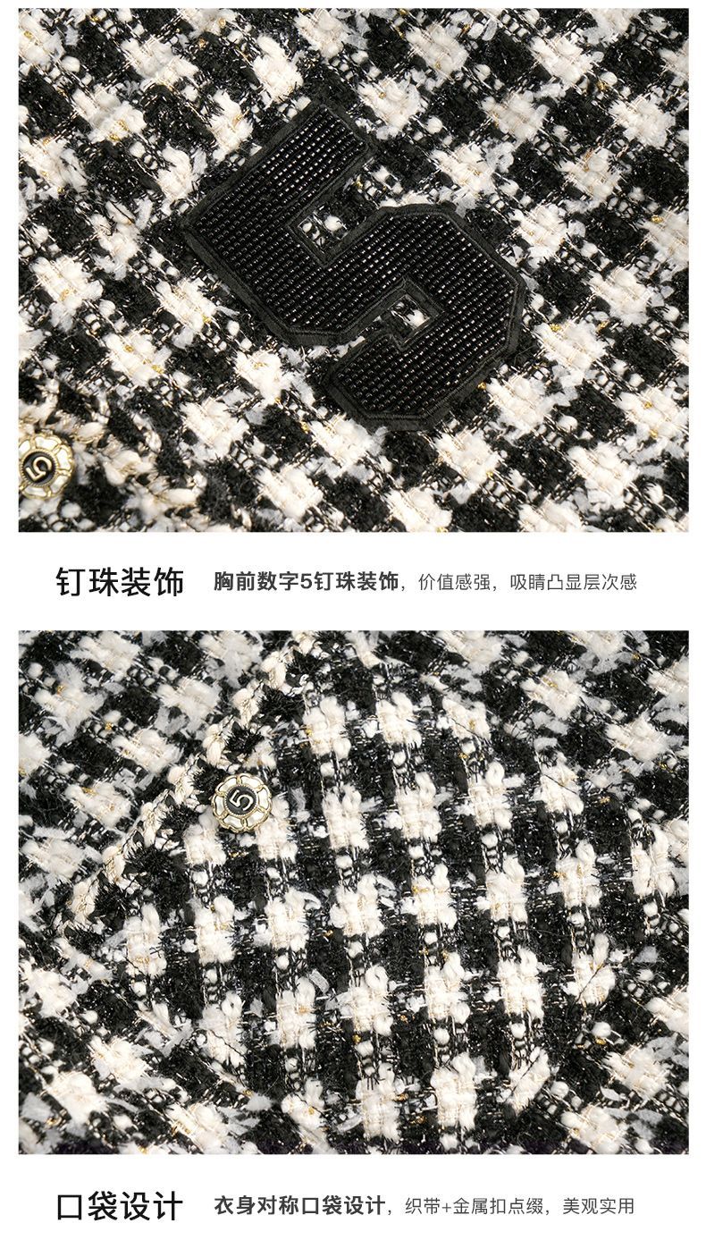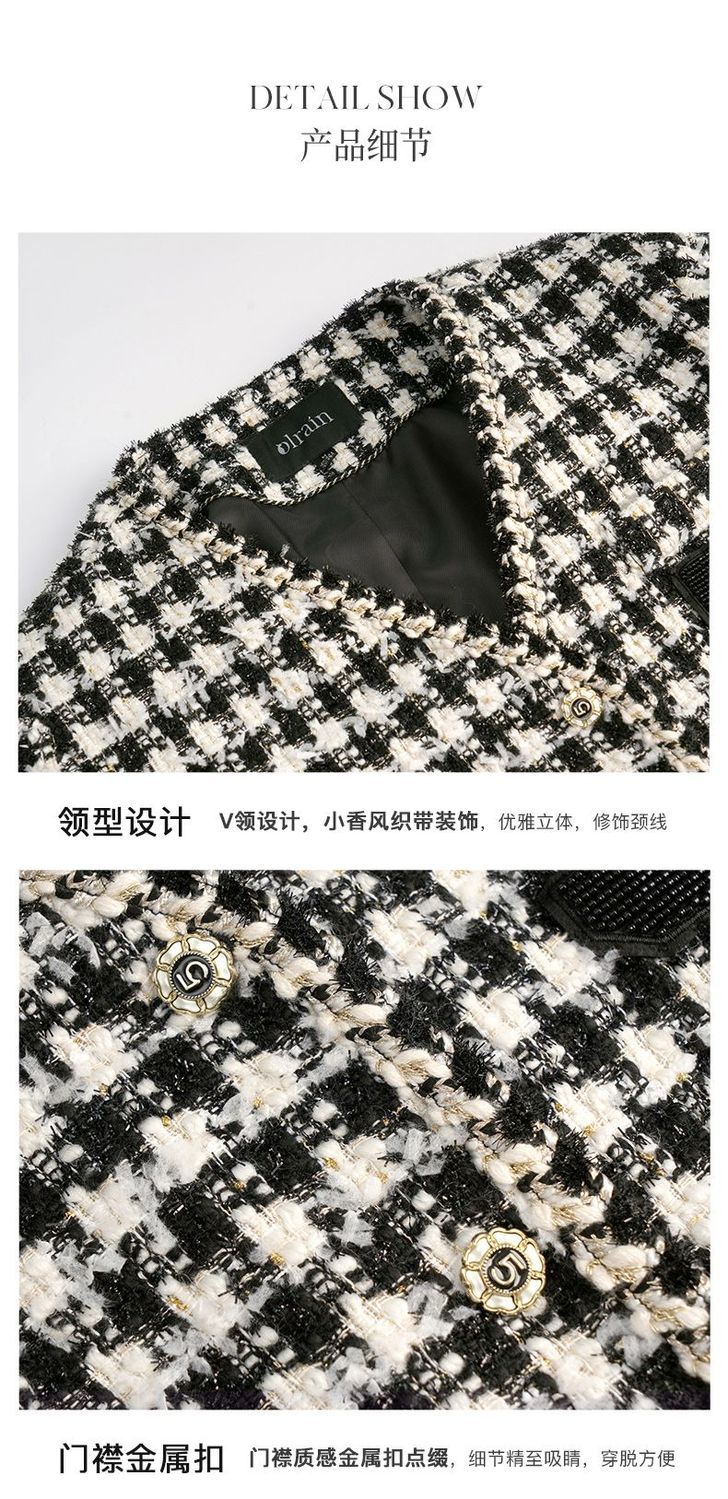 OLrain欧芮儿法式千鸟格短外套女深秋2022年新款小香风粗花呢上衣