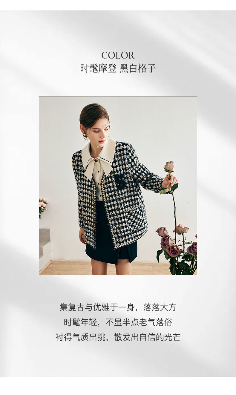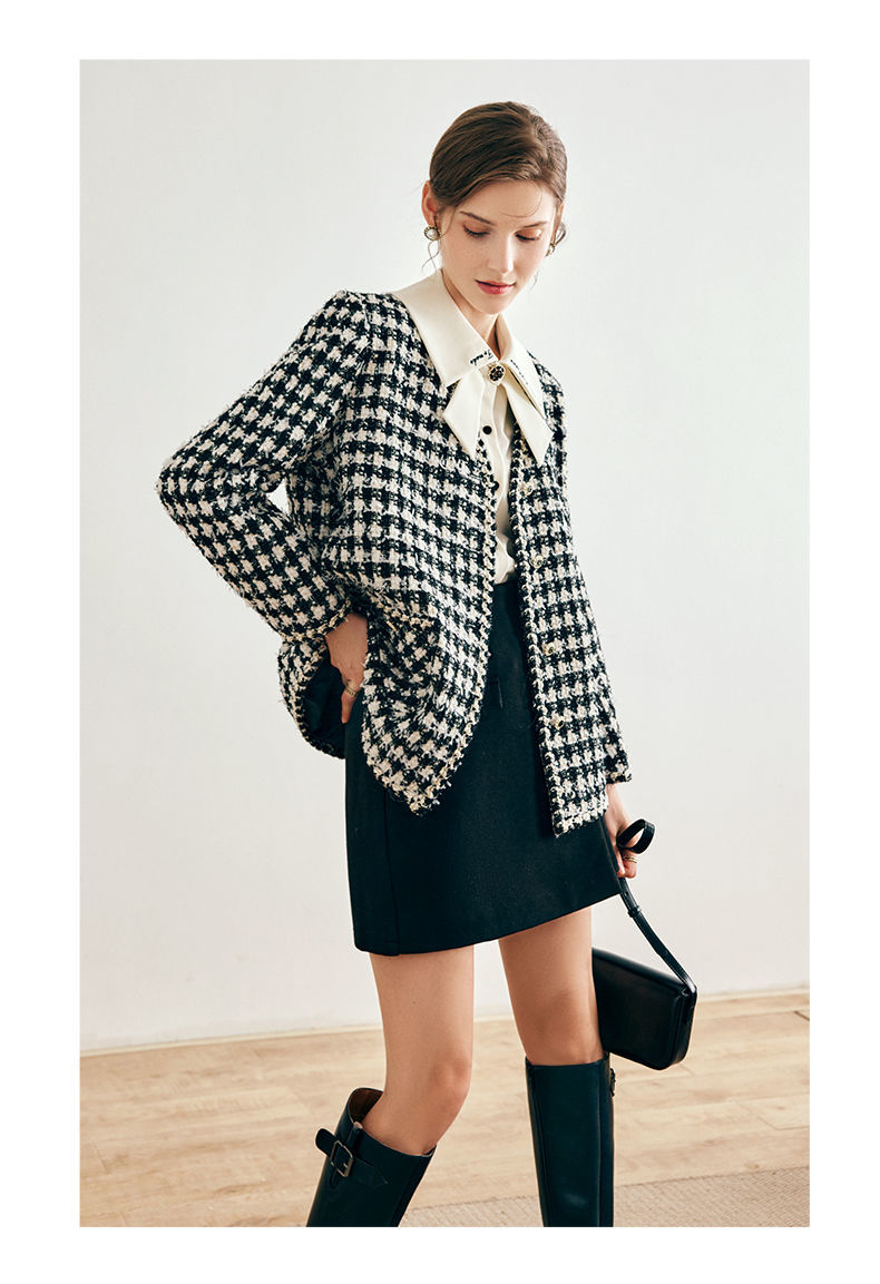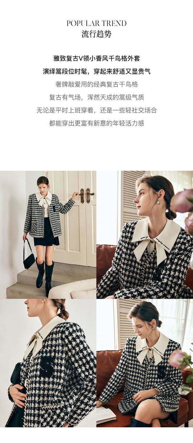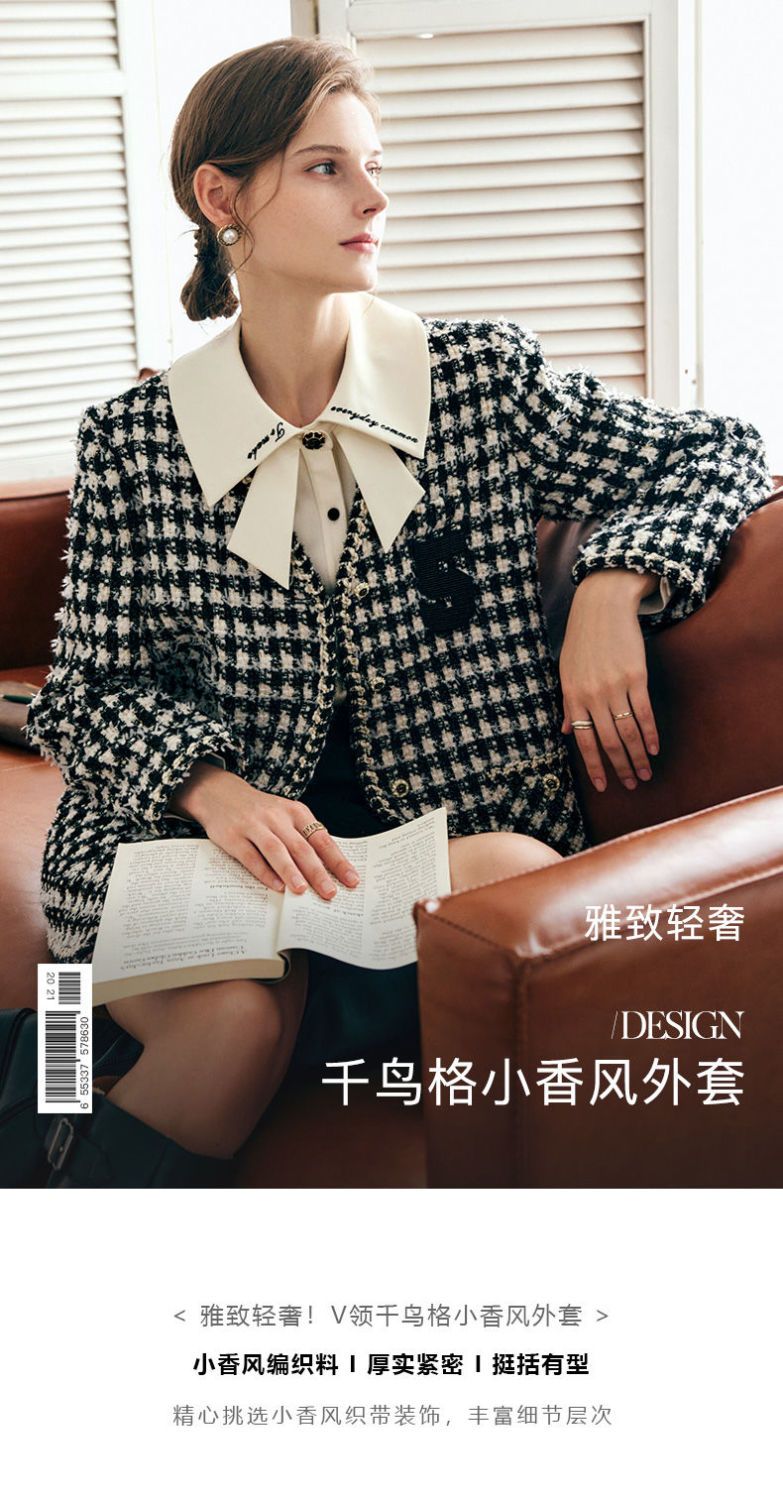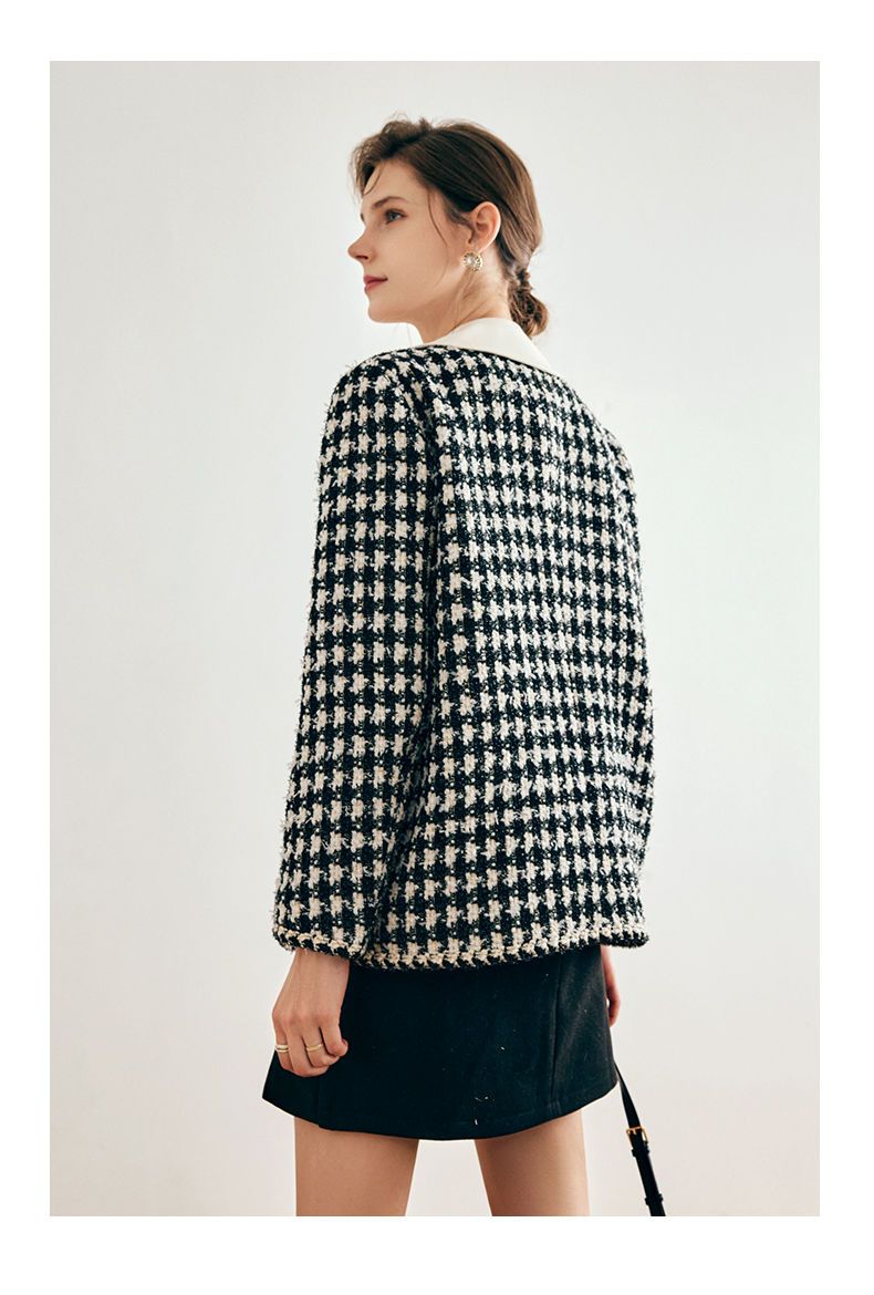 OLrain欧芮儿法式千鸟格短外套女深秋2022年新款小香风粗花呢上衣