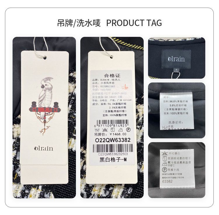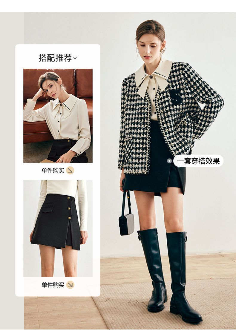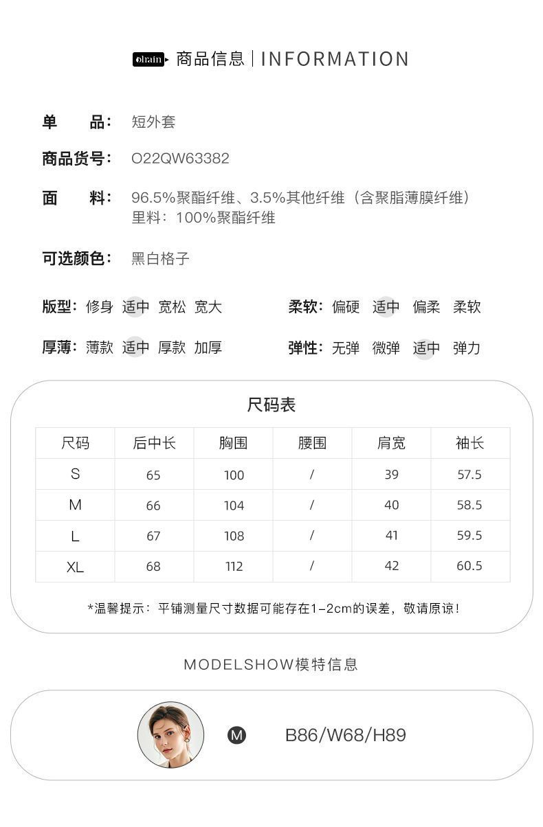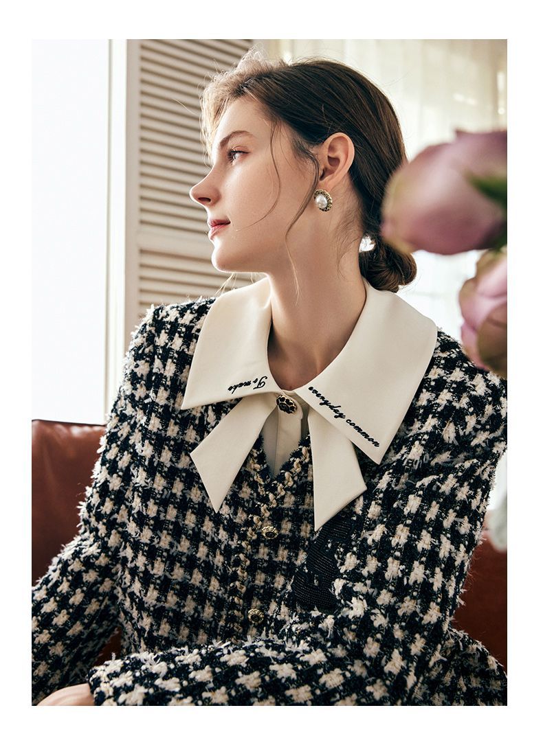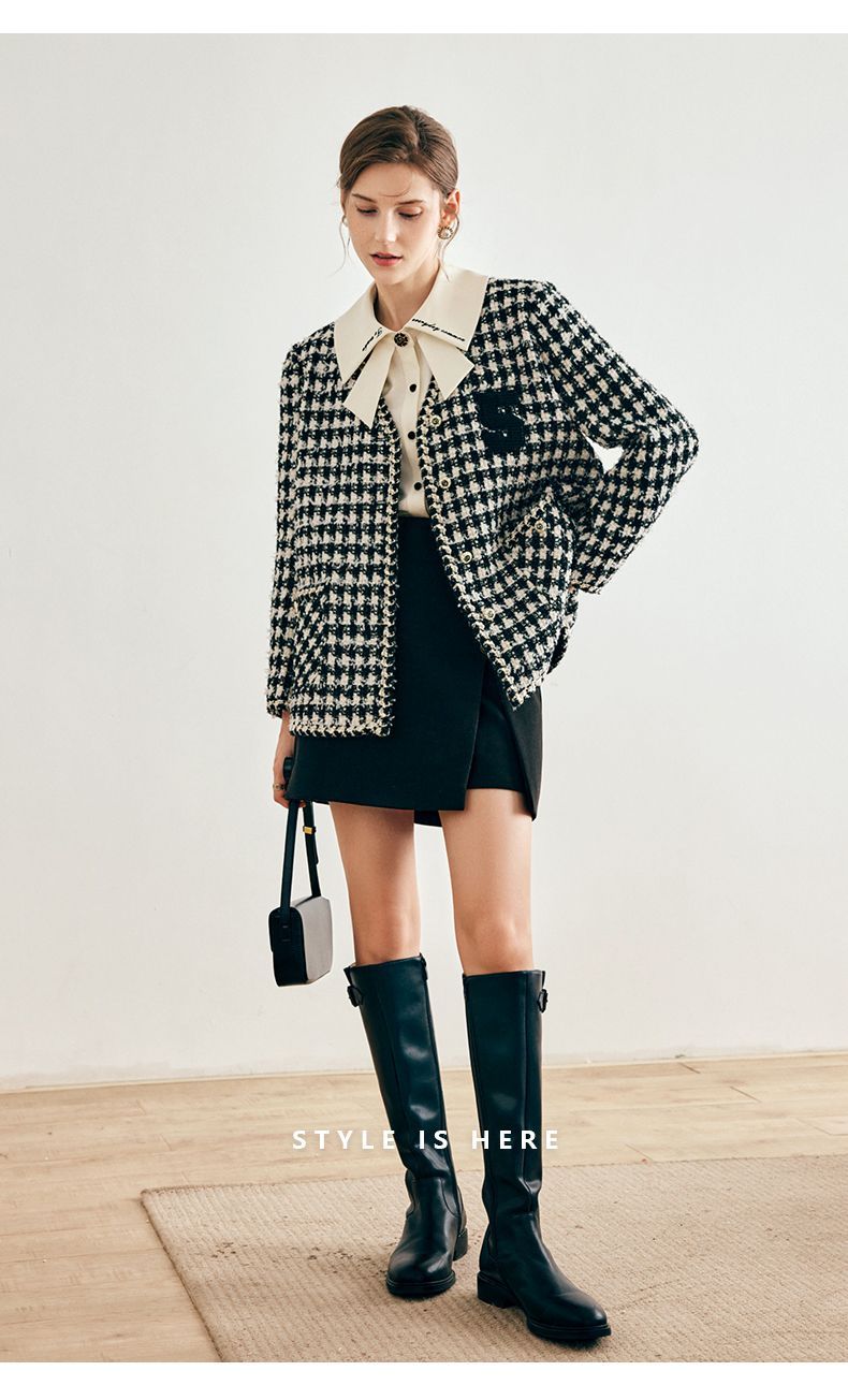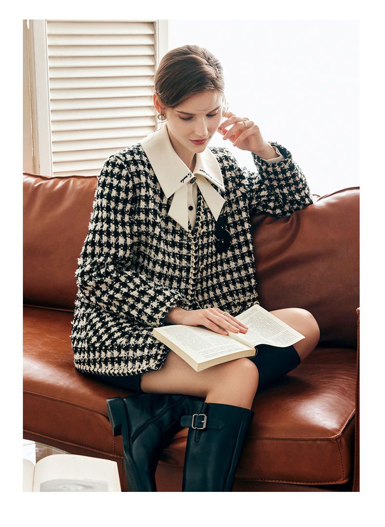 OLrain欧芮儿法式千鸟格短外套女深秋2022年新款小香风粗花呢上衣