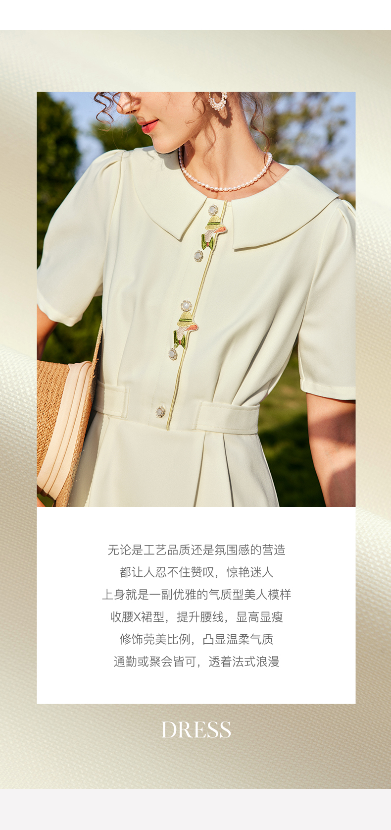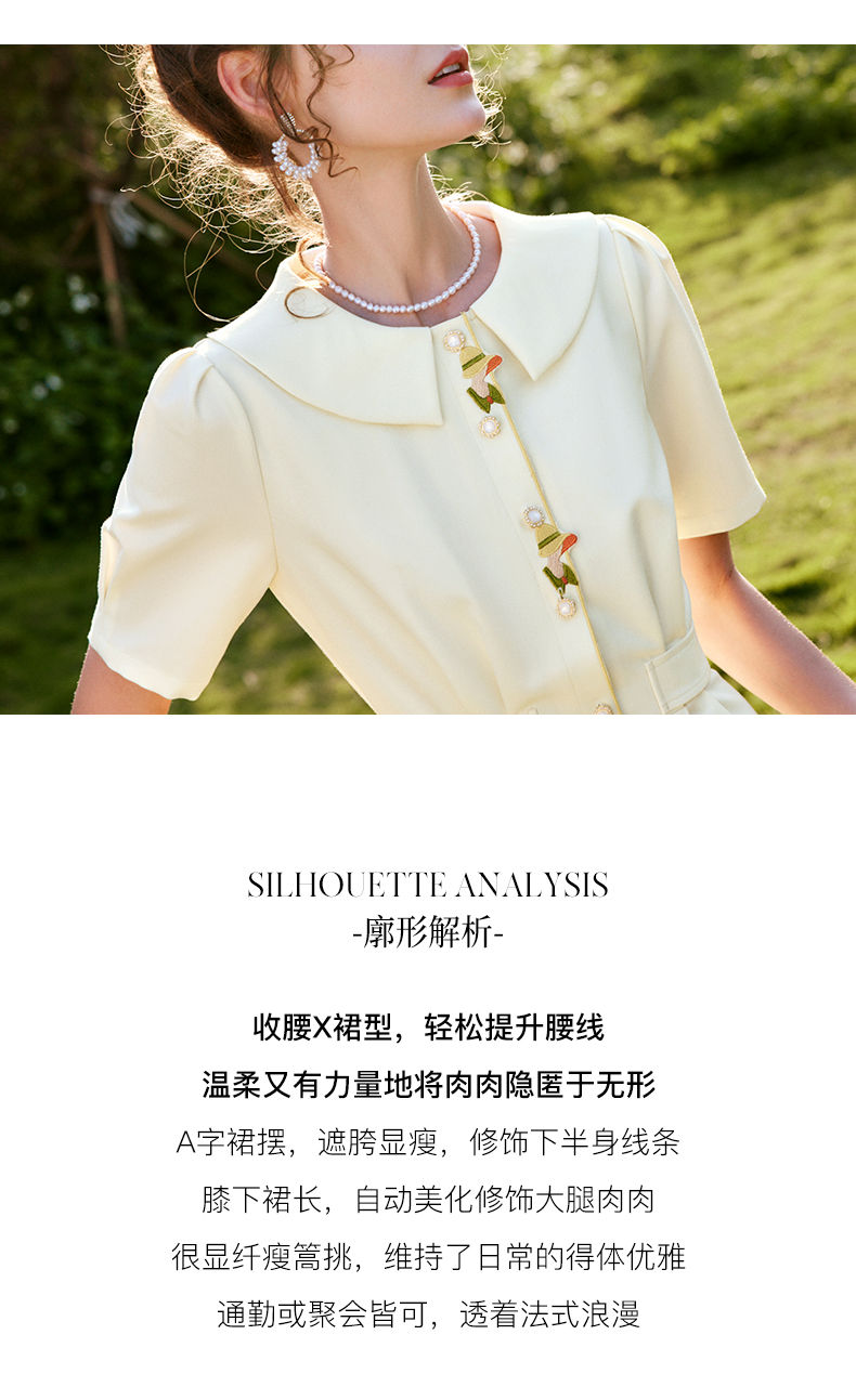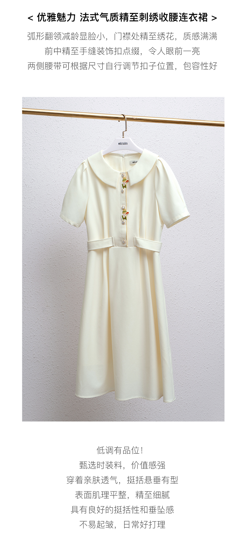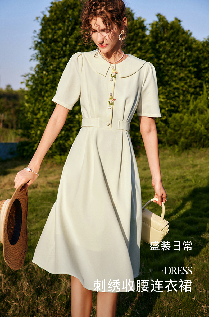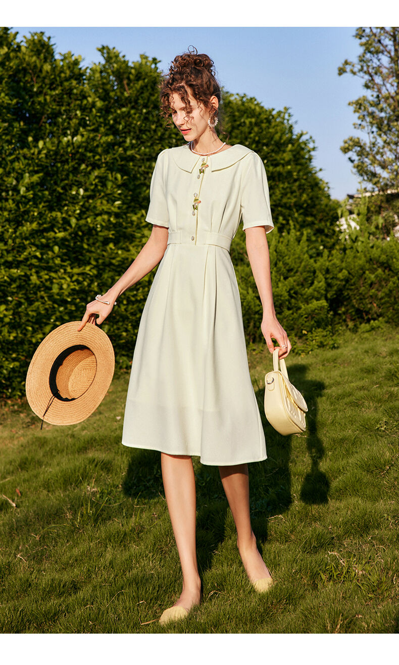 OLrain法式高级穿搭娃娃领连衣裙女夏季2022新款收腰泡泡袖气质裙