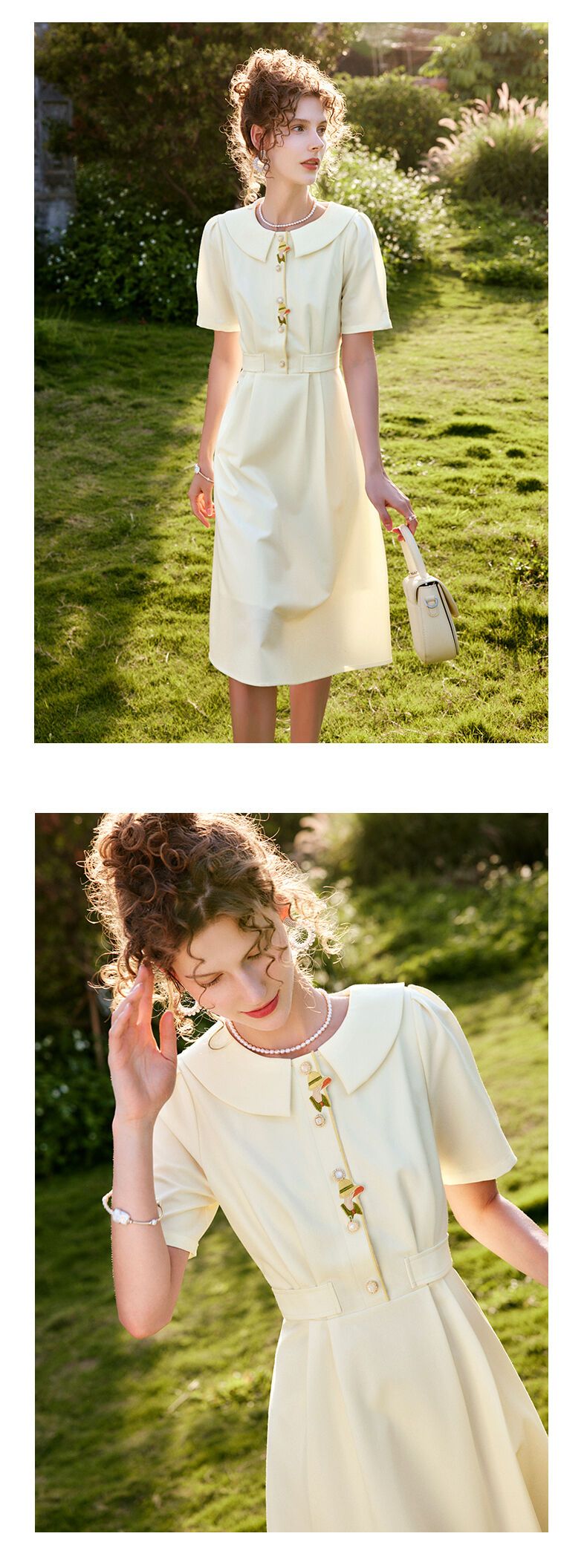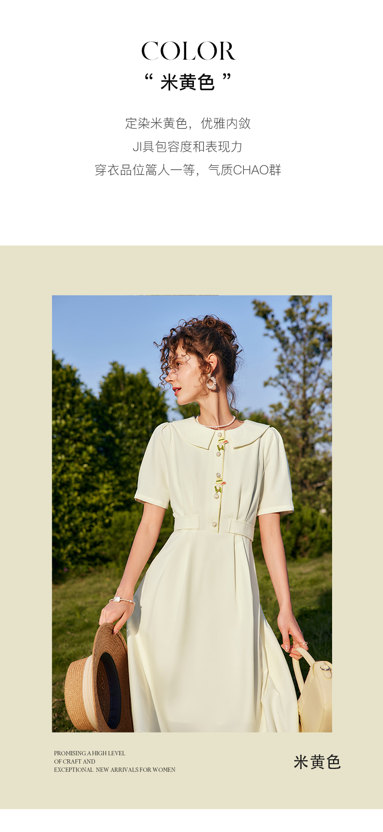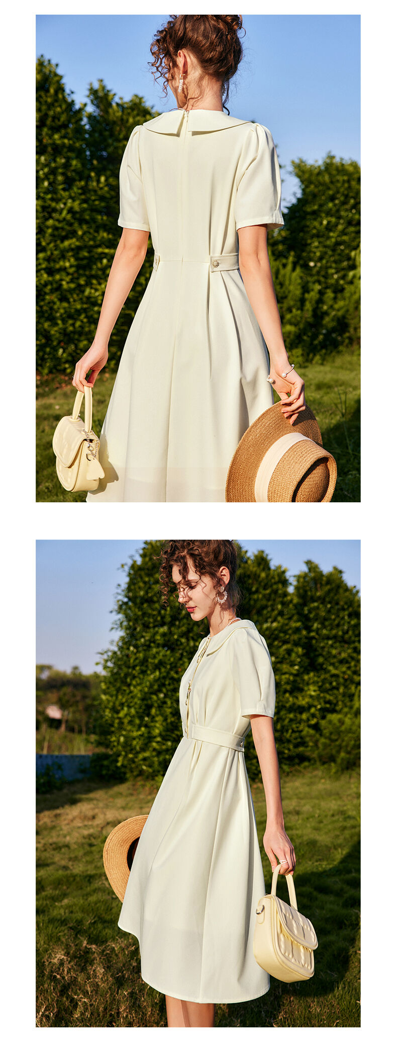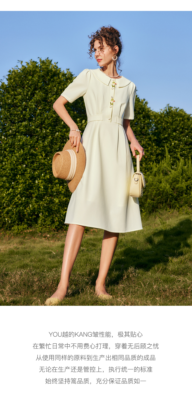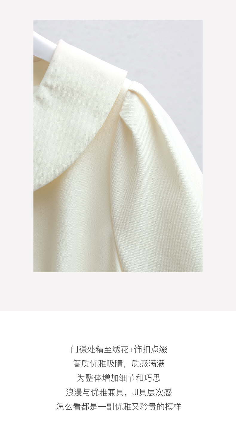 OLrain法式高级穿搭娃娃领连衣裙女夏季2022新款收腰泡泡袖气质裙