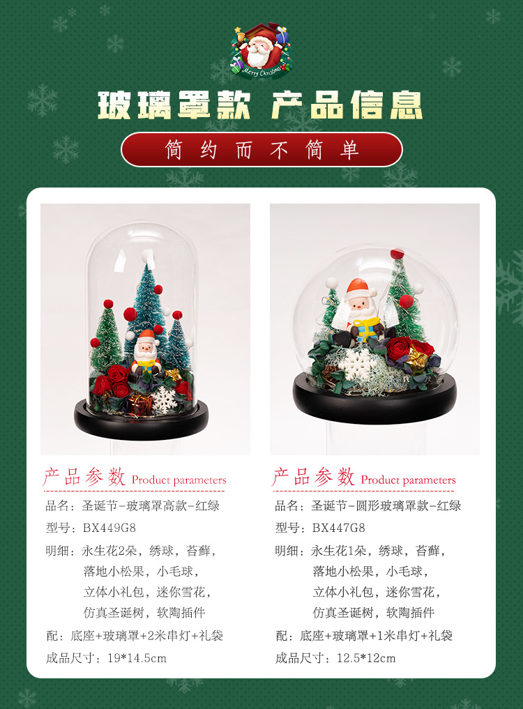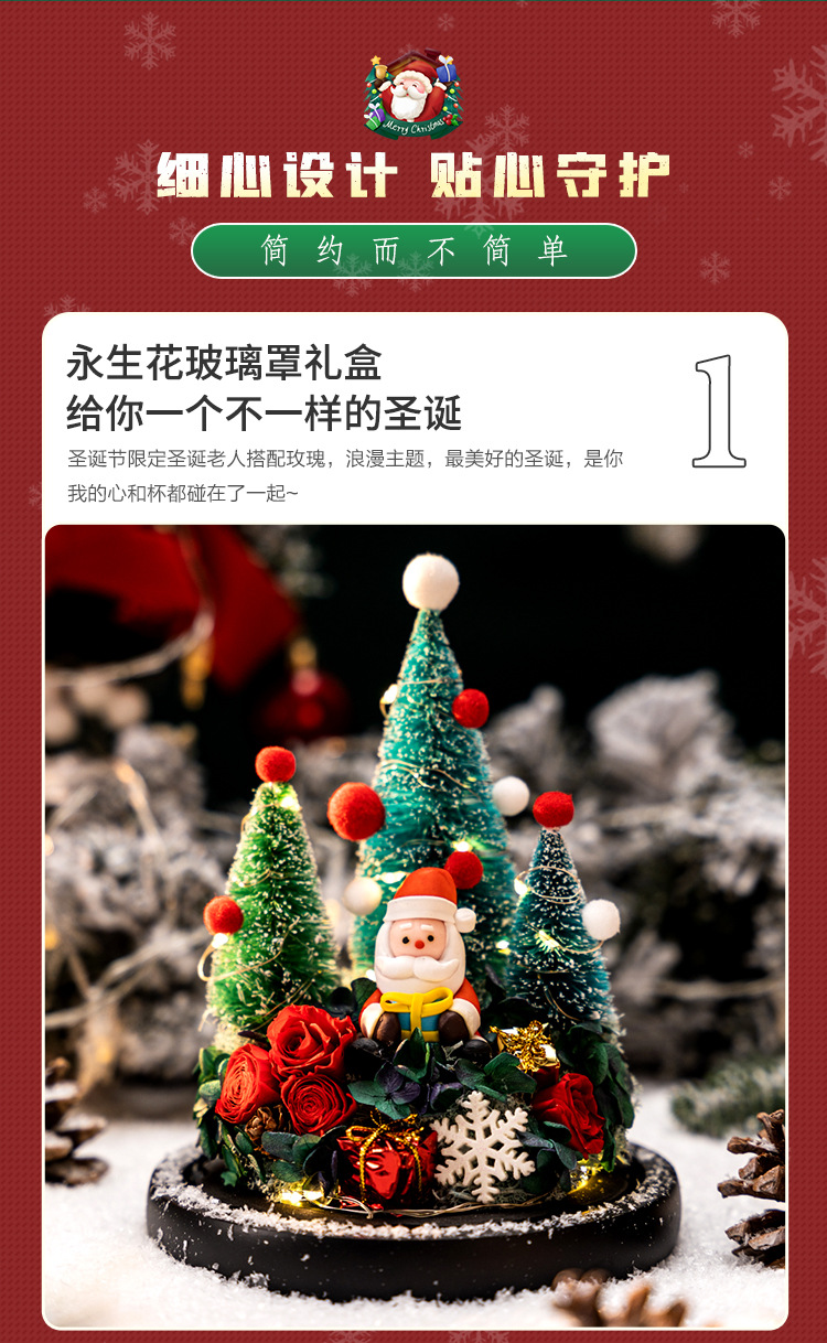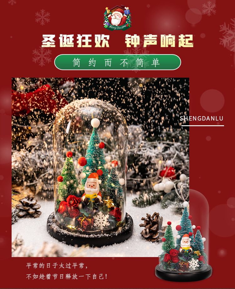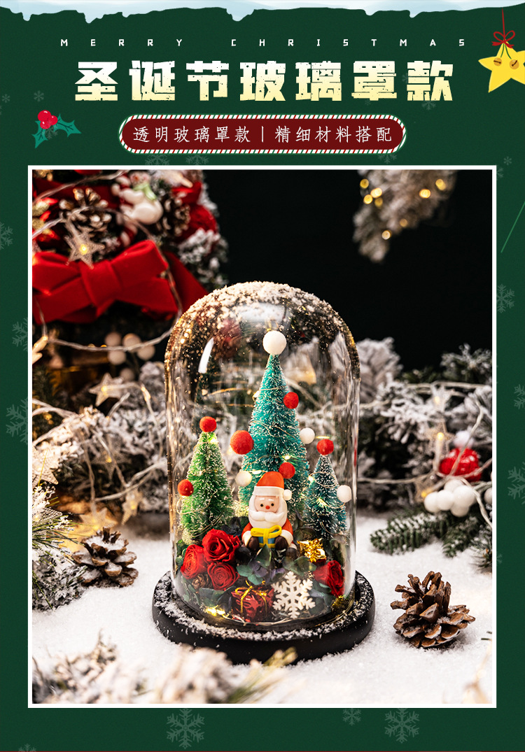 圣诞专场`~圣诞树、小鹿、永生花玻璃罩礼盒