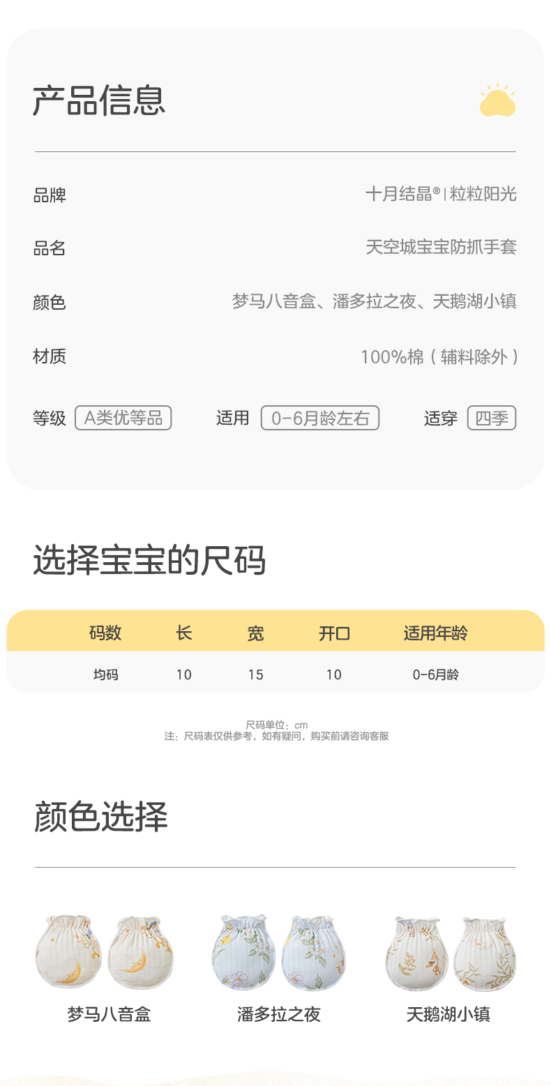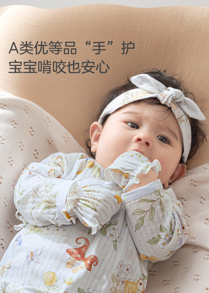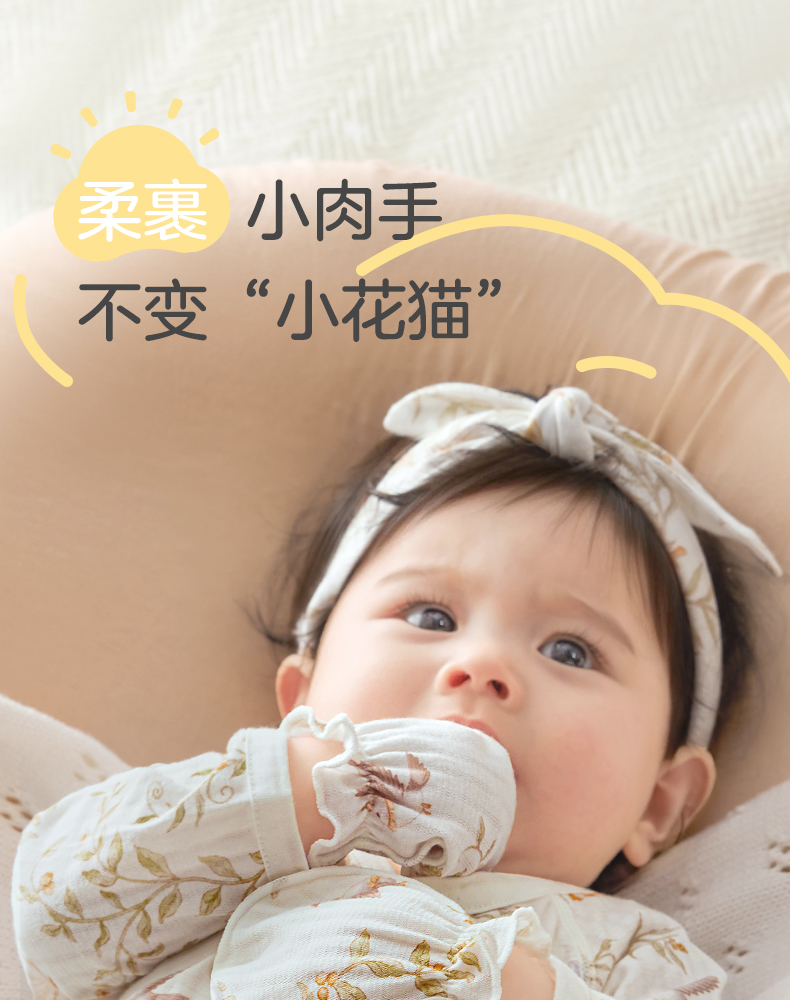 粒粒阳光婴儿手套防抓脸春夏可啃咬0-6个月新生儿护手套