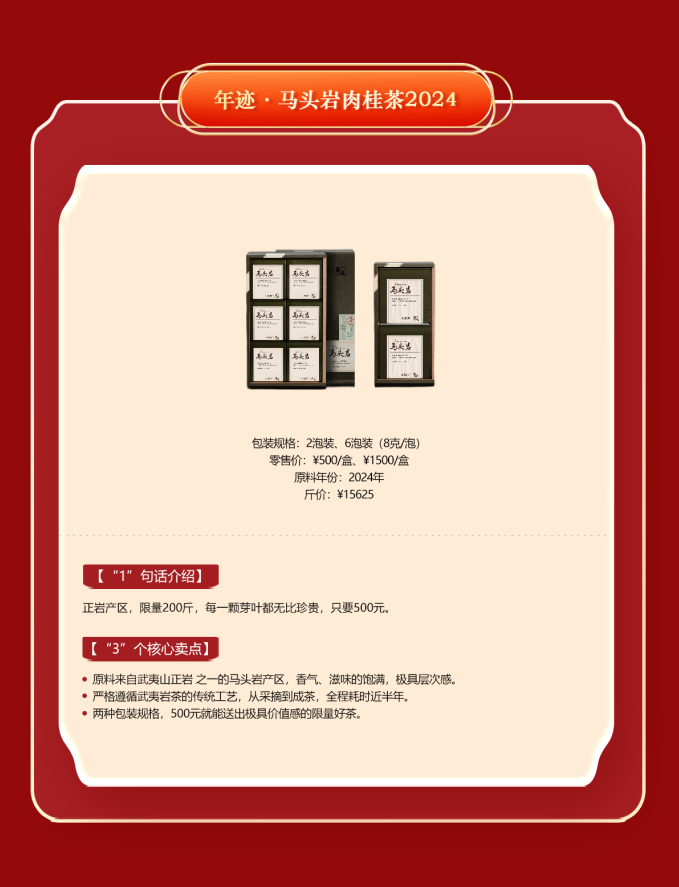 小罐茶旗下•年迹马头岩肉桂茶2024年份六泡装:每泡8g一共48g茶叶
