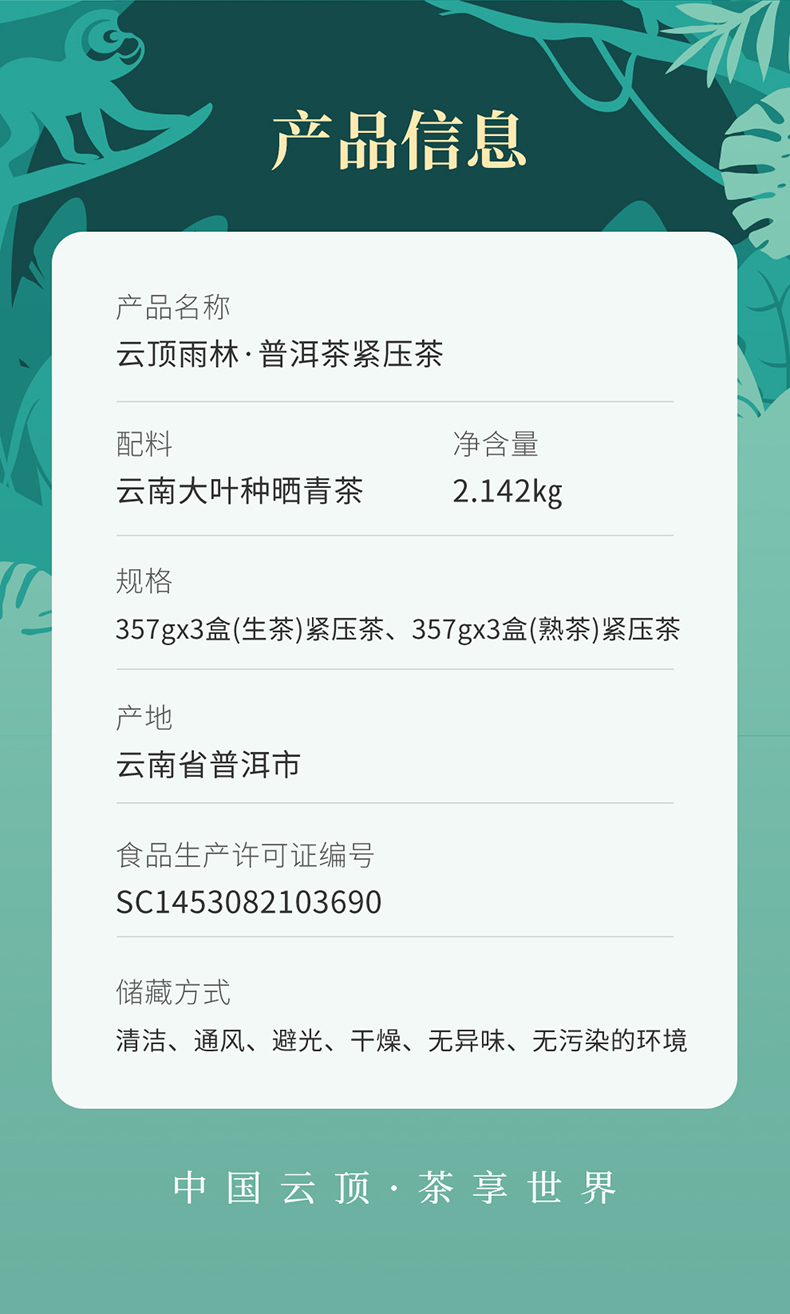 云顶雨林普洱3生茶3熟茶(2.142kg)
